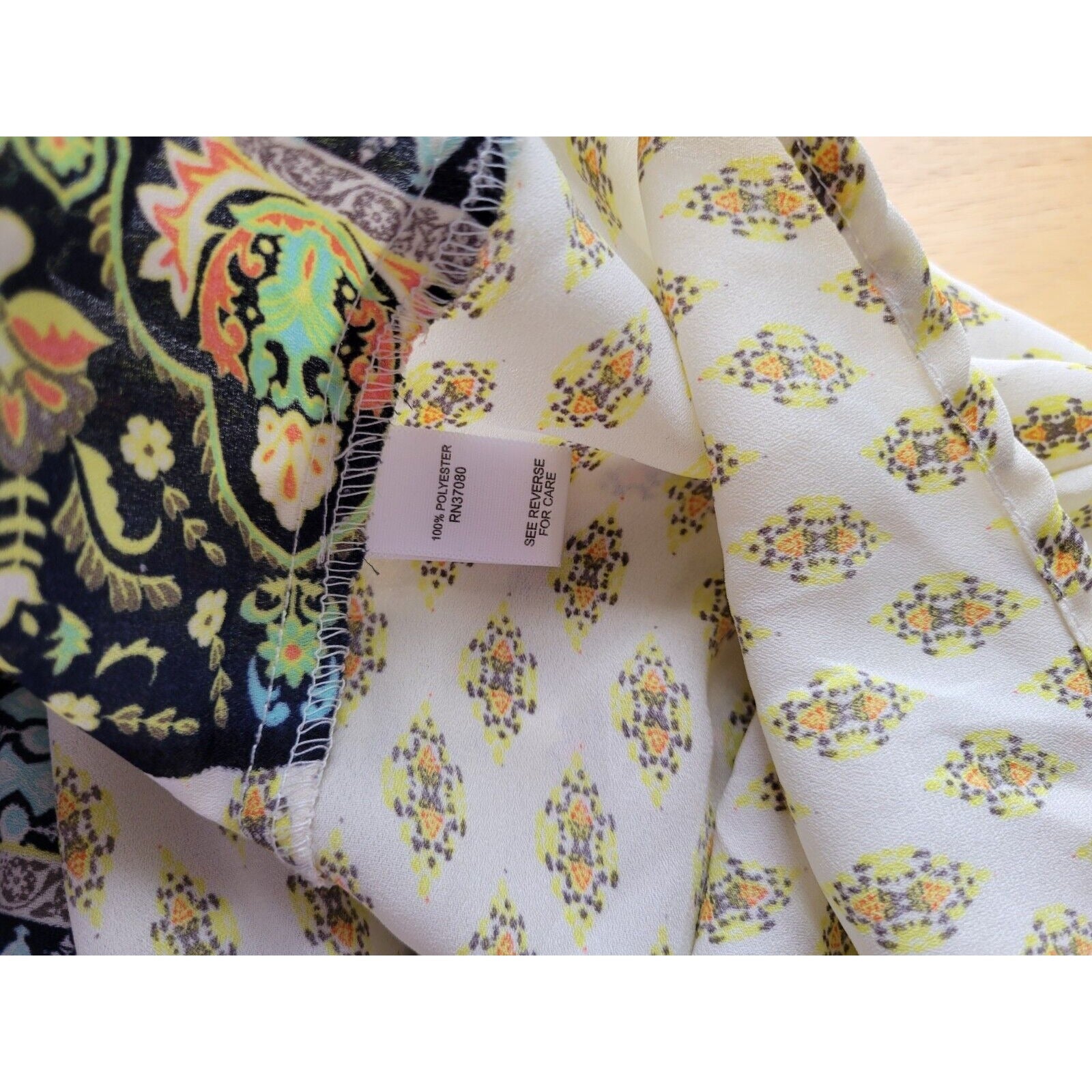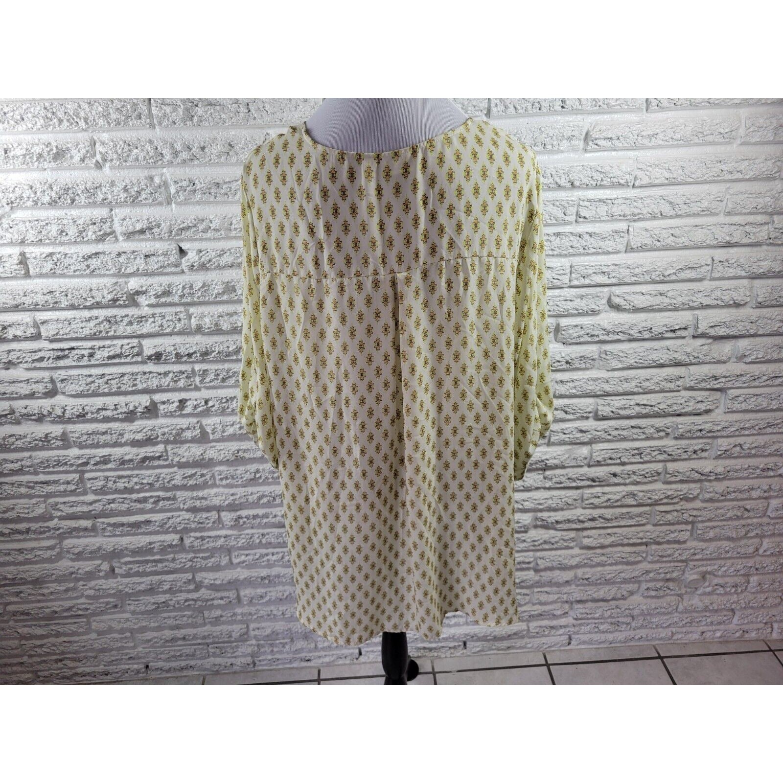 Cato Womens Top 18W 20W Plus Tunic Roll Tab Sleeve Yellow Button Mandala Sheer