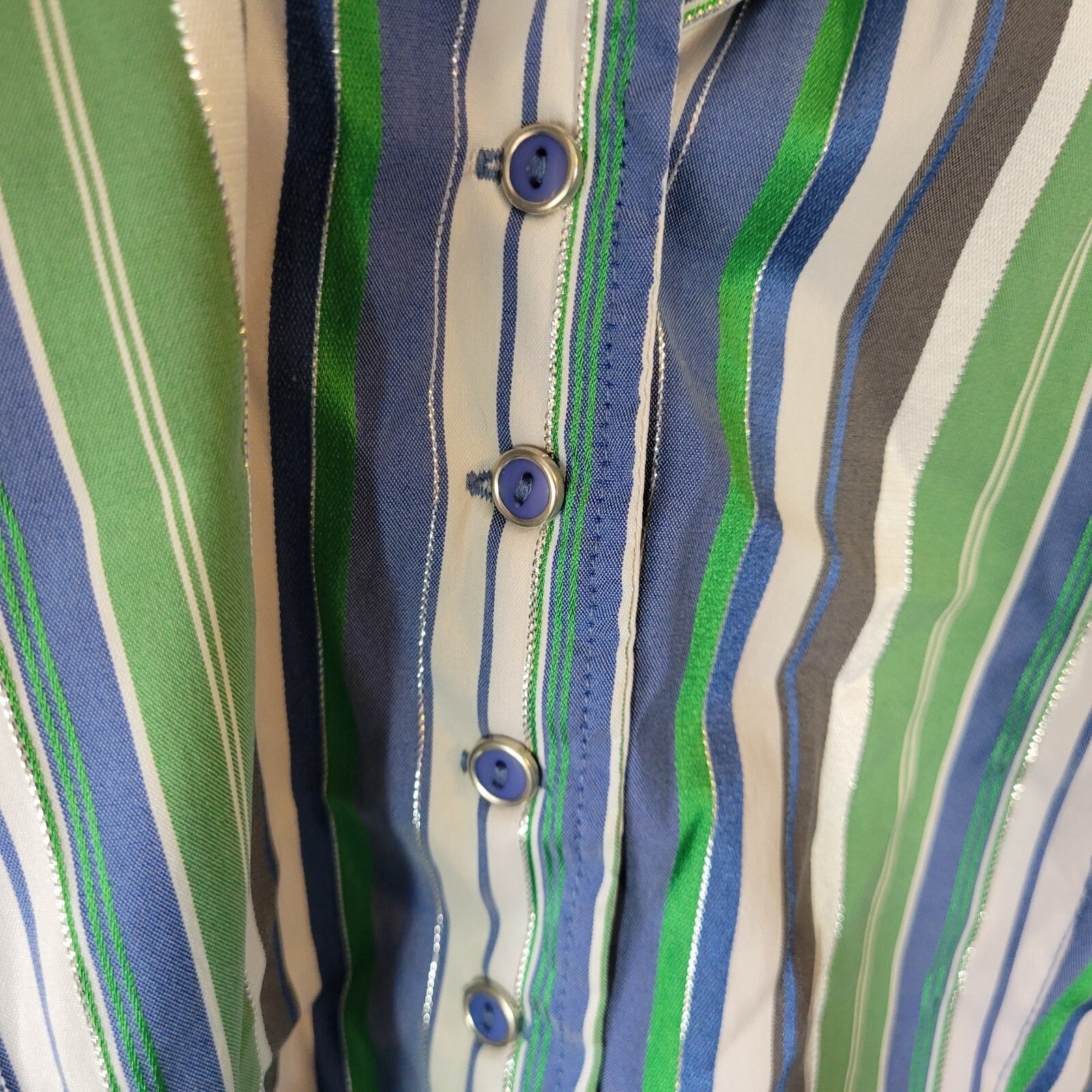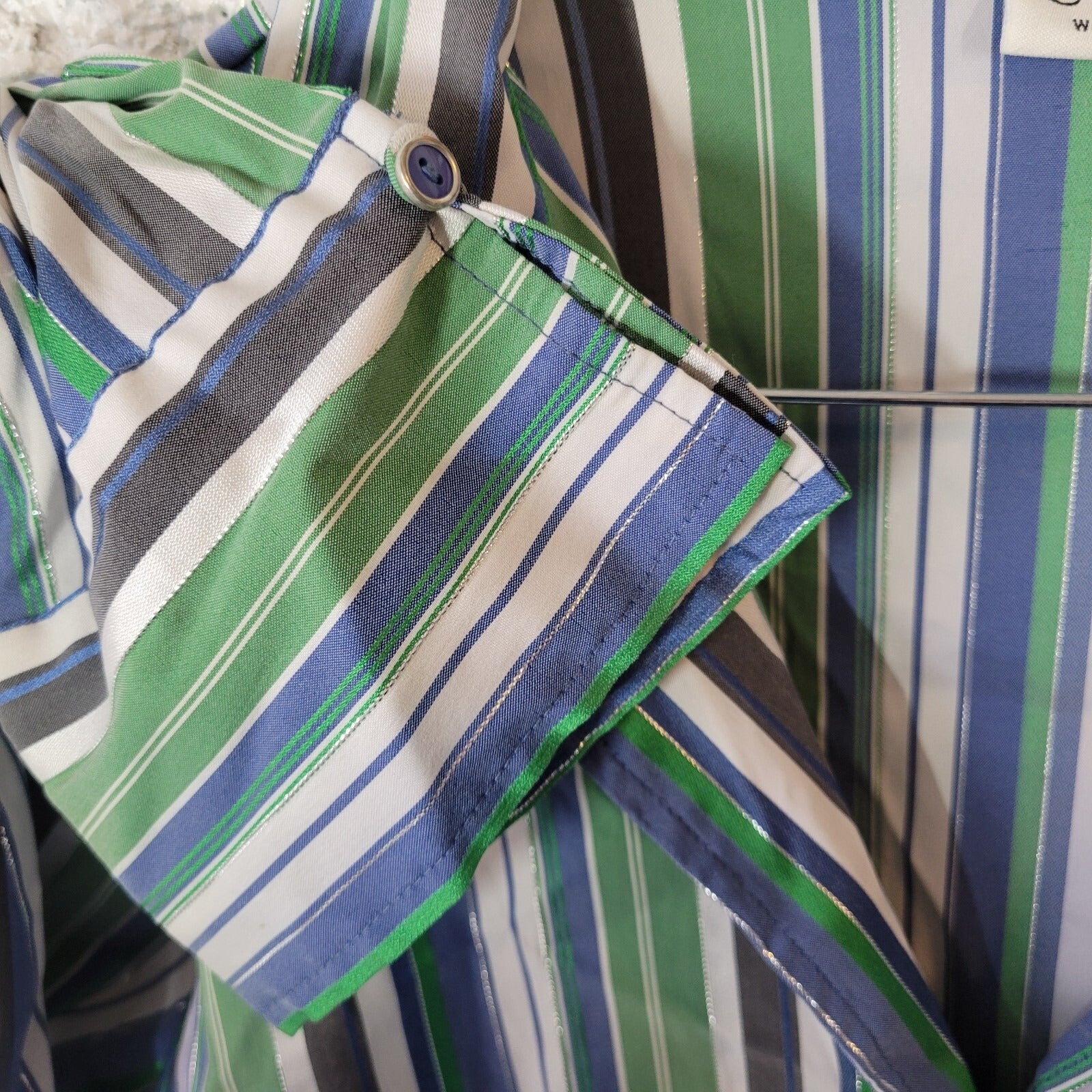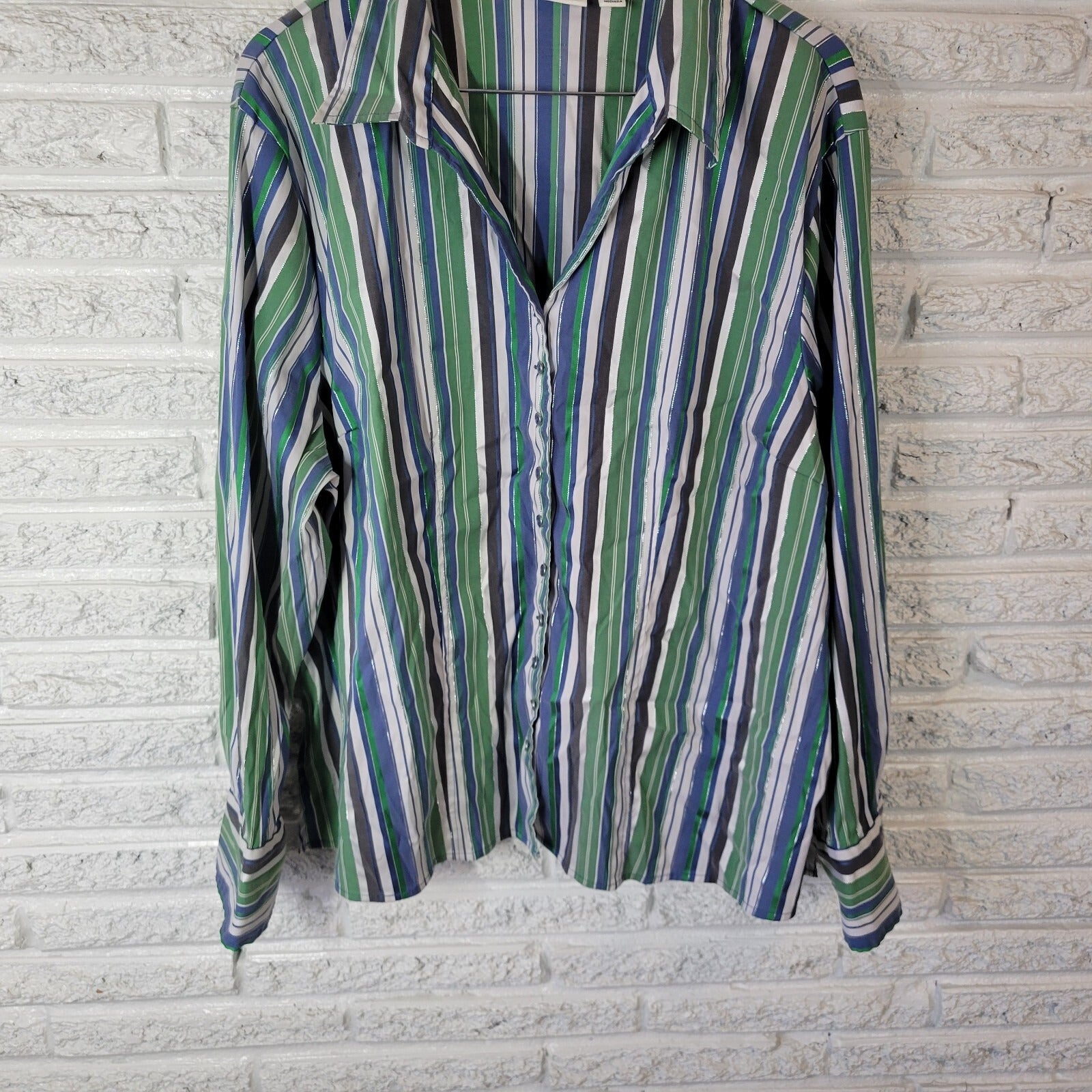 Cato Womens Top 26W 28W Plus Green Stripe Collar Lightweight Metallic Thread