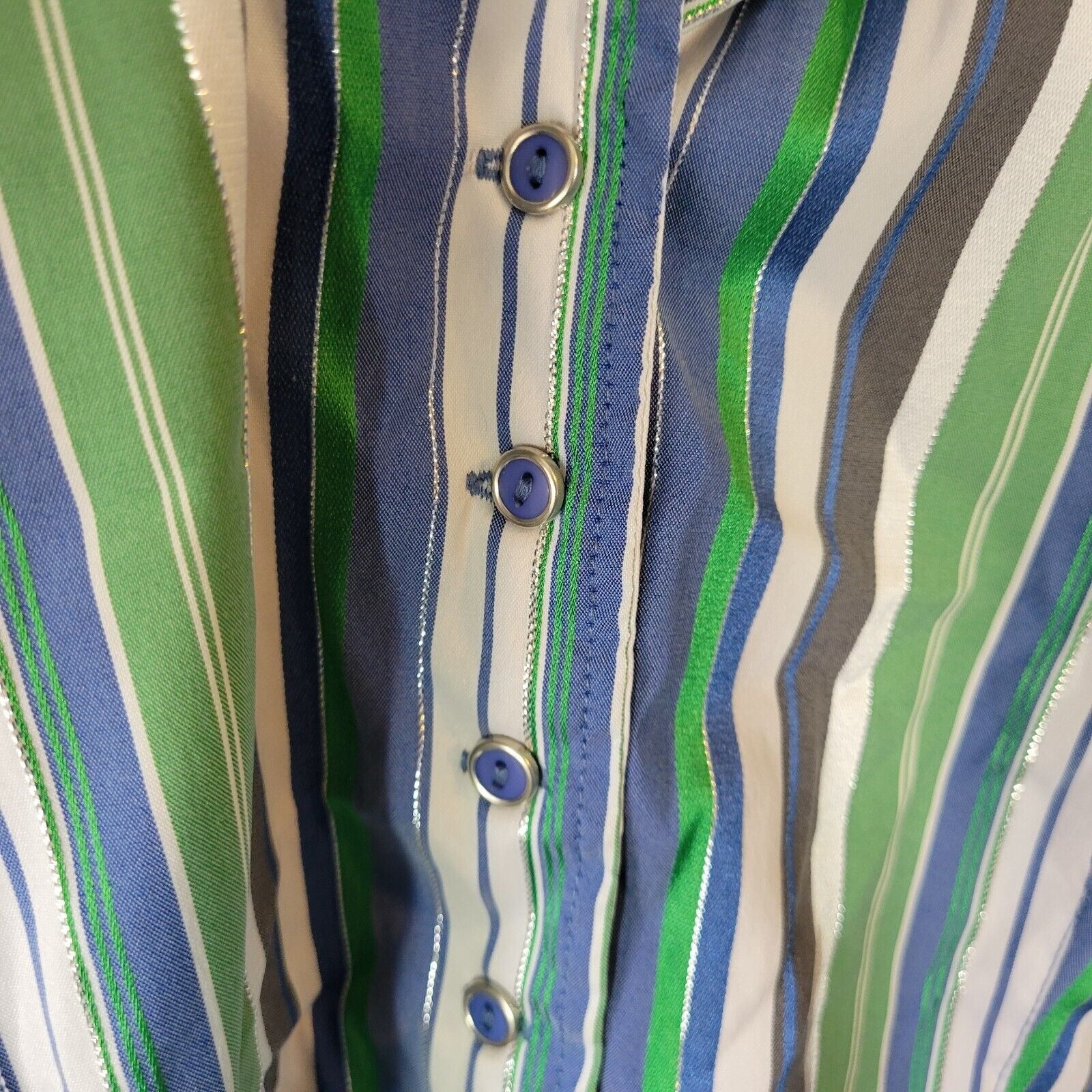 Cato Womens Top 26W 28W Plus Green Stripe Lightweight Metallic Thread Collar
