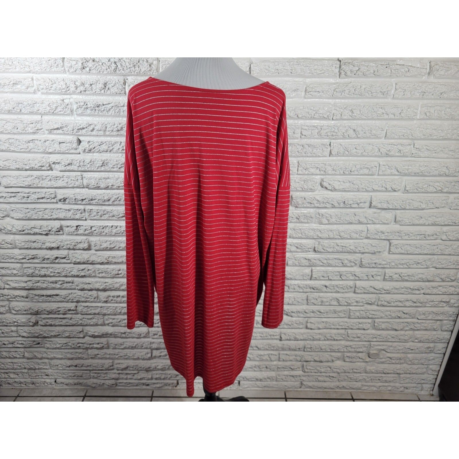 Cato Womens Top 3X Plus Tunic Long Sleeve Knit Red Stripe Sheer Poly Blend