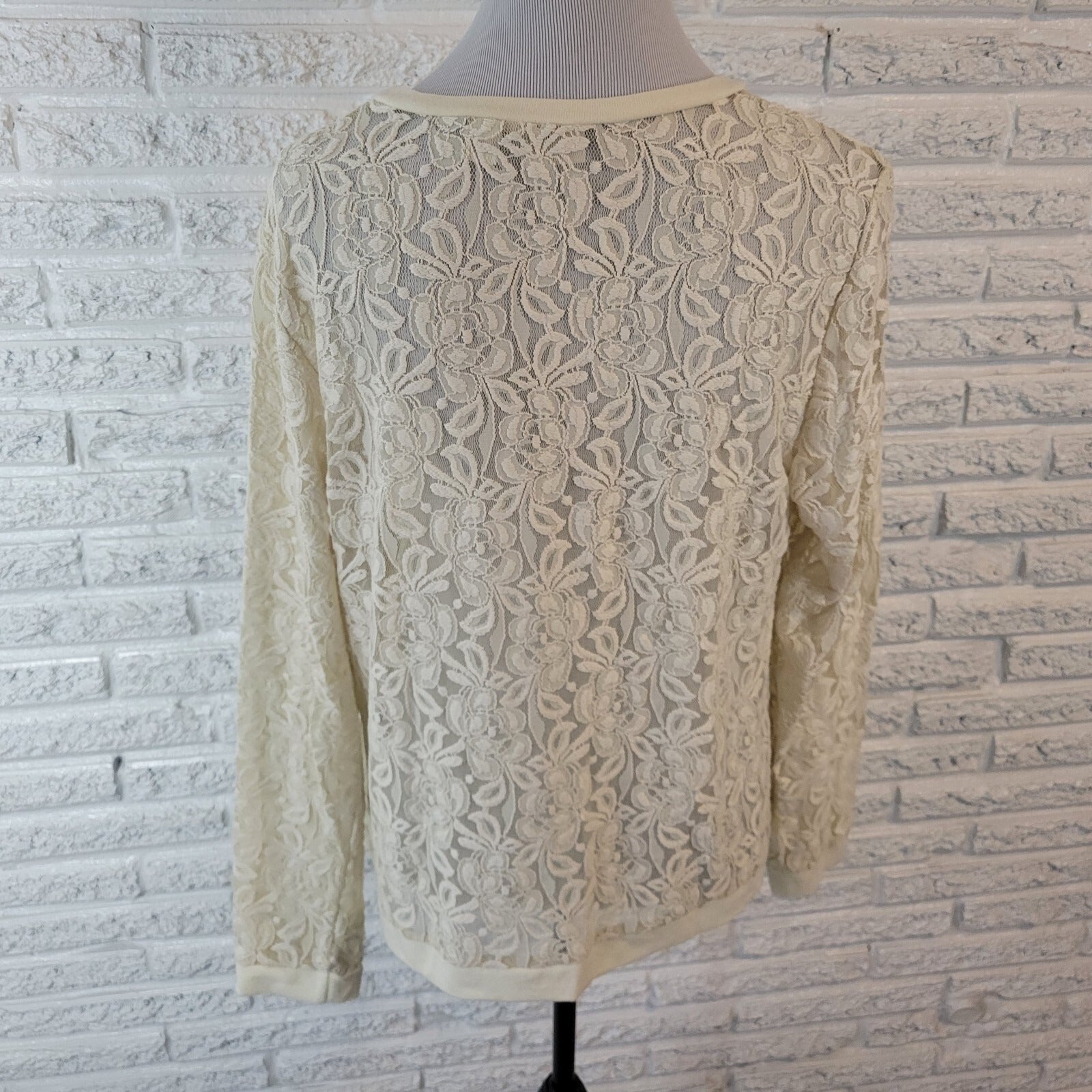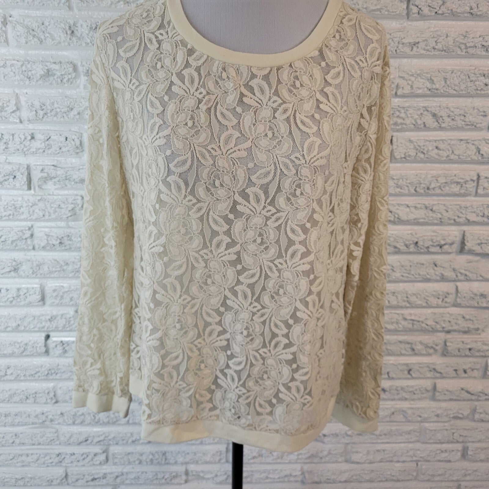 Cato Womens Top Extra Large Long Sleeve White Poly Blend Lightweight Sheer Lace