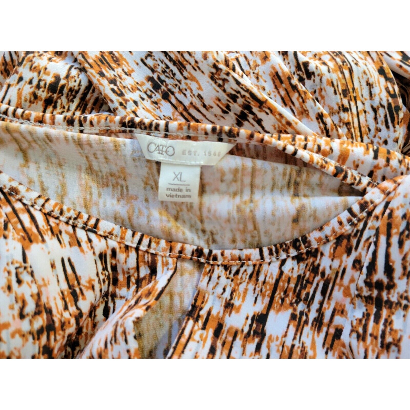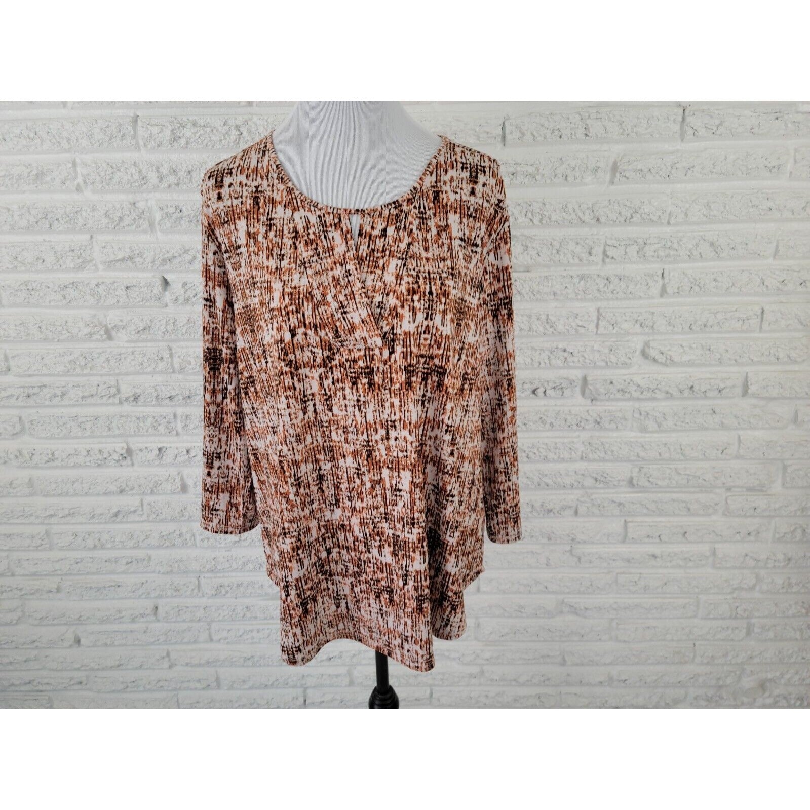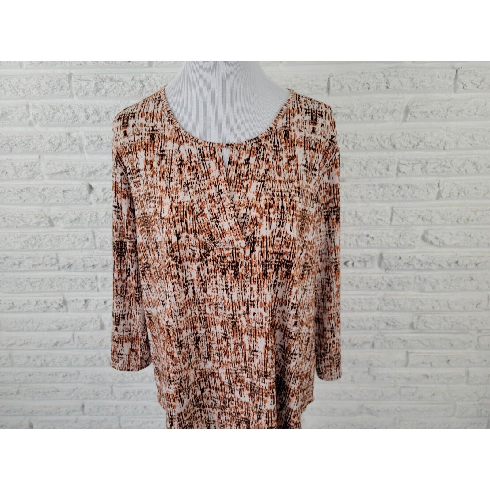 Cato Womens Top Extra Large XL Tunic 3/4 Sleeve Keyhole Brown Watercolor Office