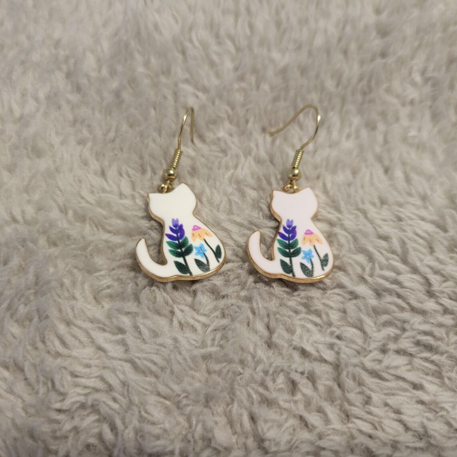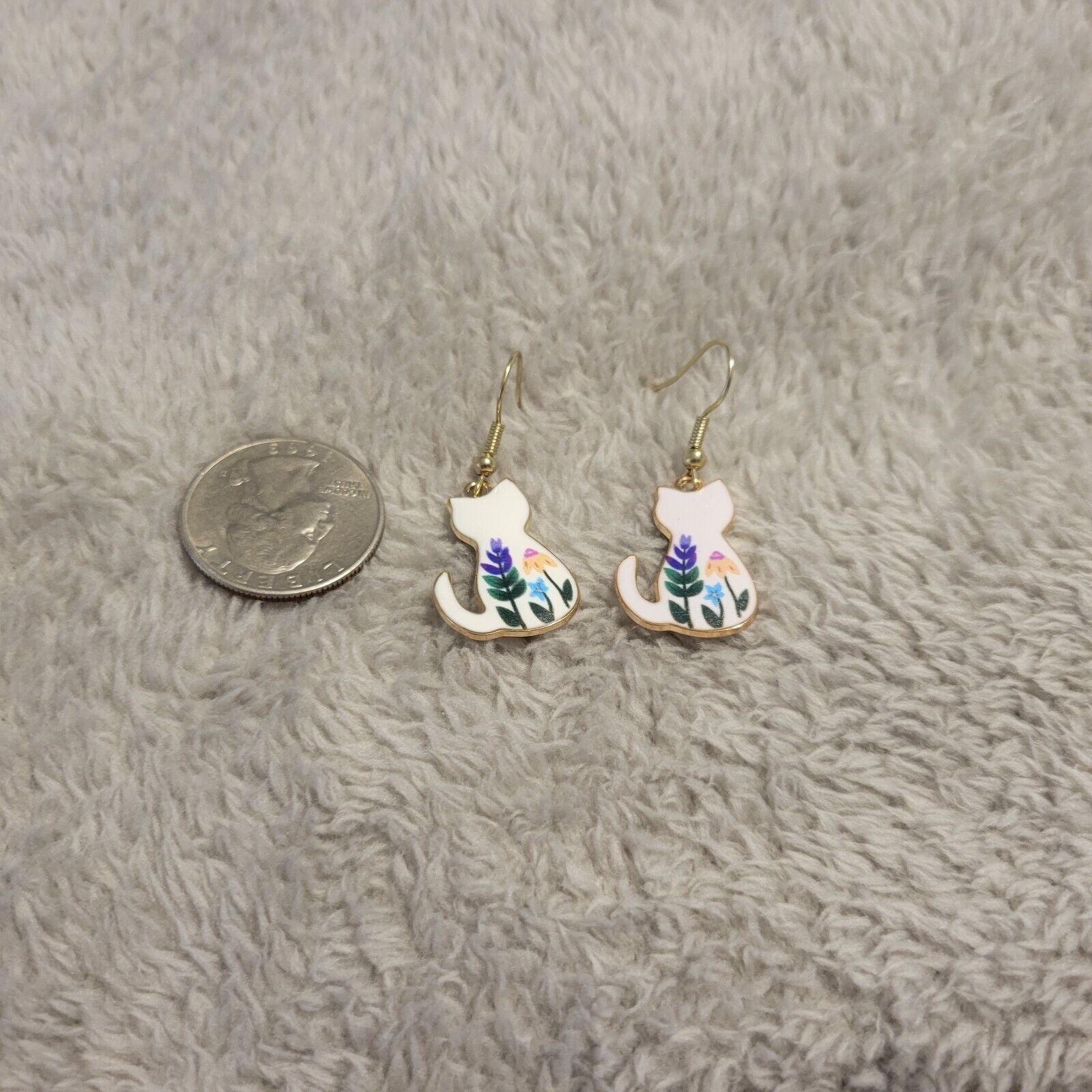 Cats Kittens Earrings Multi Color Floral Fish Hook Hanging Dangle Fun Novelty