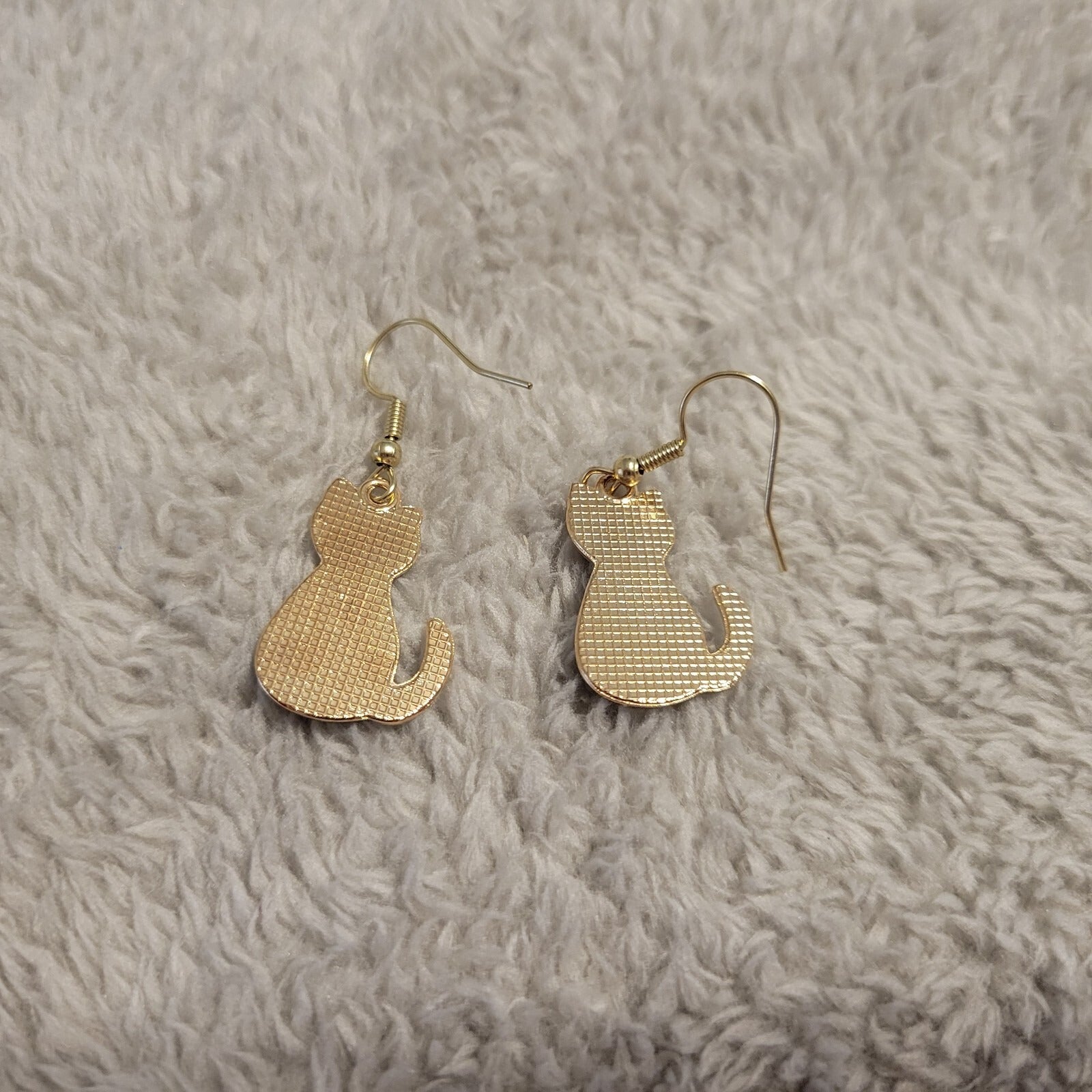 Cats Kittens Earrings One Pair Black White Gold Tone Fish Hook Dangle Hanging
