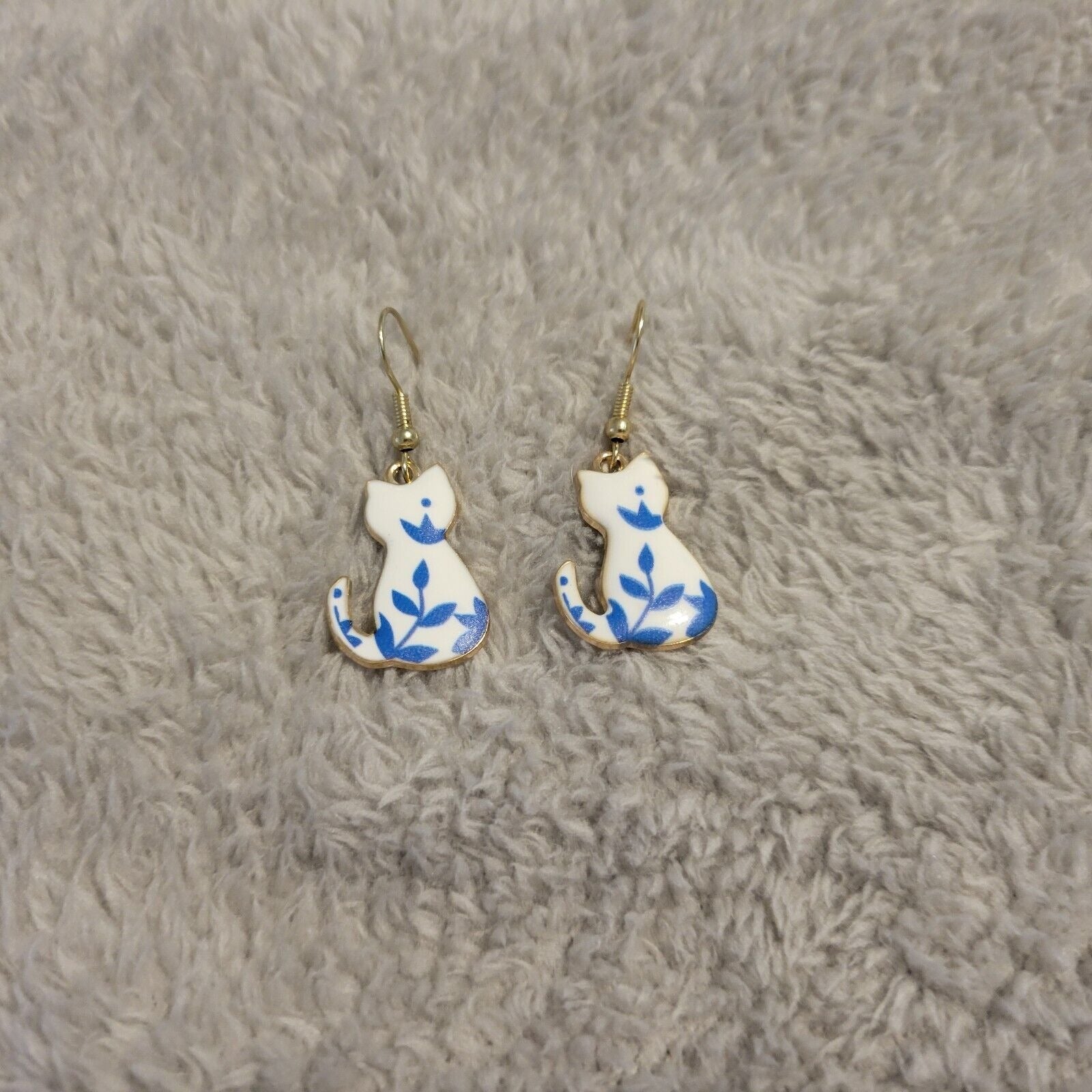 Add a touch of whimsy to your outfit with these charming cat and kitten earrings, a perfect accessory for any animal lover. These earrings feature a delightful blue floral design, exuding a playful yet elegant vibe. The gold-tone finish gives them a classic look, making them versatile for both casual and formal occasions. Crafted with fish hook style, these dangle/drop earrings are designed to catch the light and draw attention to your look. Whether you're treating yourself or searching for a special gift, these unbranded earrings are sure to be a delightful addition to any jewelry collection.