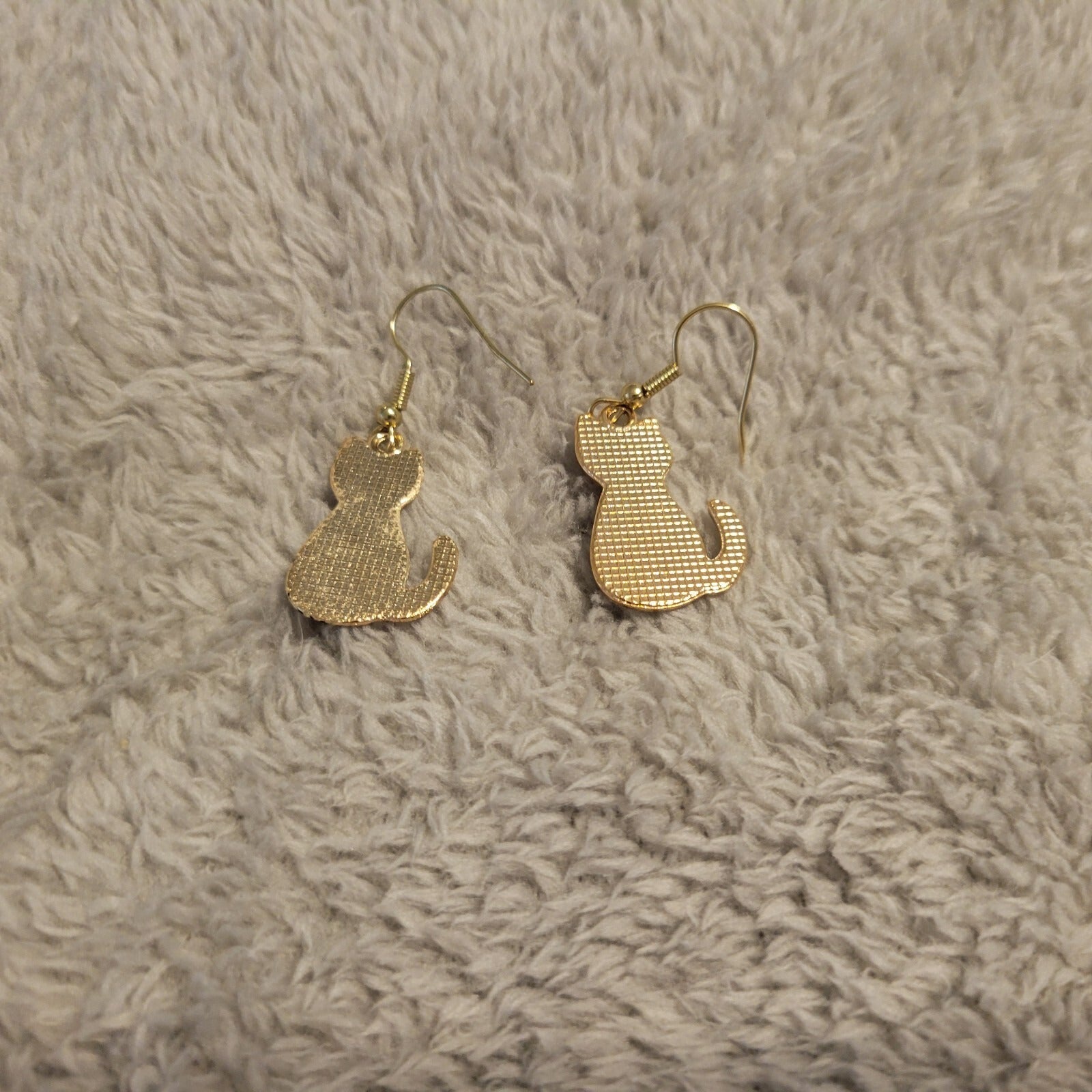 Delight in the charm of these beige-colored cat/ kitten earrings, a perfect accessory for animal lovers and those who appreciate a touch of whimsy in their everyday wear. Crafted with a dangle/drop style that adds a playful swing to your every movement, these earrings are designed to catch the light and draw attention to your unique fashion sense. The earrings feature a classic gold tone that provides a versatile match for a variety of outfits, from casual jeans to more formal attire. They hang gracefully from a fish hook design, ensuring a comfortable fit for all-day wear. Whether you're treating yourself or searching for a special gift, these charming earrings are sure to be a delightful addition to any jewelry collection.