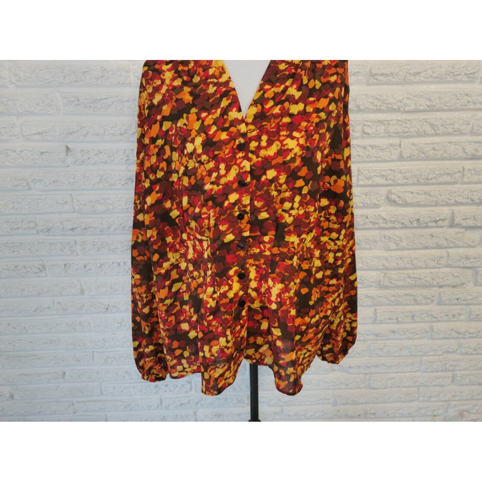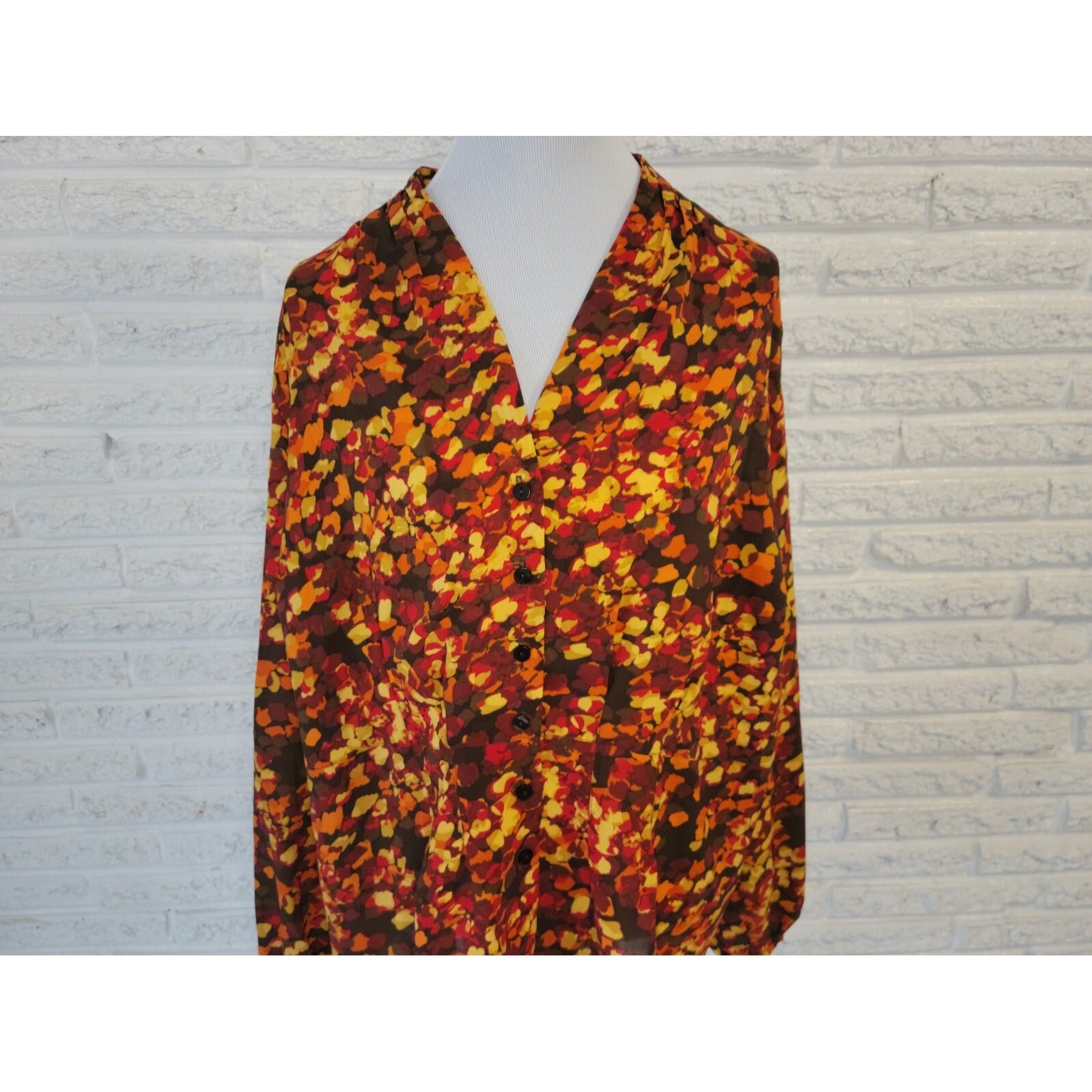 Chadwicks Womens Shirt 20W Plus Collar Button Up Long Sleeve Watercolor Sheer