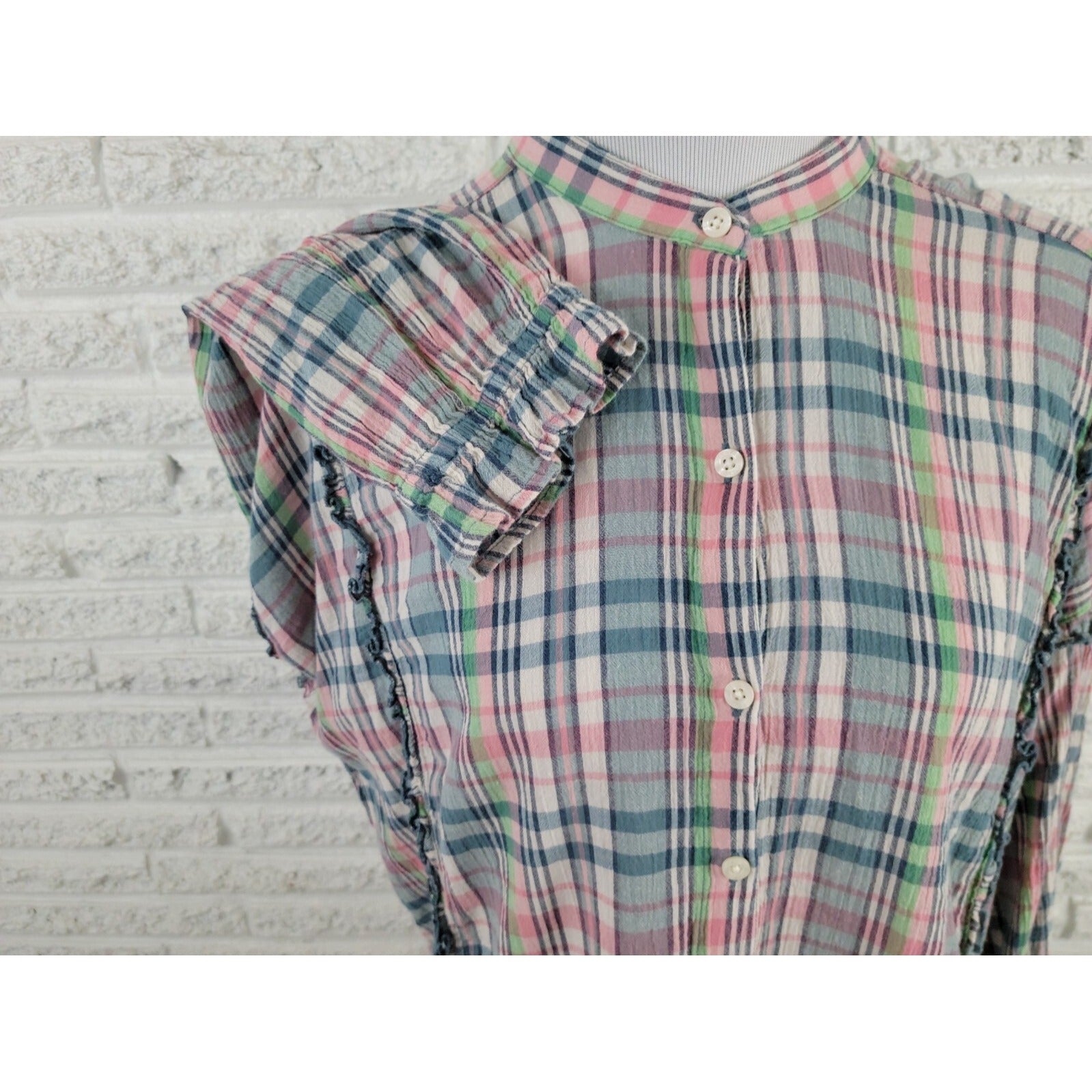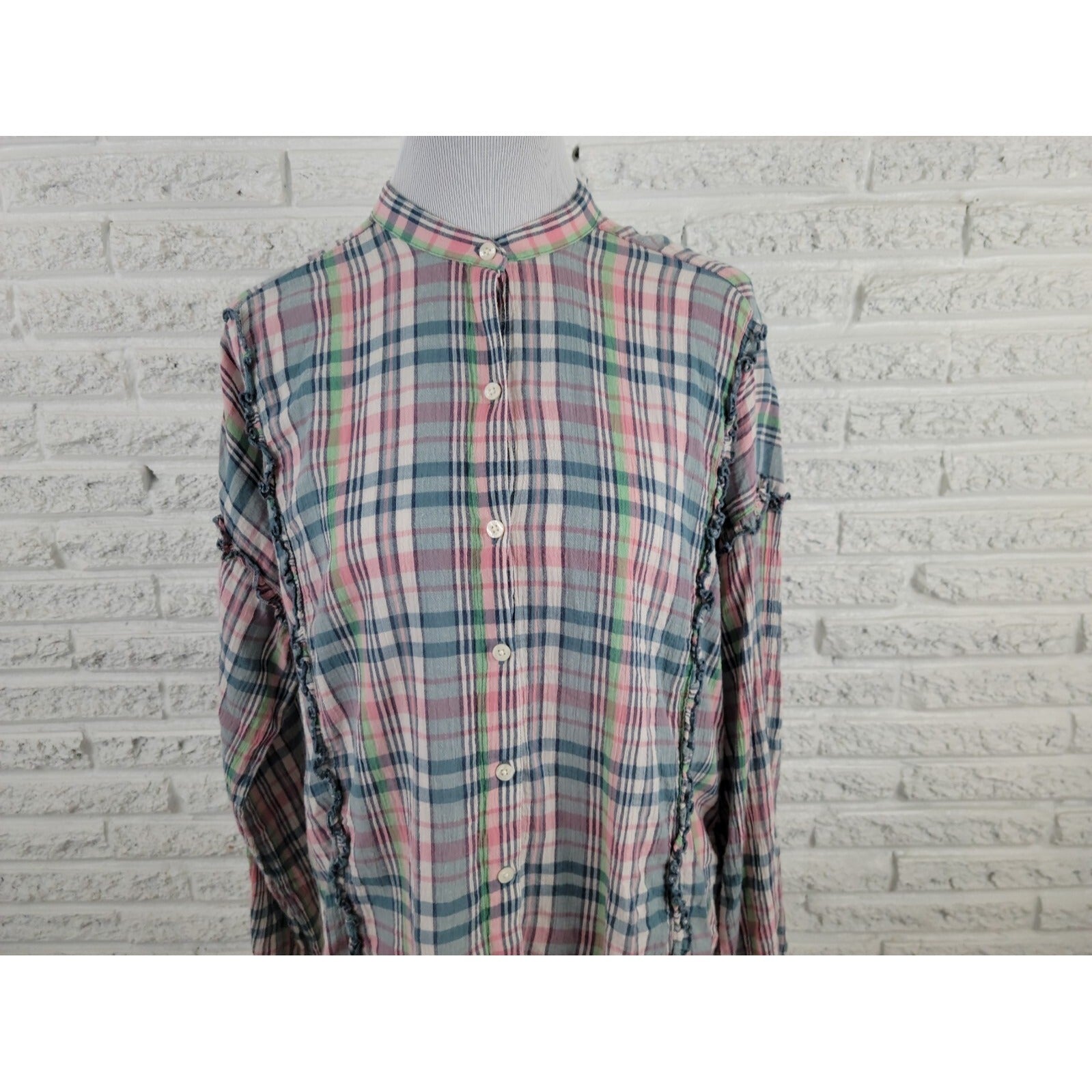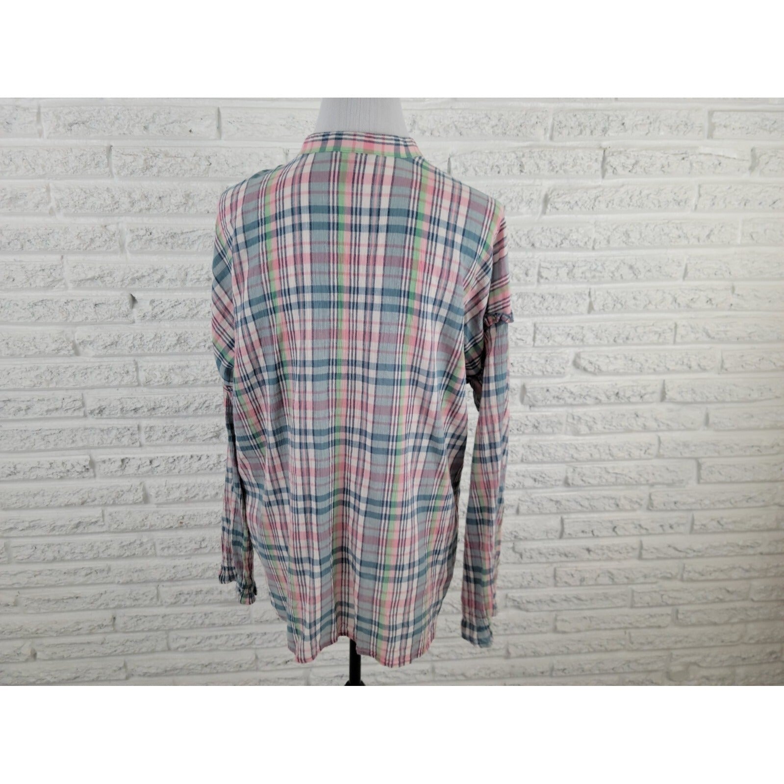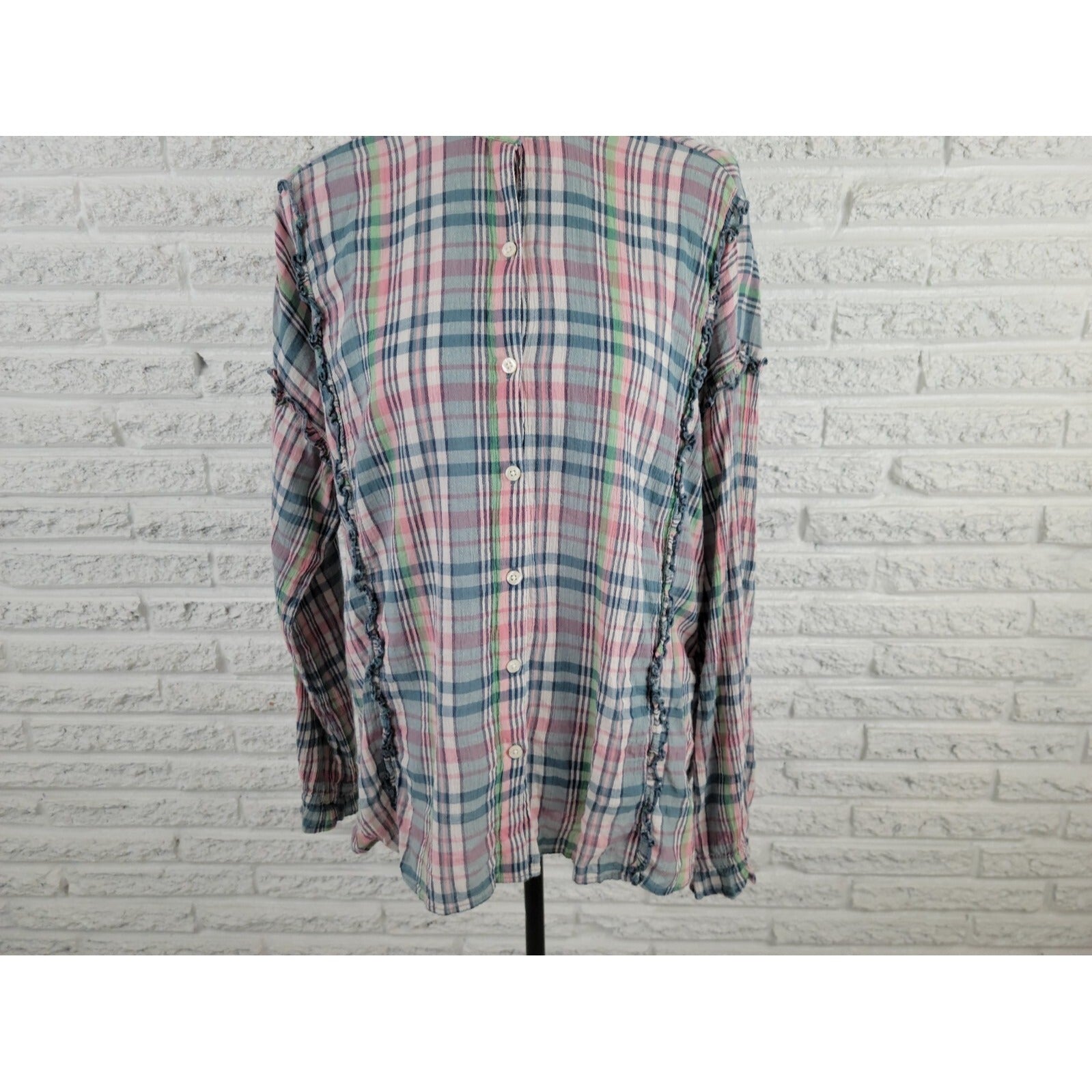 Chaps Women Top Extra Large XL Long Sleeve Button Up Cotton Ruffle Plaid Sheer