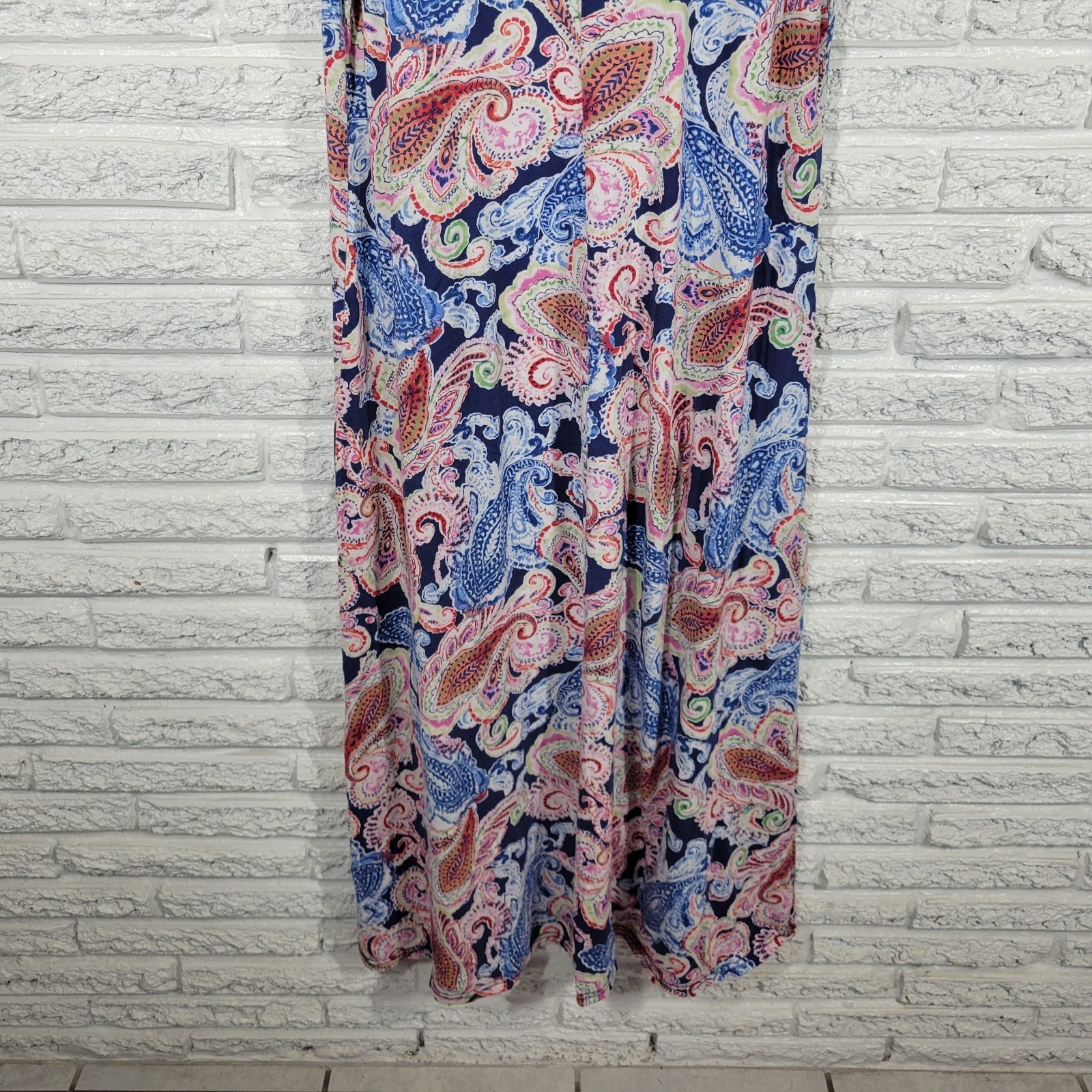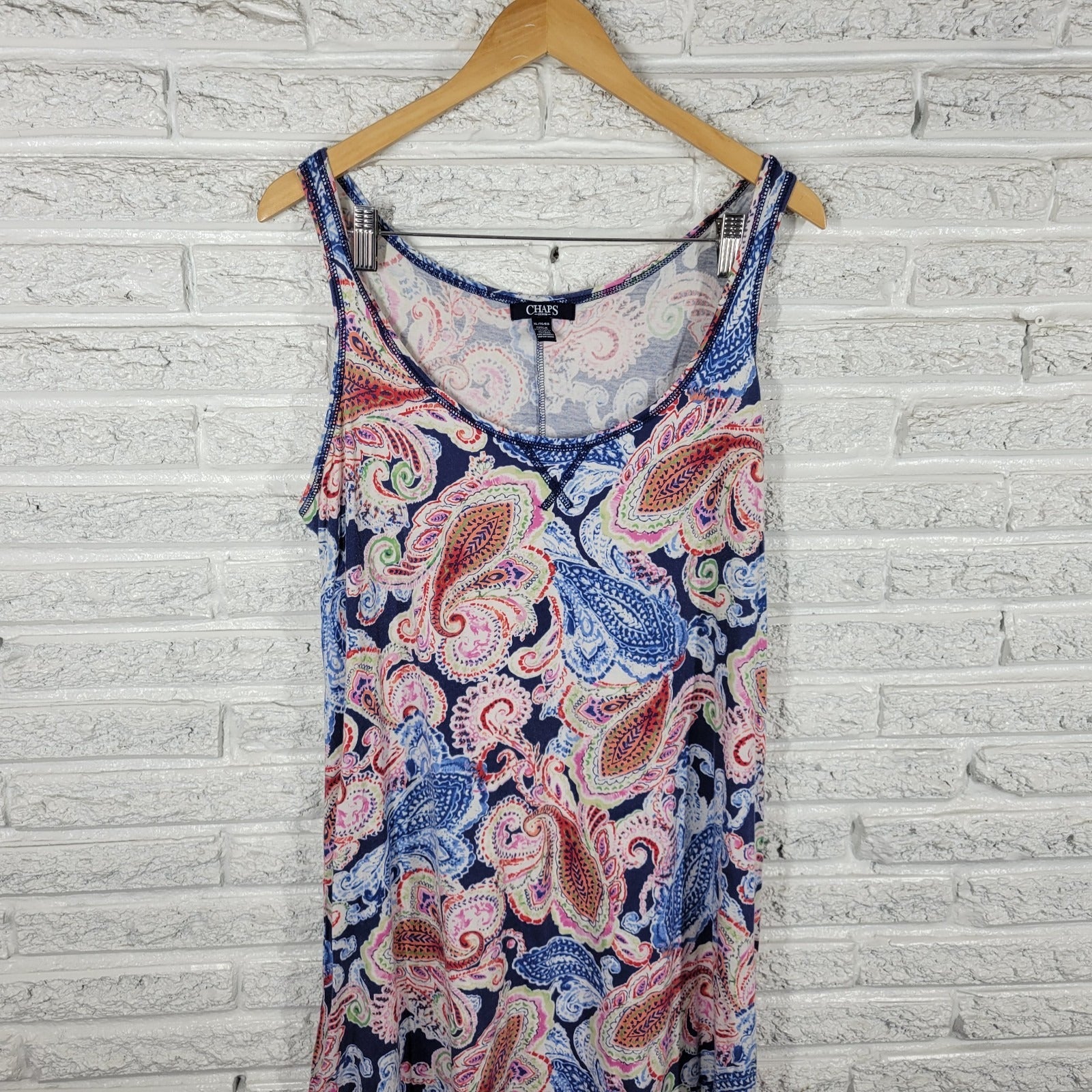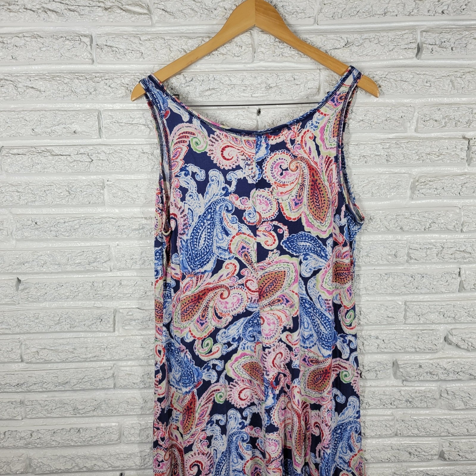 Chaps Womens Dress Extra Large Tank Midi Blue Pink Paisley Cotton Comfy Casual