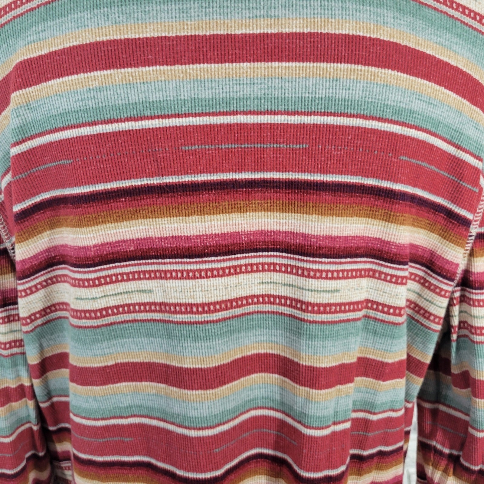 Chaps Womens Sweater 2X Plus Red Yellow Stripe 1/4 Button Lightweight Cotton