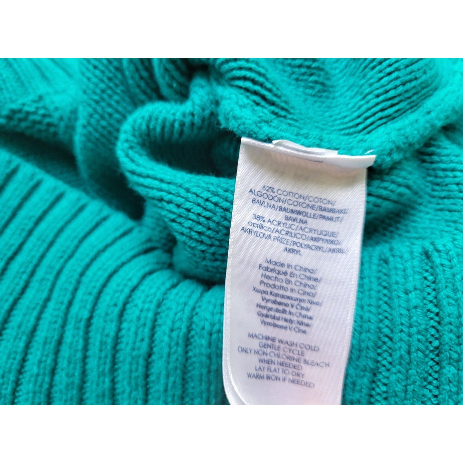 Chaps Womens Sweater 3X Plus Pullover Cable Knit Blue Green Cotton Blend Casual