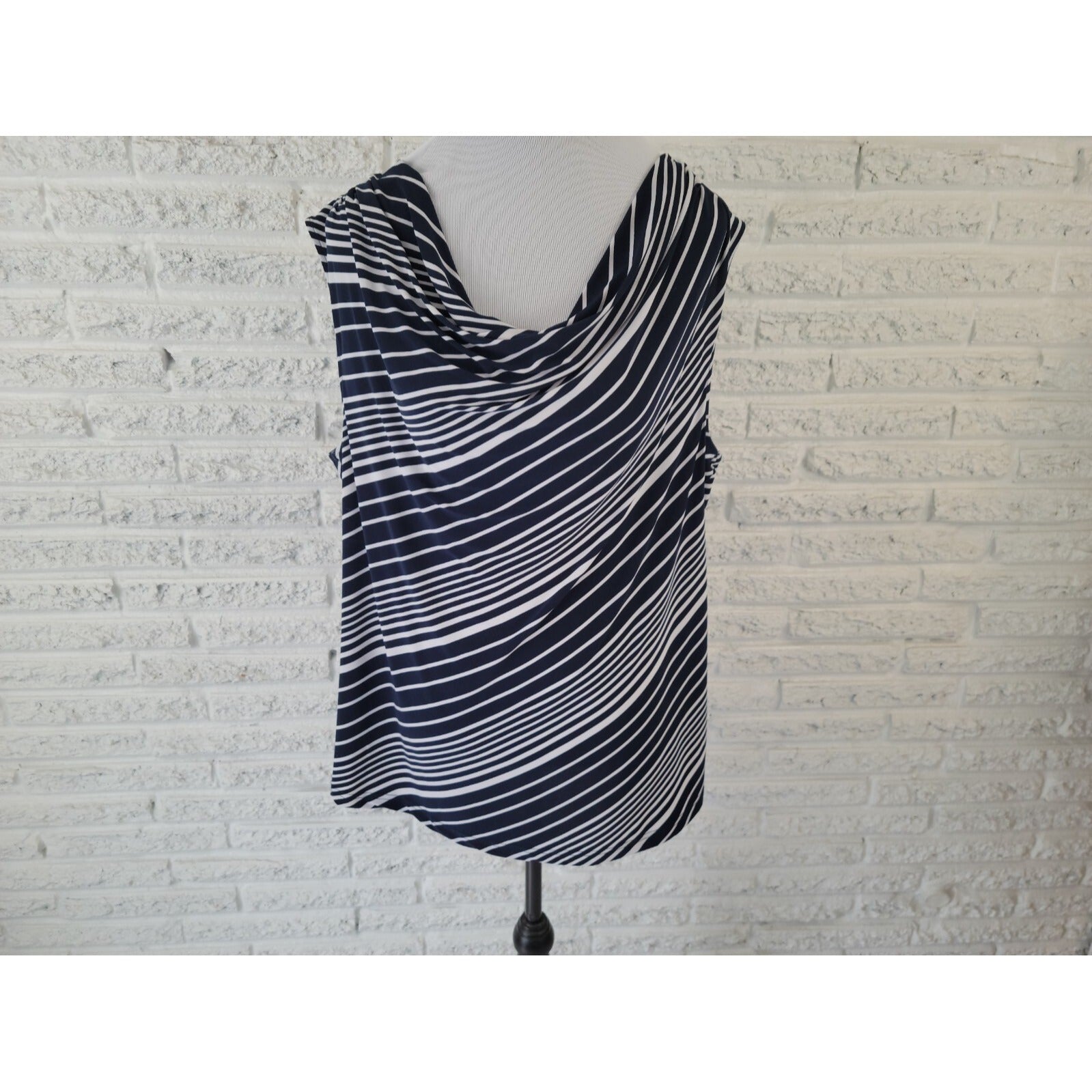 Chaps Womens Top 2X Plus Draped Boat Neck Sleeveless Blue Stripe Career Casual