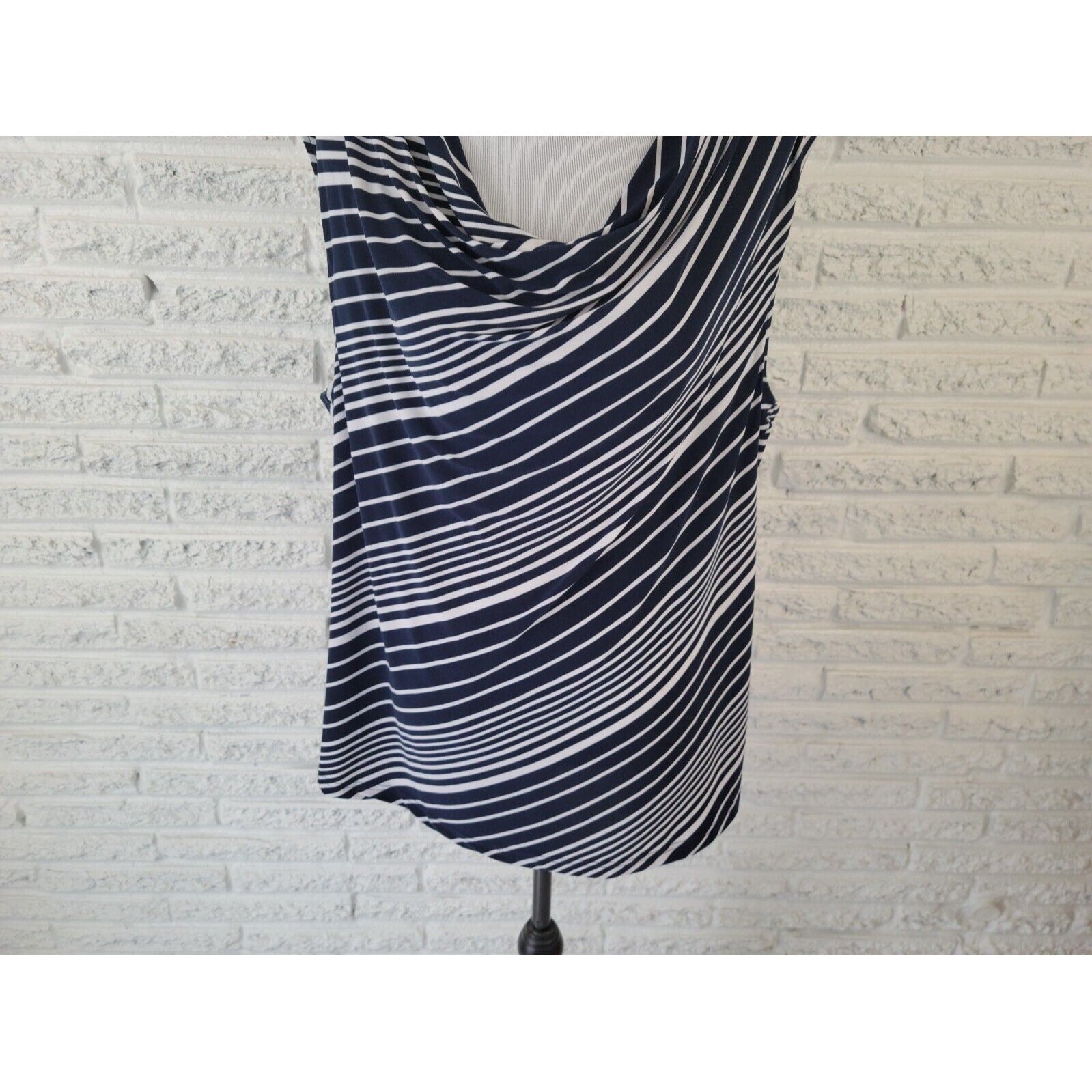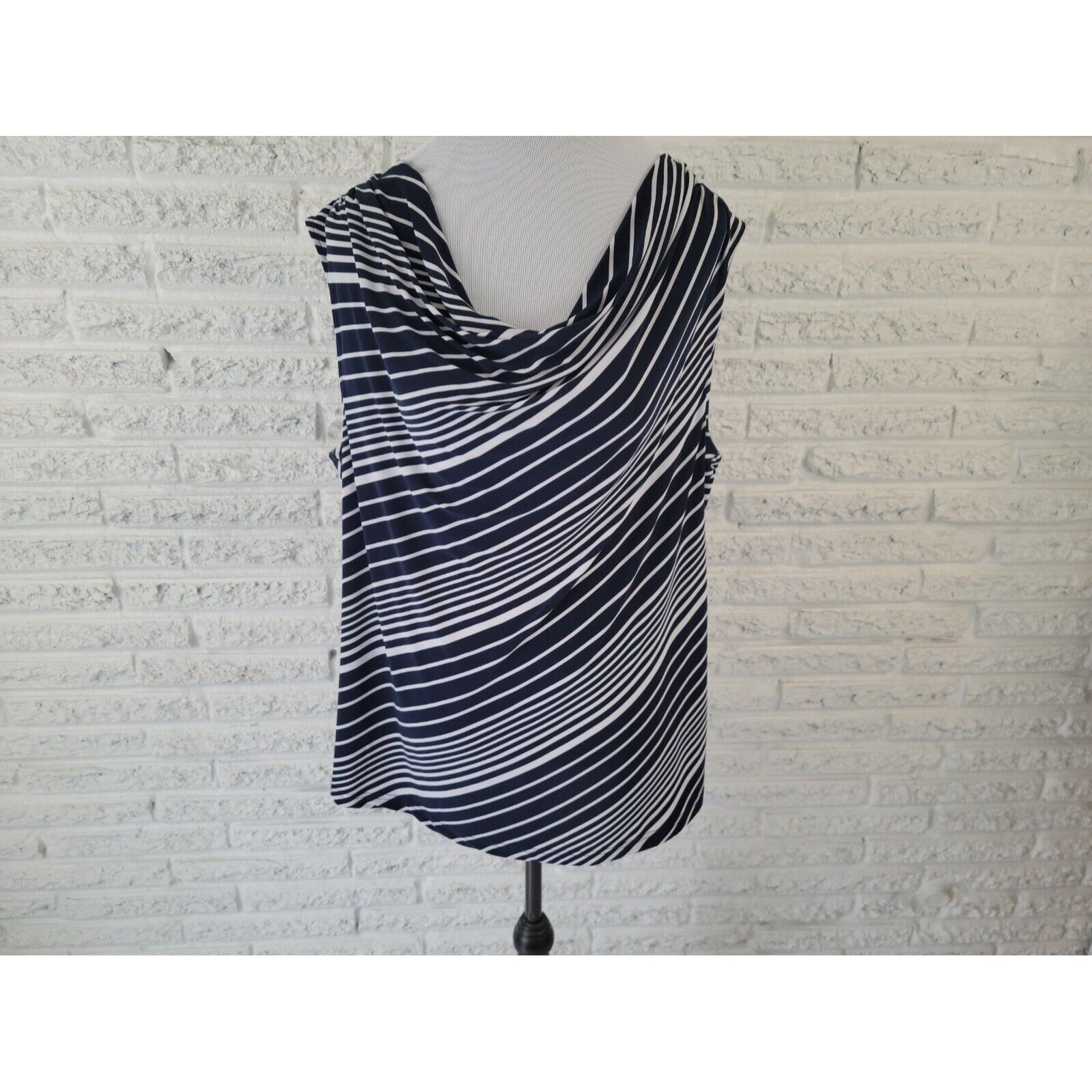 Chaps Womens Top 2X Plus Draped Boat Neck Sleeveless Blue Stripe Office Casual