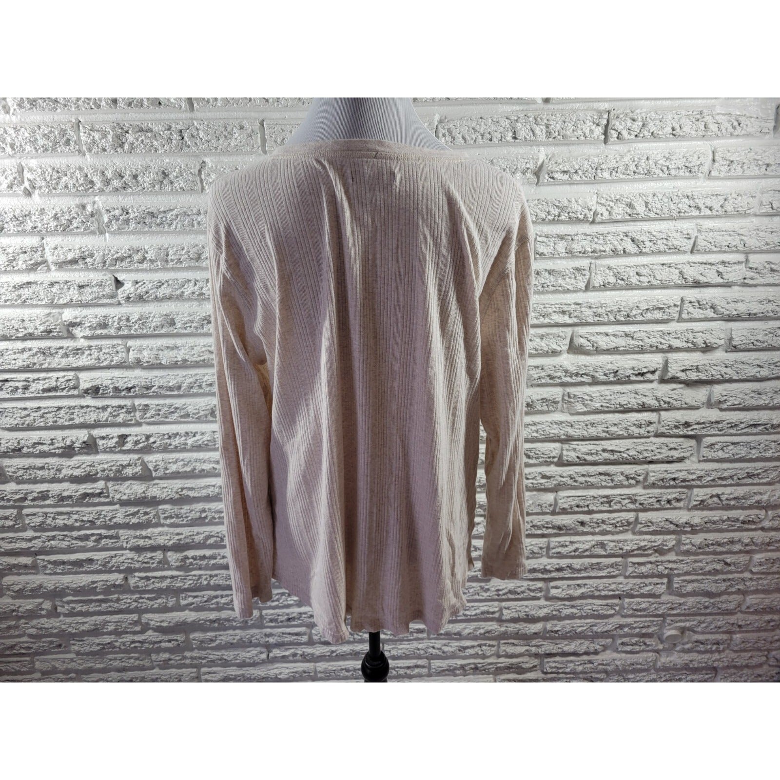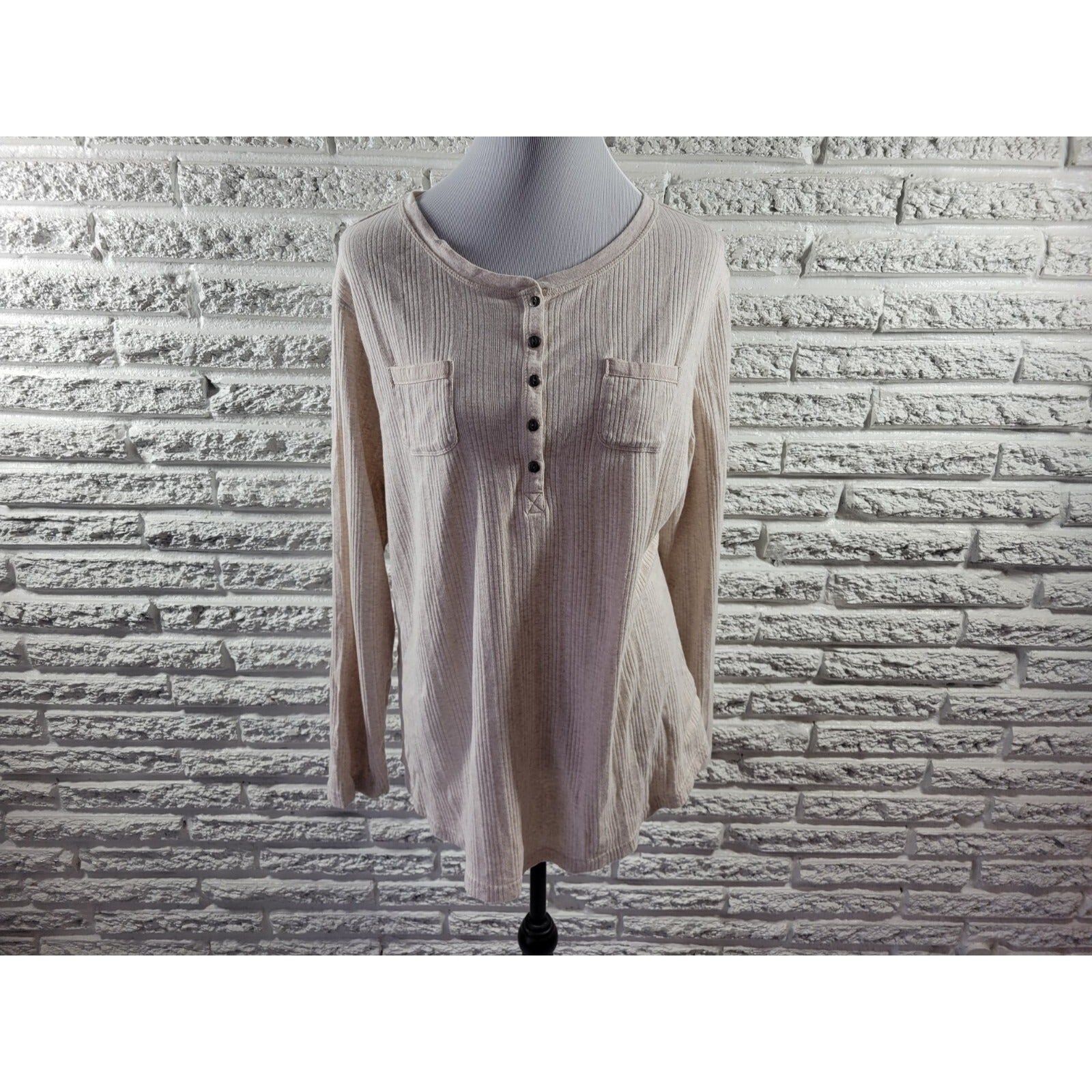 Chaps Womens Top 2X Plus Knit Long Sleeve Pockets Beige Cotton Quarter Button