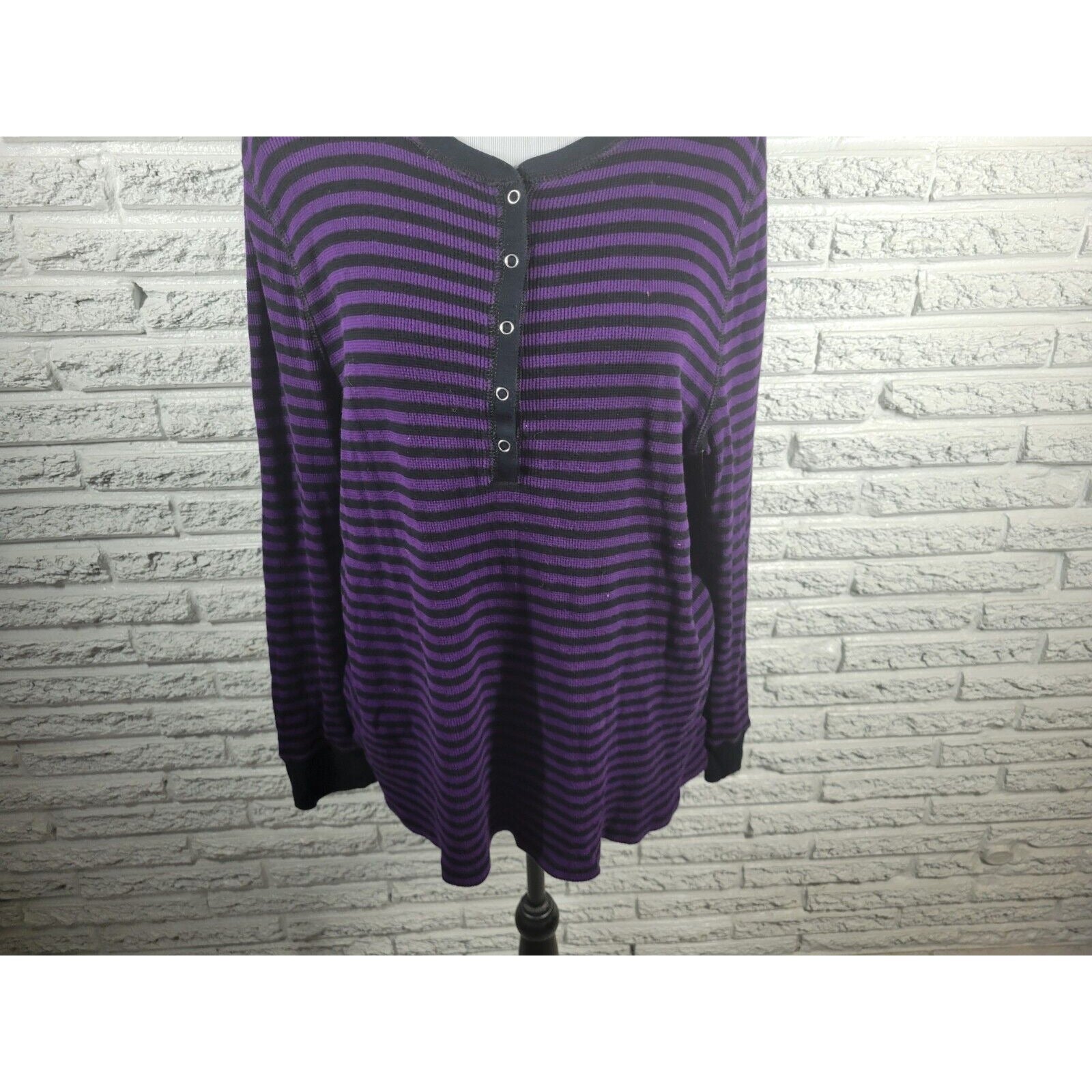 Chaps Womens Top 2X Plus Long Sleeve Knit Purple Stripe Snap Up Cotton Casual