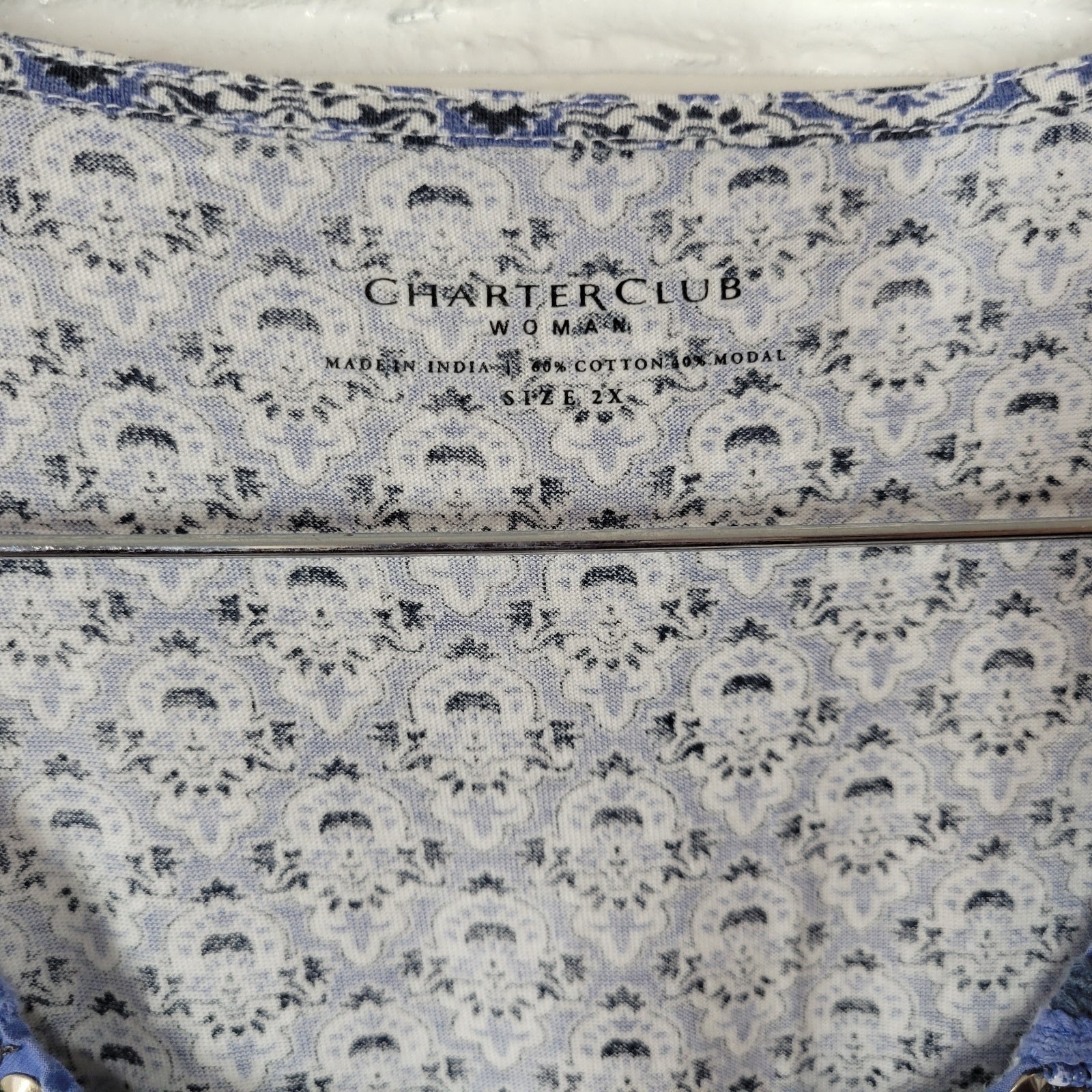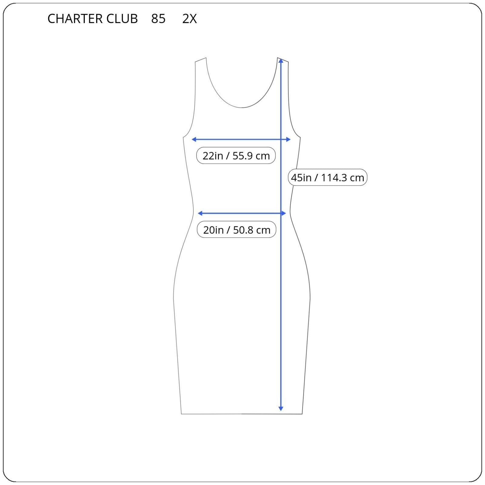This Charter Club Women's Dress in size 2X Plus is a stylish and versatile option for any occasion. The sleeveless design and knee-length cut make it perfect for travel or casual wear, while the blue/white geometric crochet beads and studs add a touch of flair. Made from a comfortable cotton blend material, this pullover dress is machine washable for easy care. With its stretch features and flattering sheath style, this dress is a must-have for any woman's wardrobe, suitable for all seasons.
