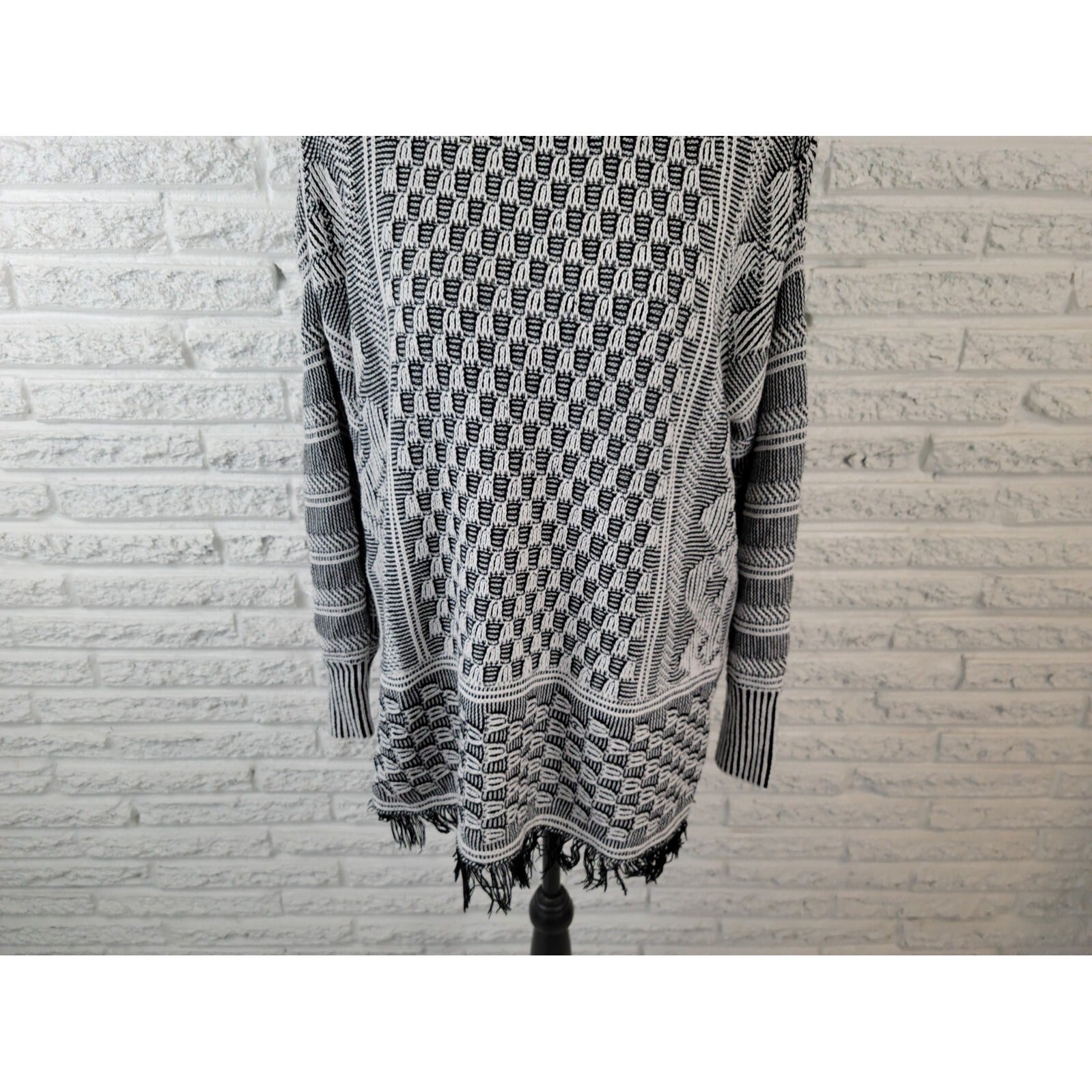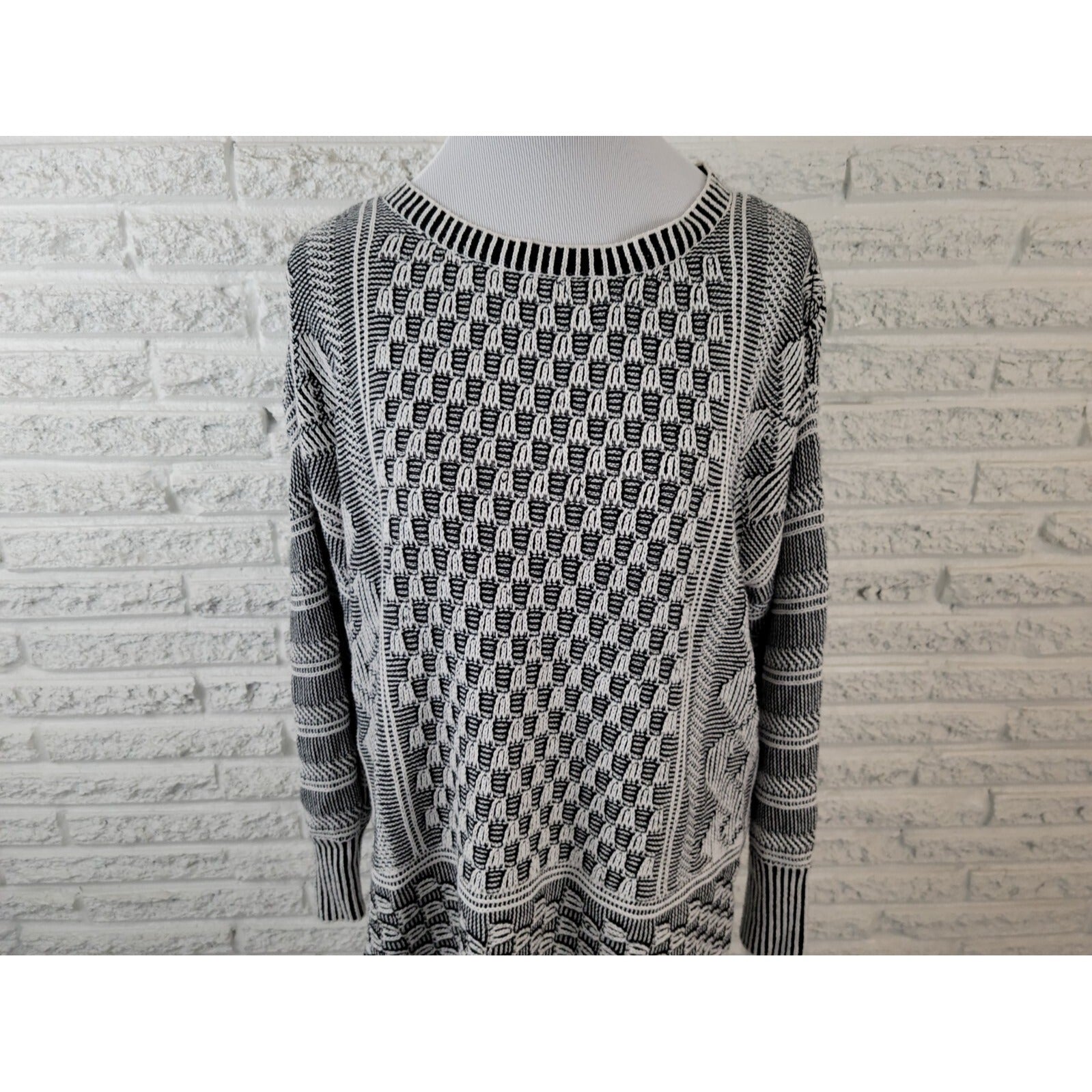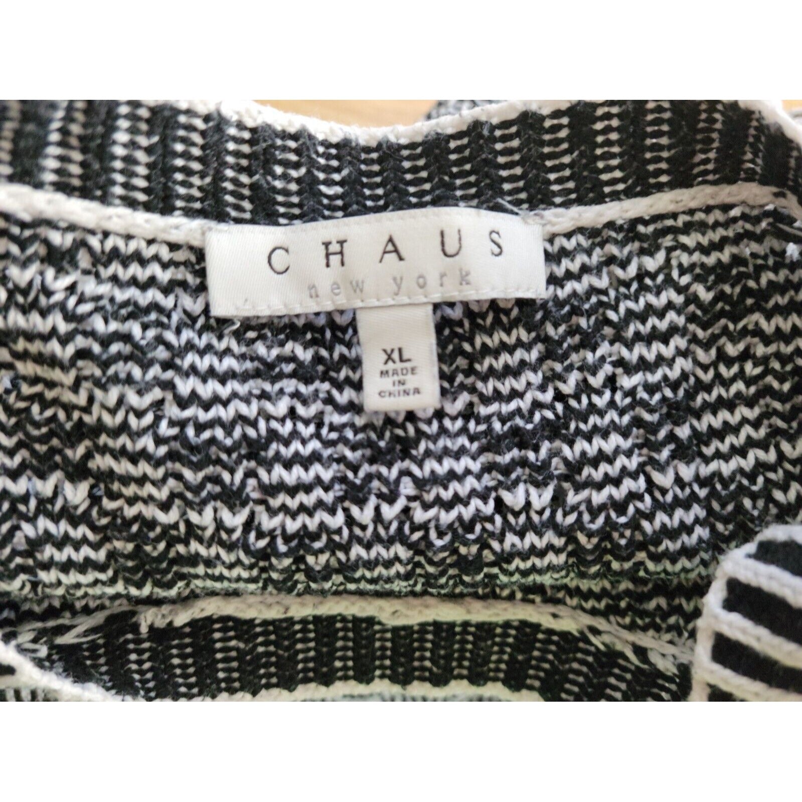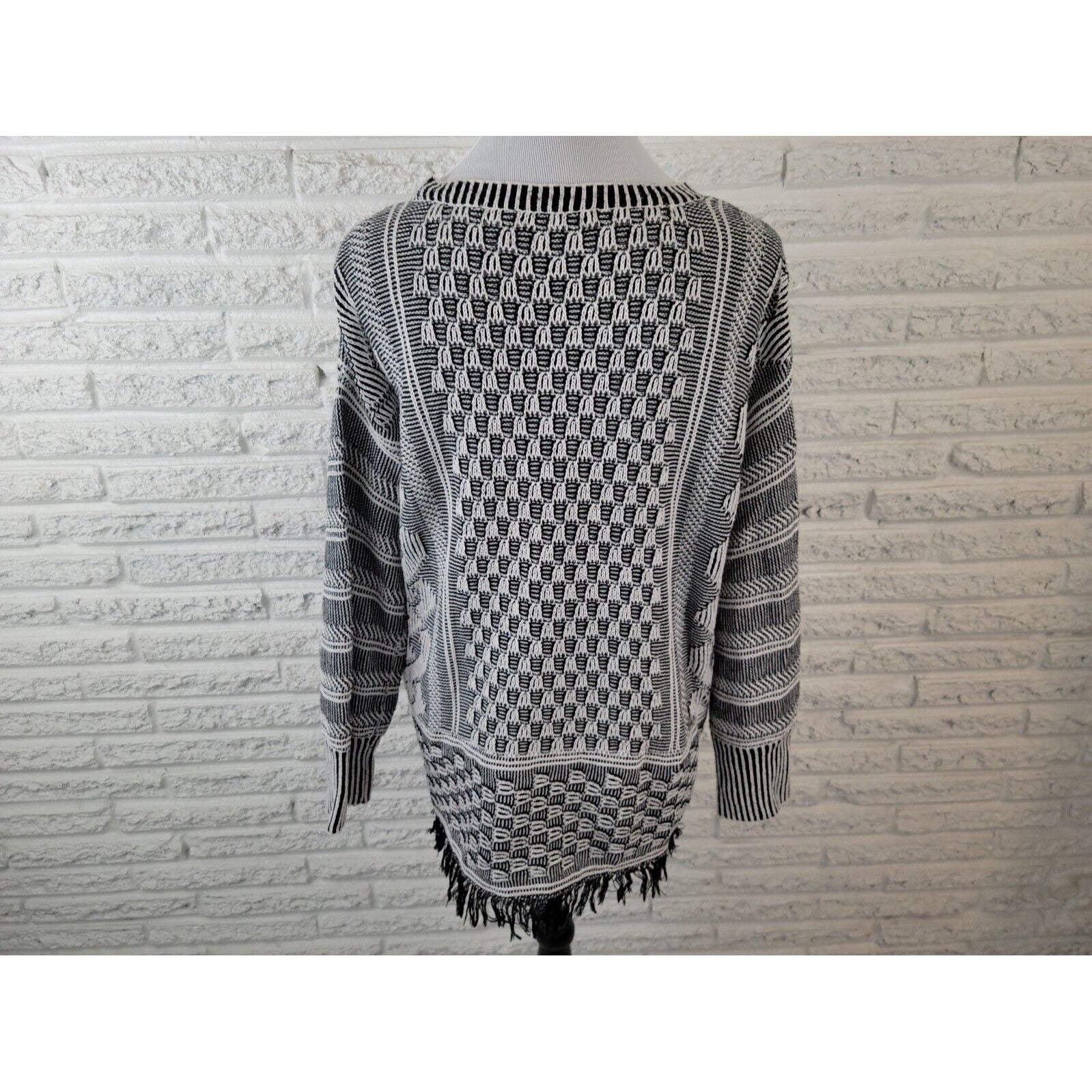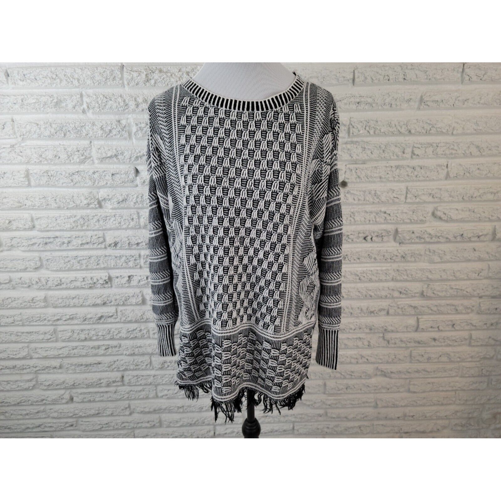 Chaus Womens Sweater Extra Large XL Pullover Black Geometric Fringe Casual Crew