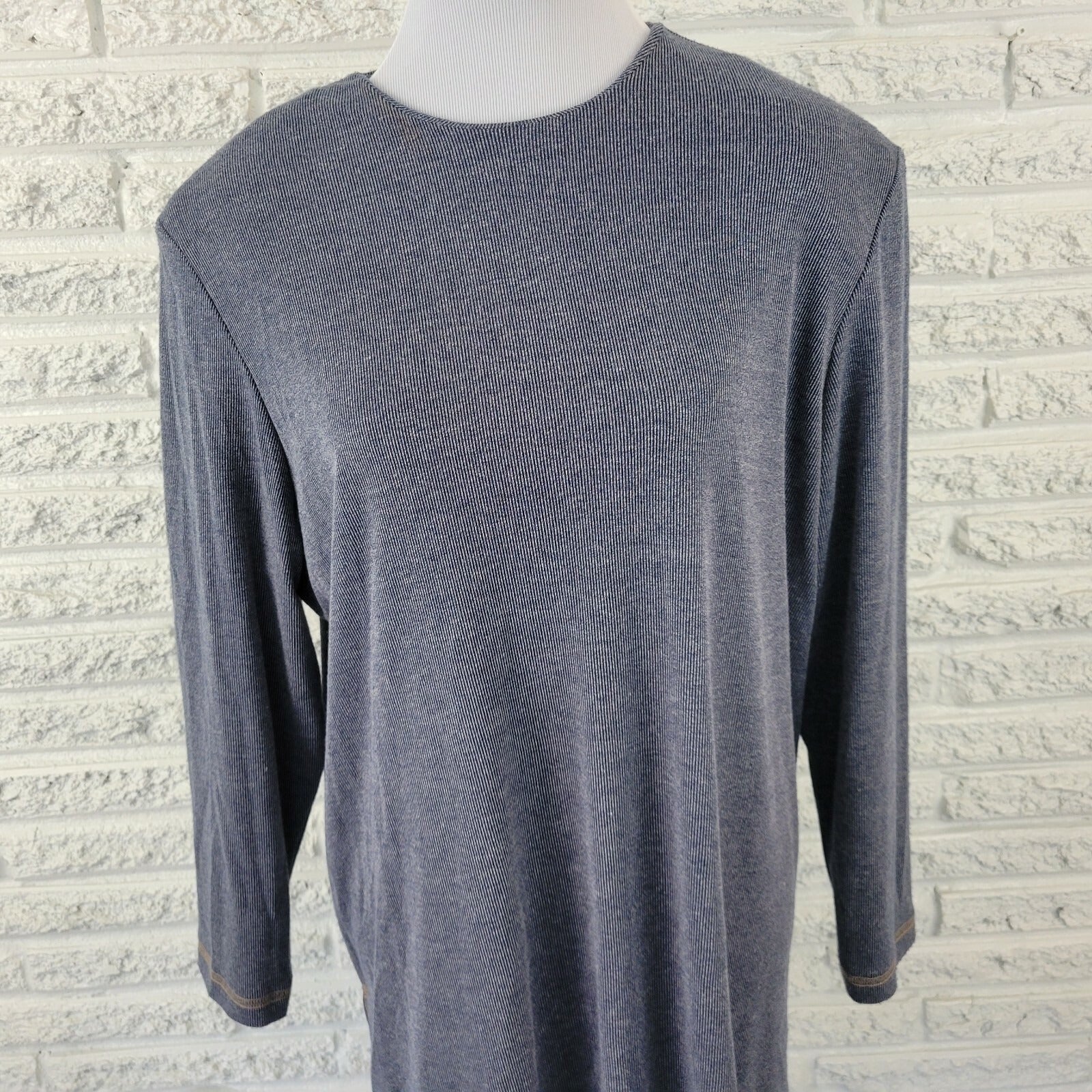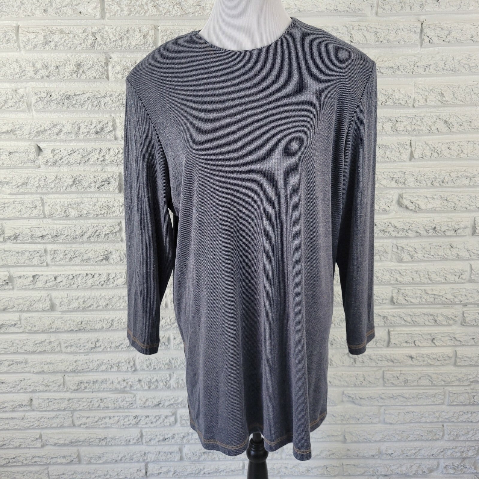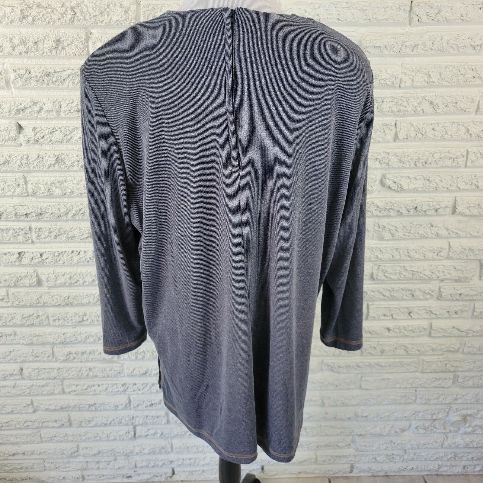Chez California Womens Top 14W Plus Tunic Long Sleeve Gray Casual Pinstripe Zip