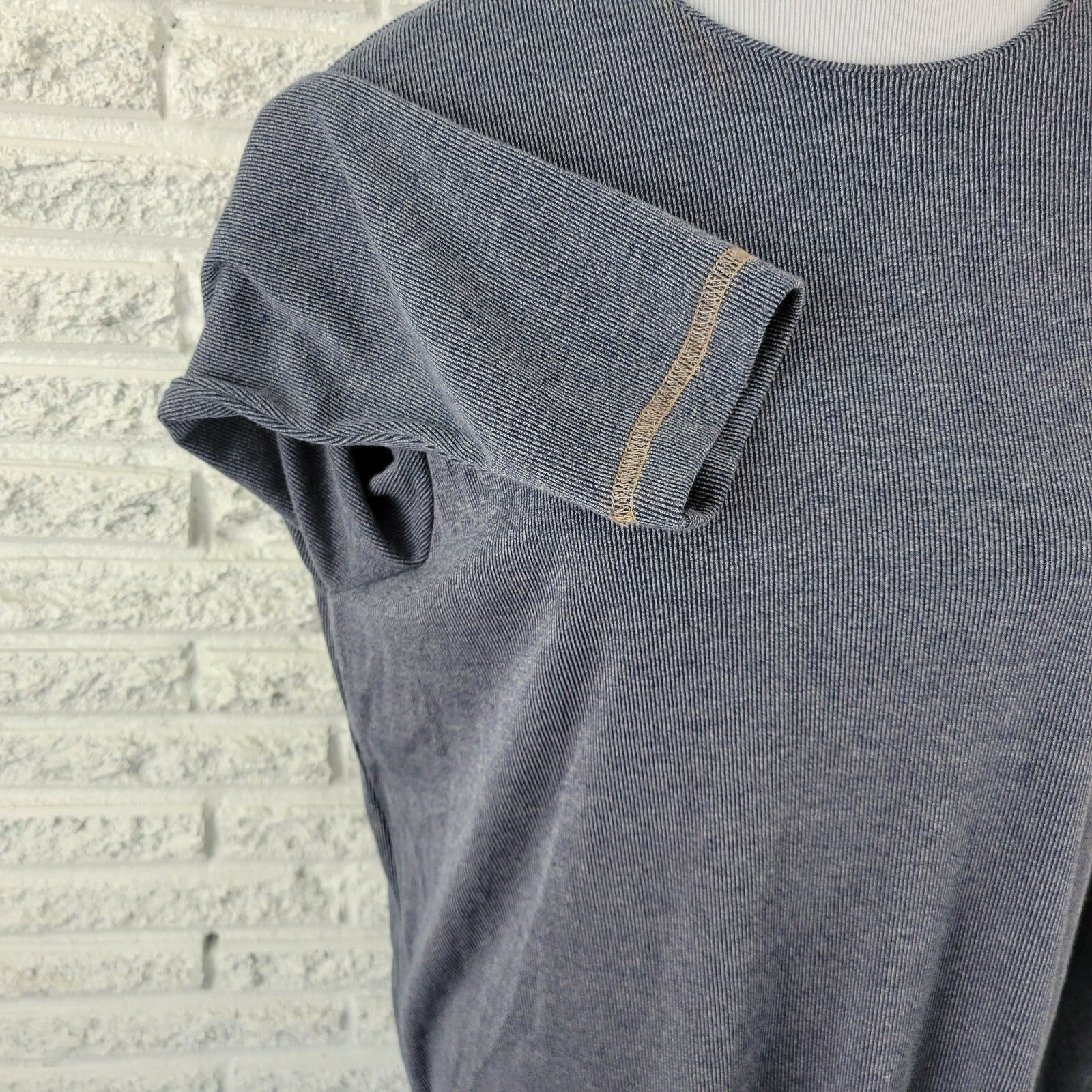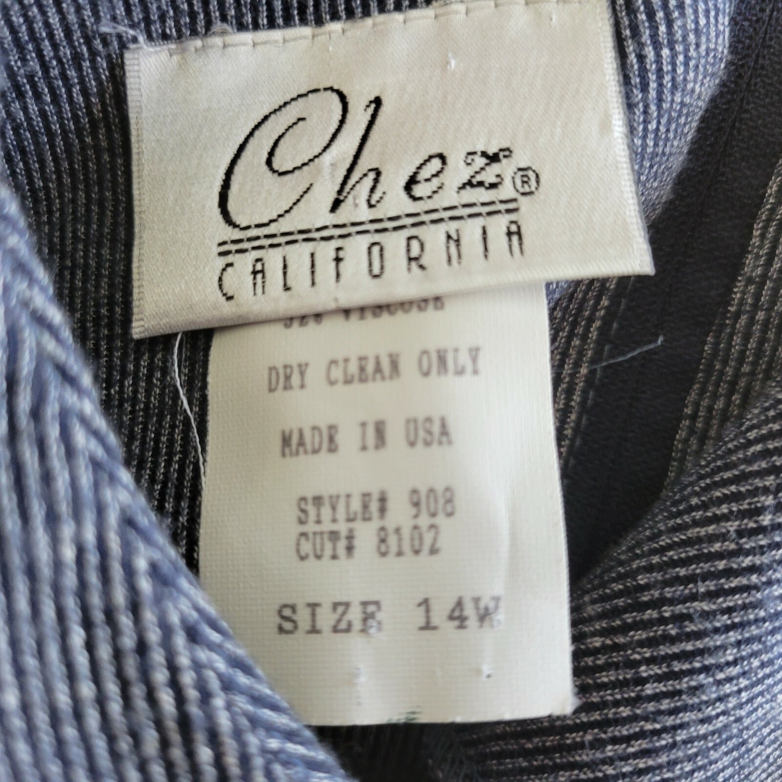 This Chez California tunic blouse is perfect for any casual occasion. The gray and blue pinstripe pattern adds a touch of style to the classic/fitted long sleeves and round neckline. The zip closure makes it easy to wear and the polyester blend material ensures it will last for many wears. This blouse is a size 14W and is a regular fit. It is ideal for all seasons, winter, summer, fall, and spring. The fabric type is knit and it is recommended to dry clean only.This blouse is a great addition to any wardrobe and is made in the United States.