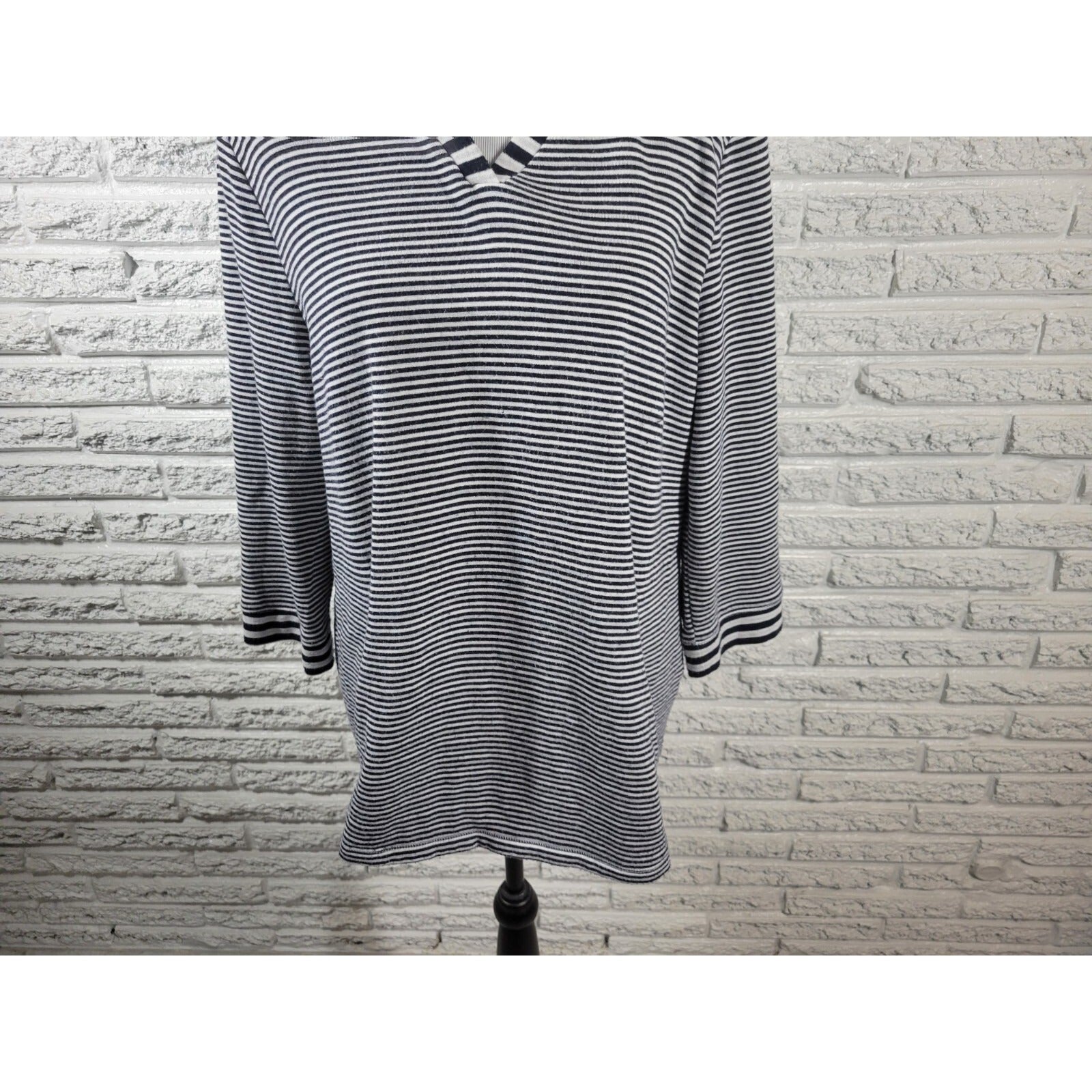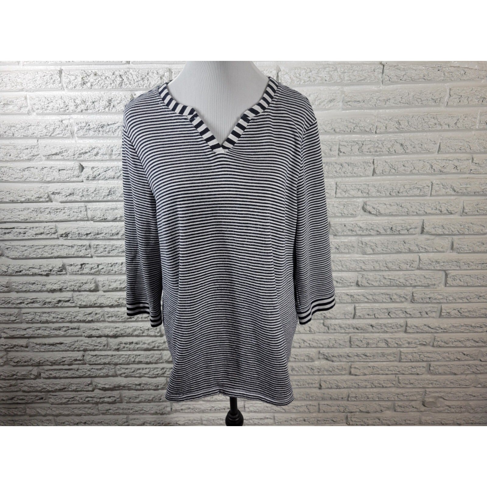 Chicos Weekends Womens Top XL Plus Knit 3/4 Sleeve Pockets Casual Black Stripe