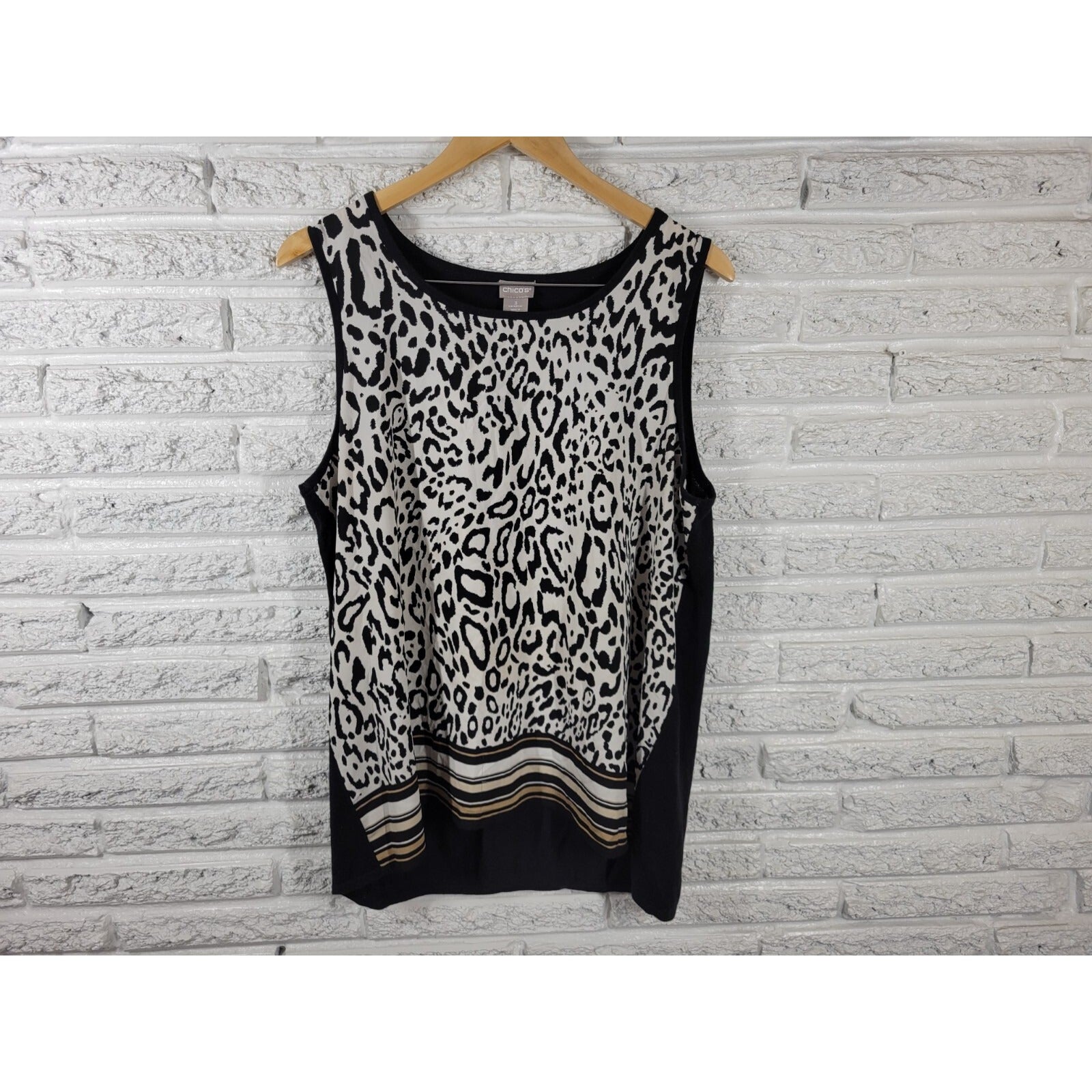 Chicos Women Top 3 Standard Extra Large Tank Black Animal Print Career Casual