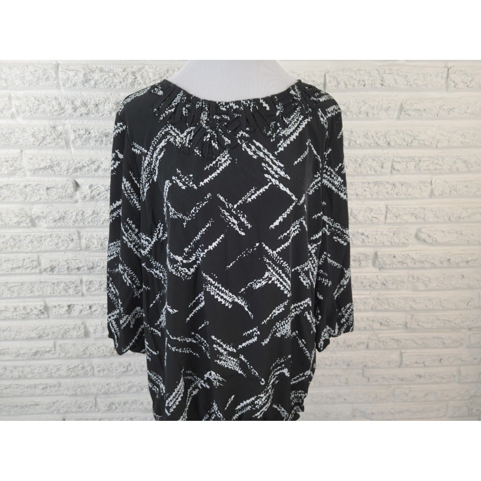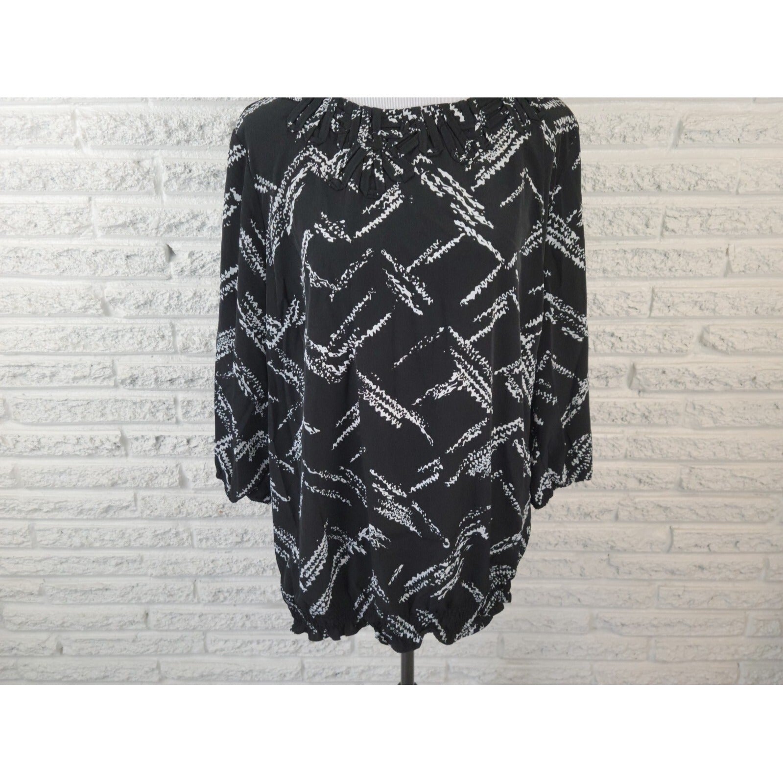 Chicos Women Top 3 Standard Extra Large XL 3/4 Sleeve Polyester Watercolor Black