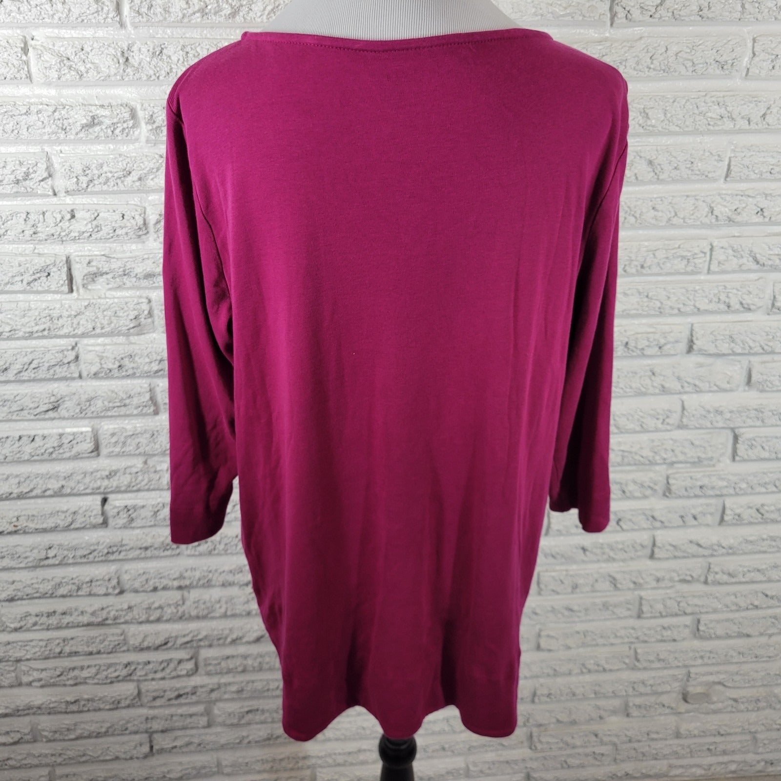 Chicos Women Top 3 Standard Extra Large XL 3/4 Sleeve Purple Cotton Comfy Casual