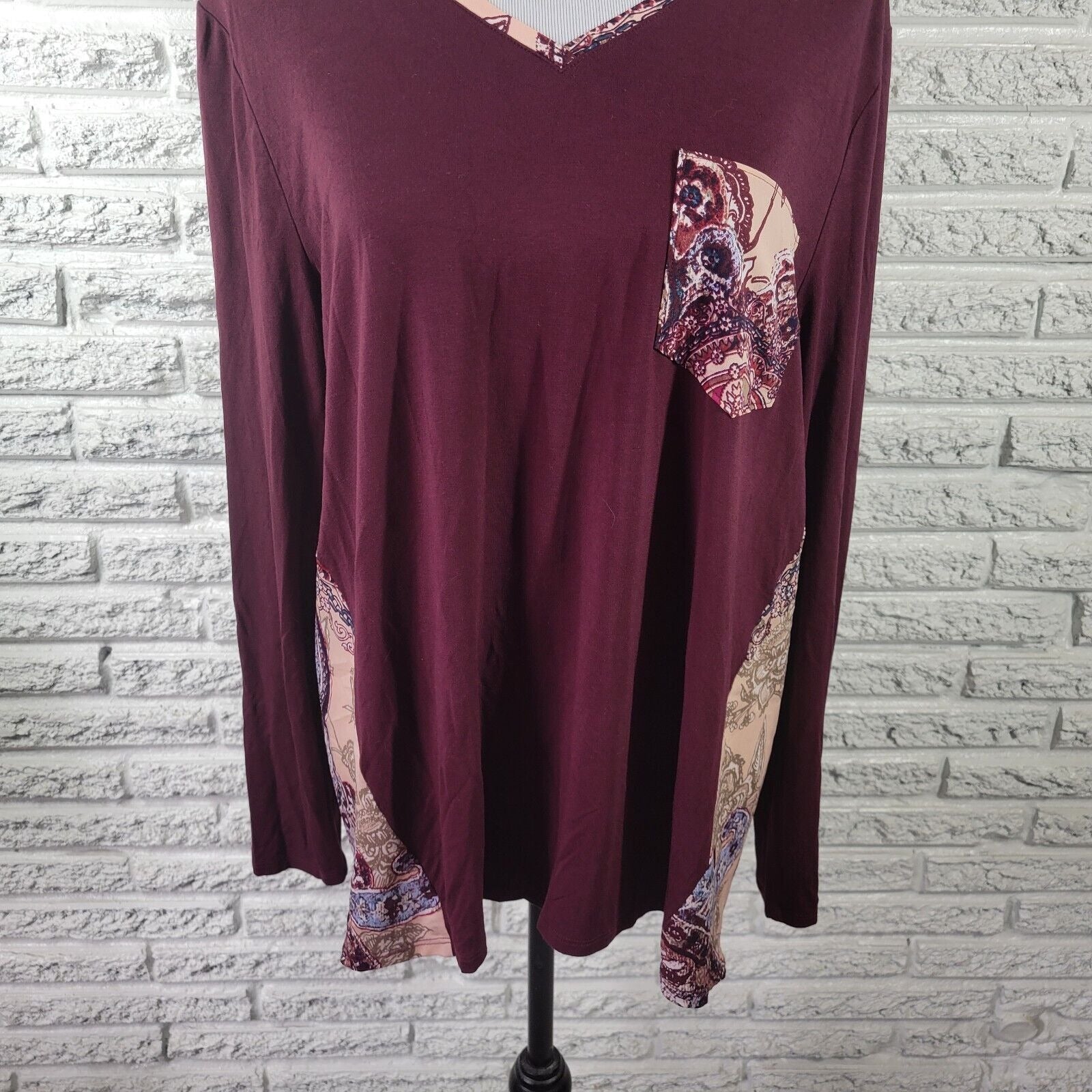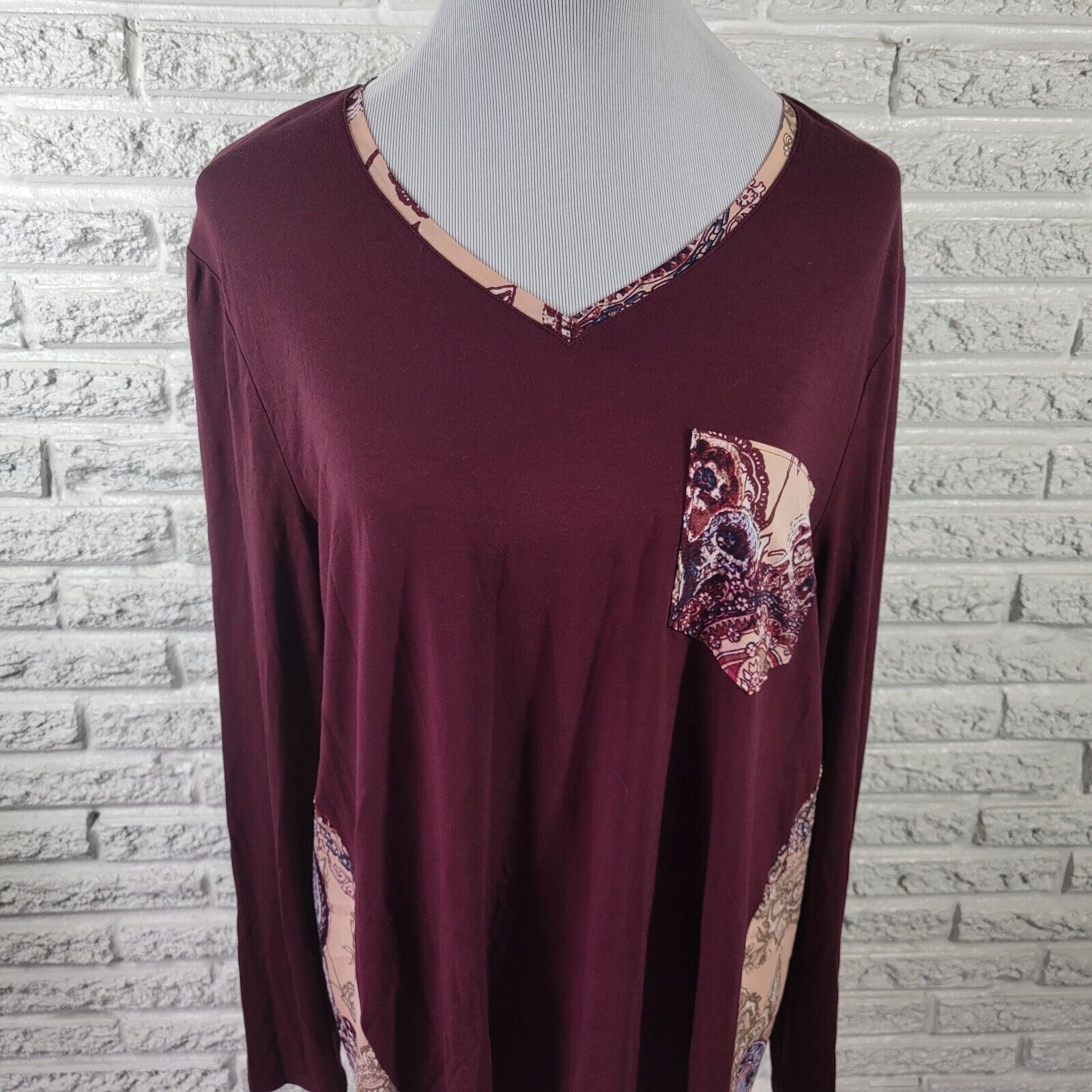 Chicos Women Top 3 Standard XL Tee Long Sleeve Pocket Purple Mandala Lightweight