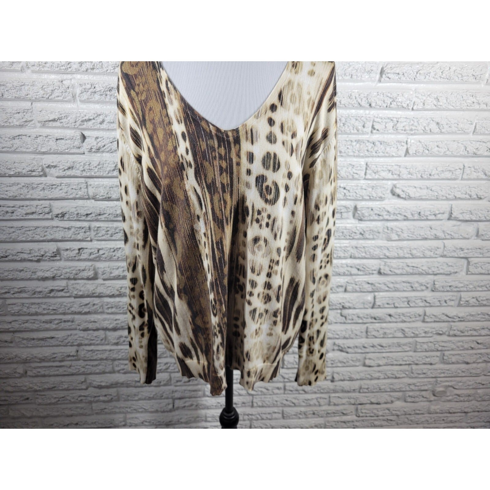 Chicos Womens Top 3 Standard Extra Large Long Sleeve Brown Watercolor Casual