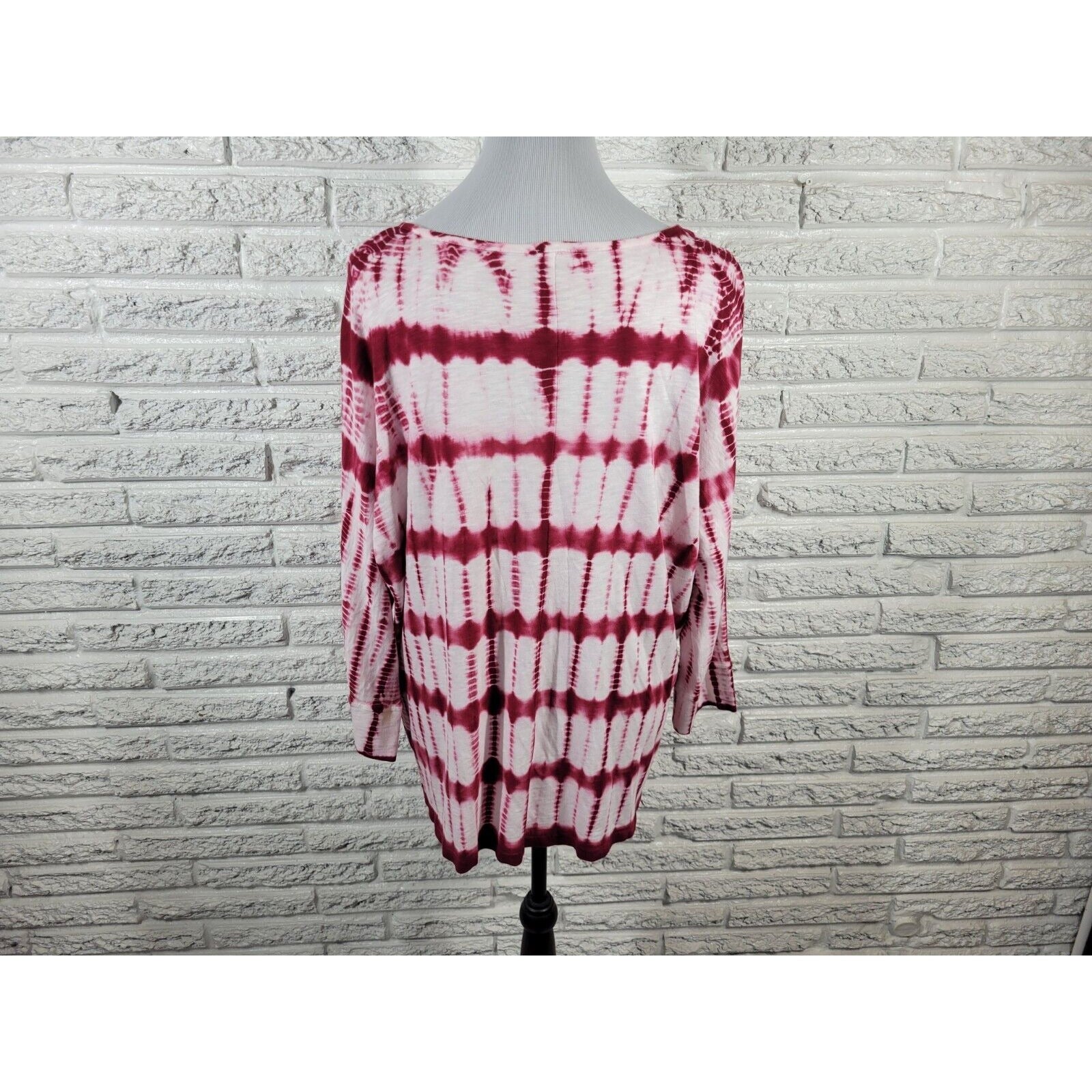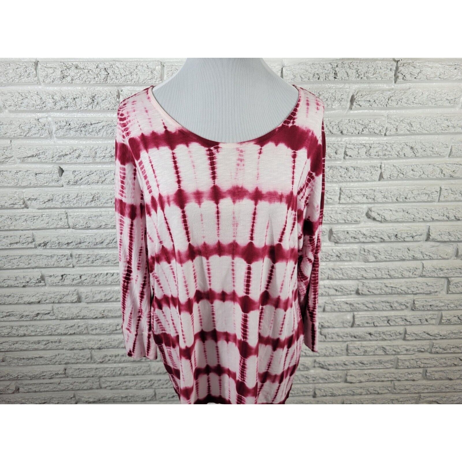 Chicos Womens Top 3 Standard Extra Large XL 3/4 Sleeve Pink Tie Dye Cotton Blend