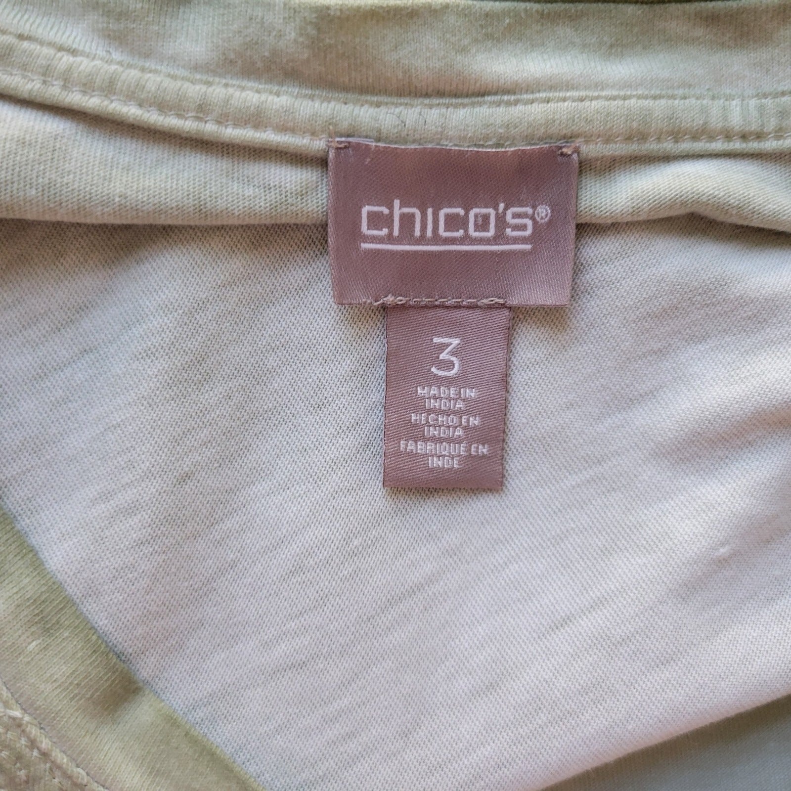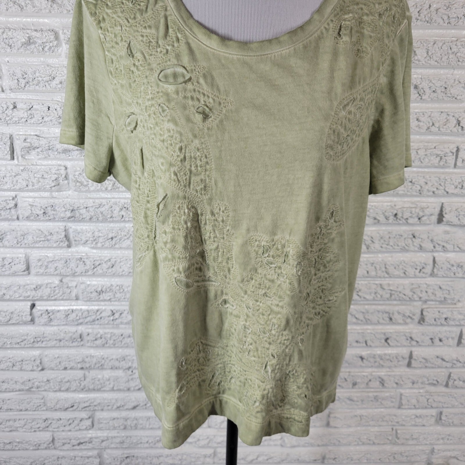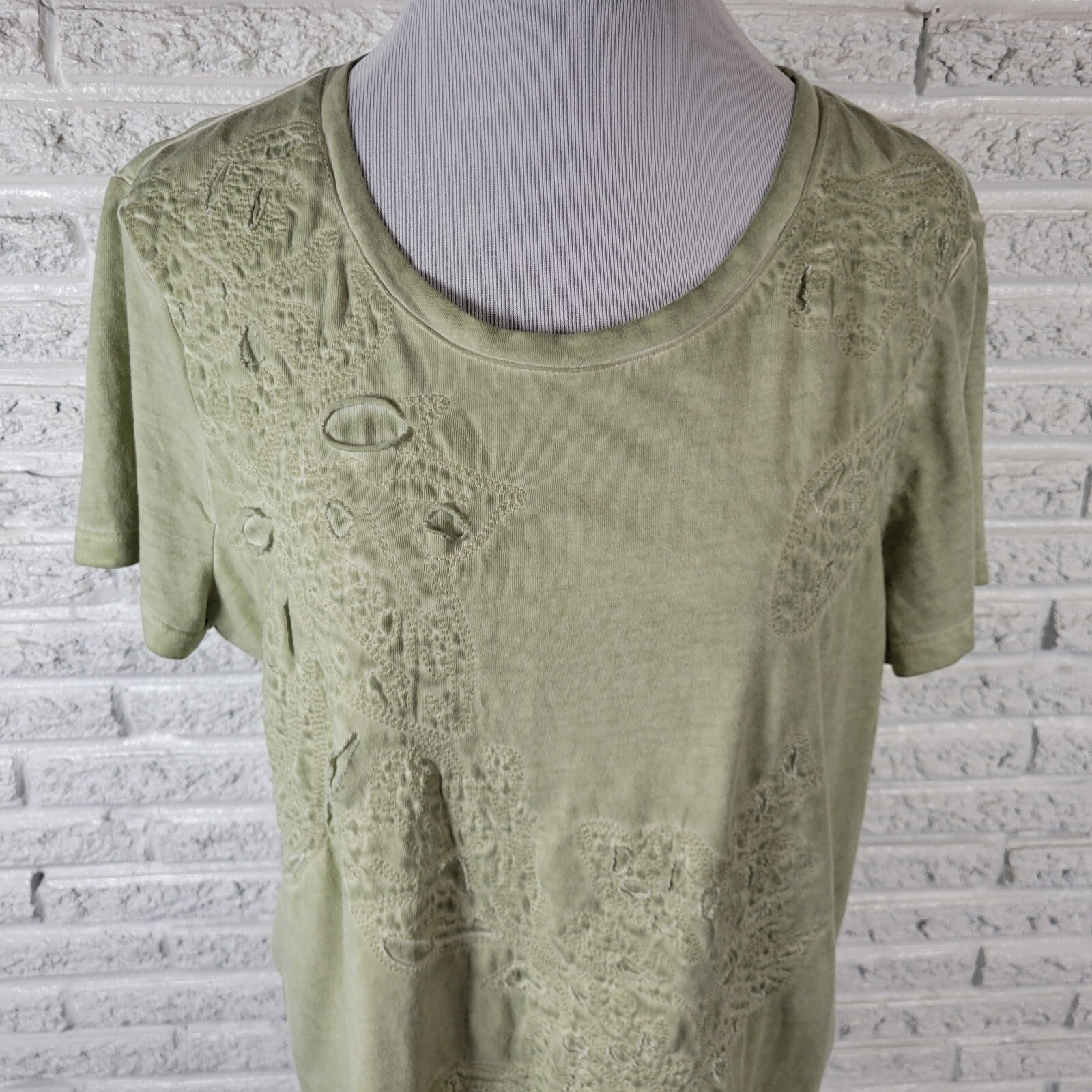 Chicos Womens Top 3 Standard XL Tee Short Sleeve Green Embroidered Comfy Casual