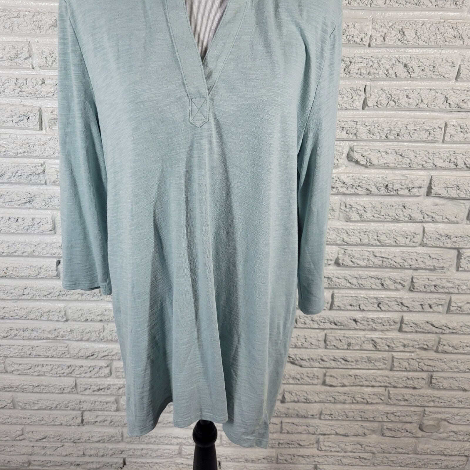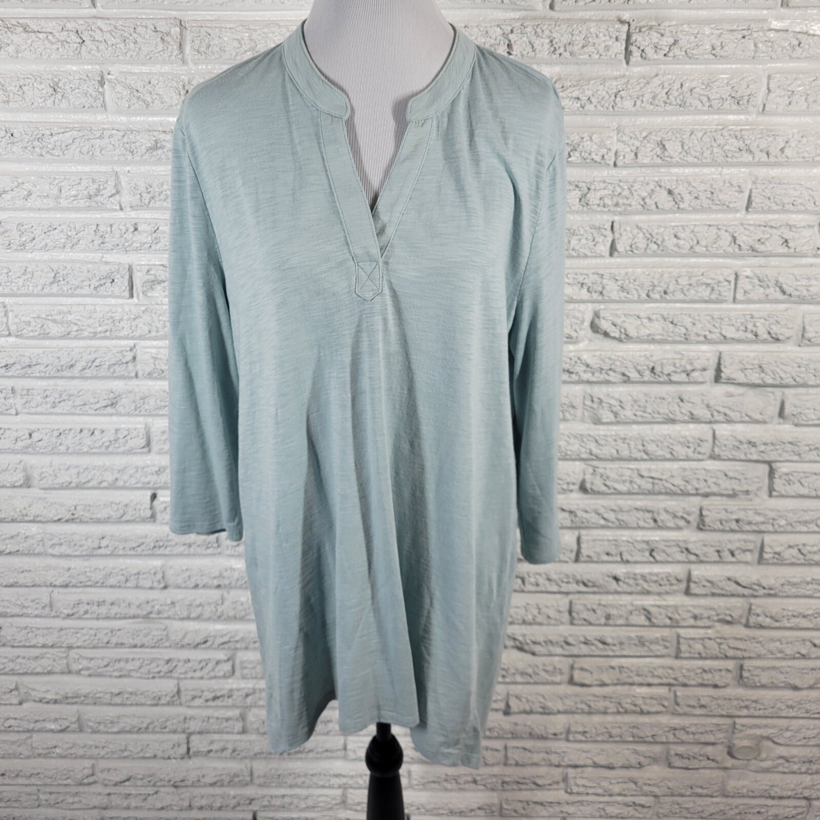 Chicos Womens Top 3 Standard XL Tunic 3/4 Sleeve Blue Lightweight Asymmetric