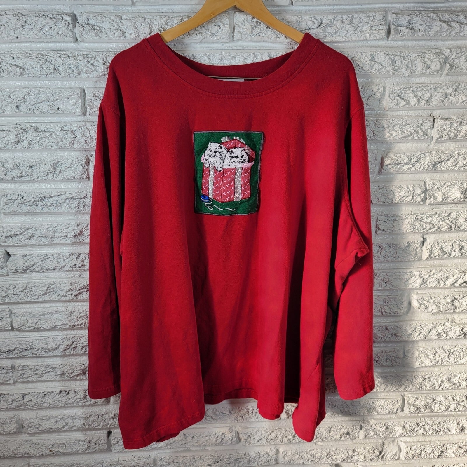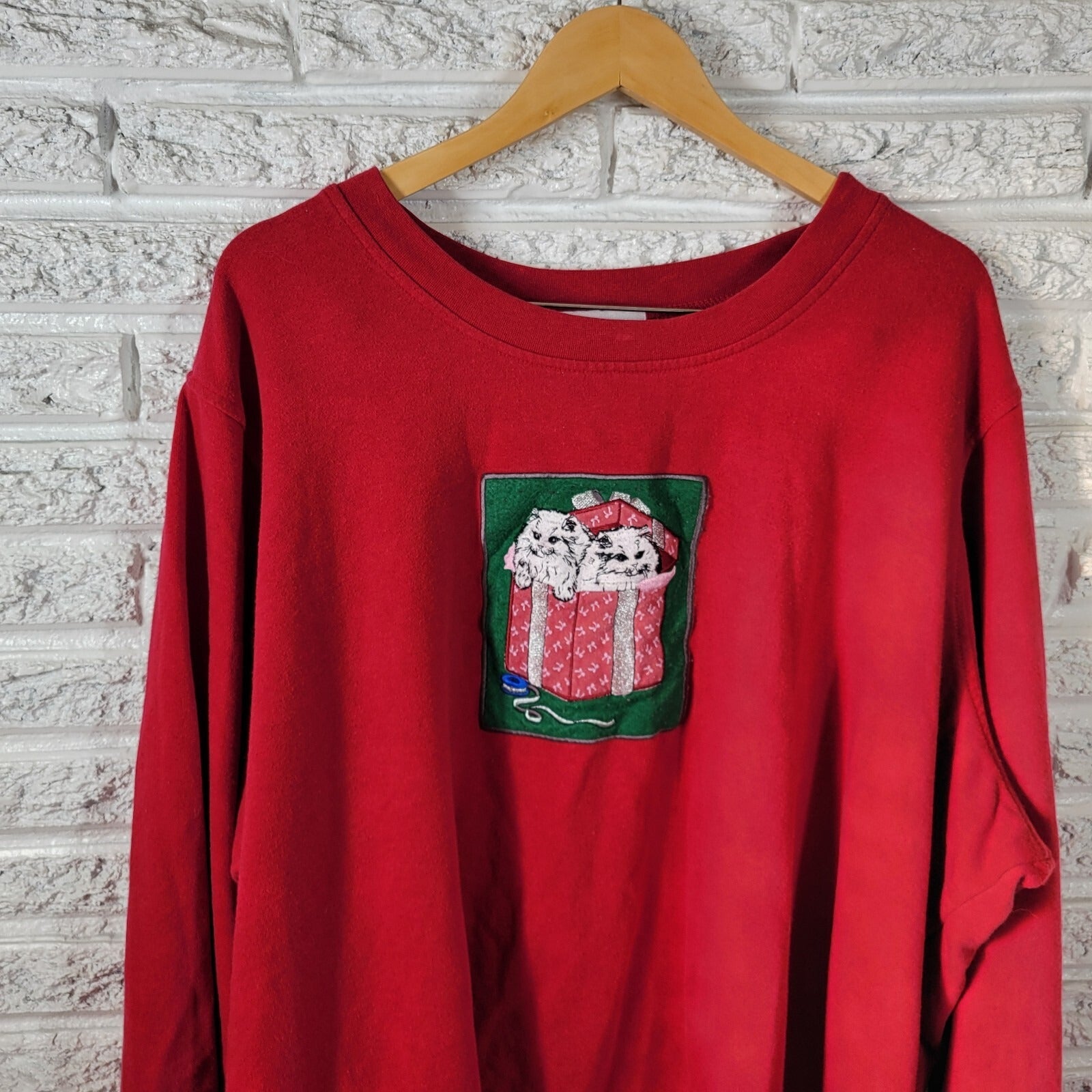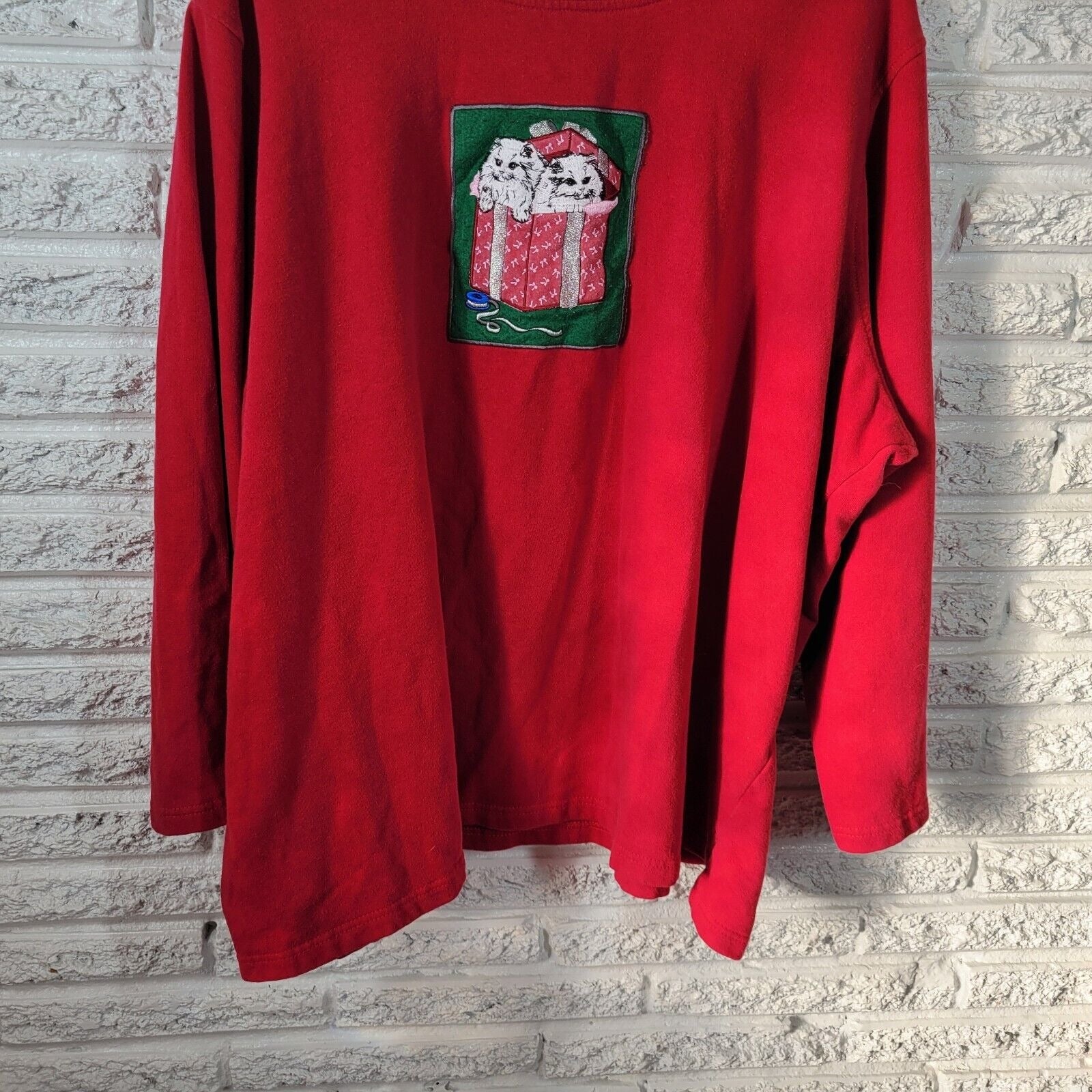 Christmas All American Comfort Women Sweatshirt 4X Plus Red Kittens Cats Holiday