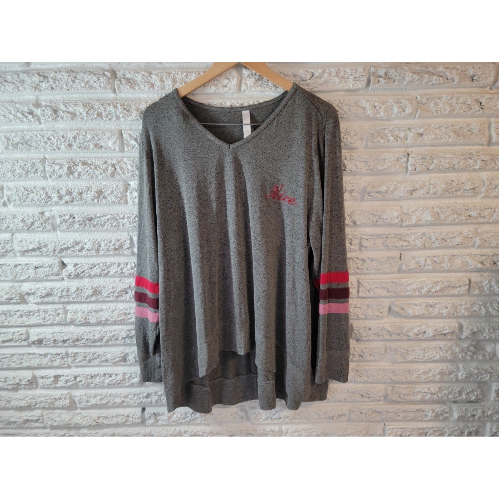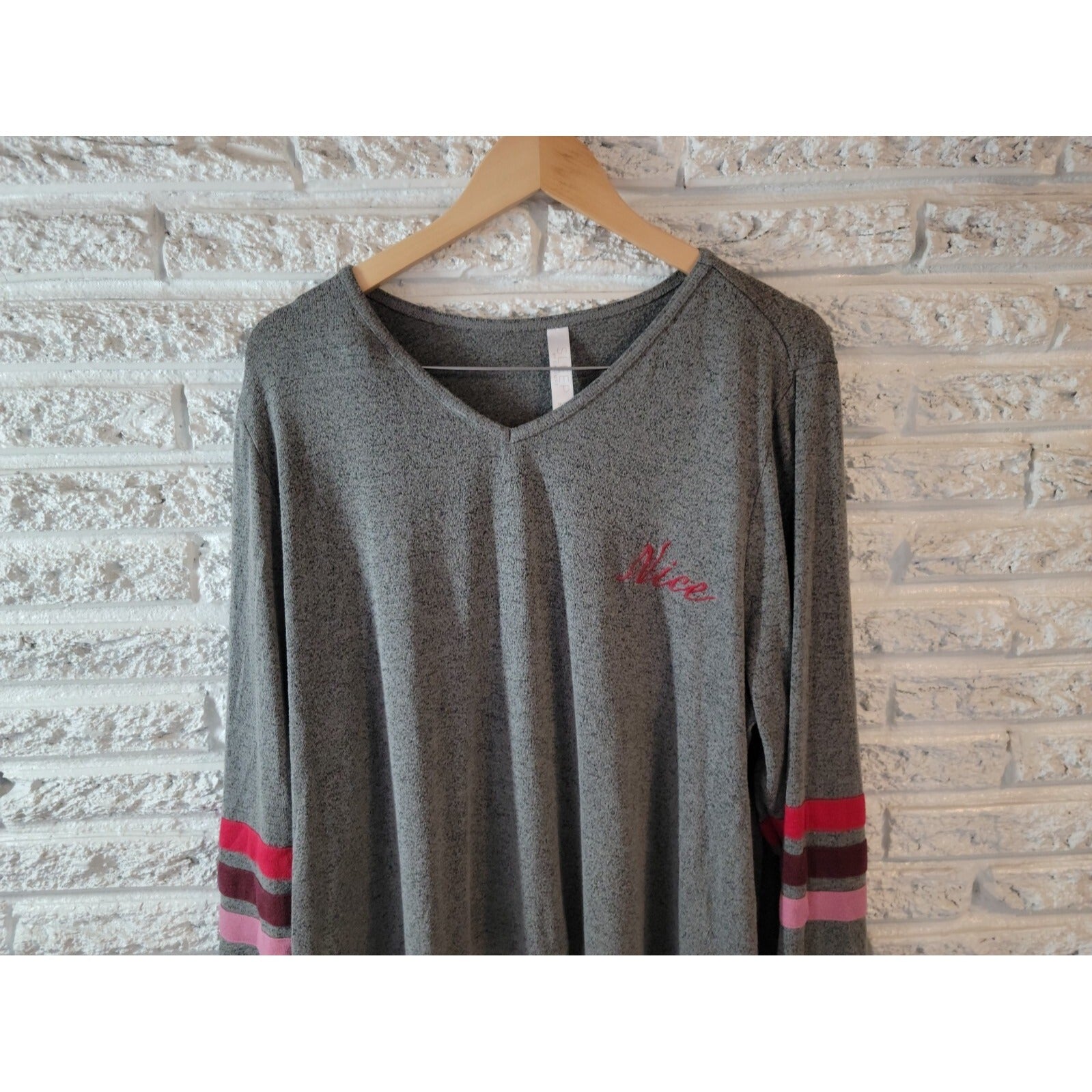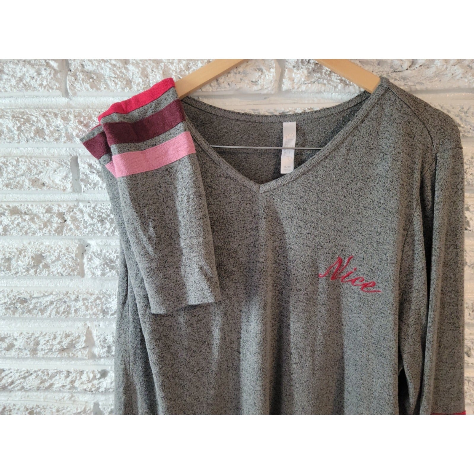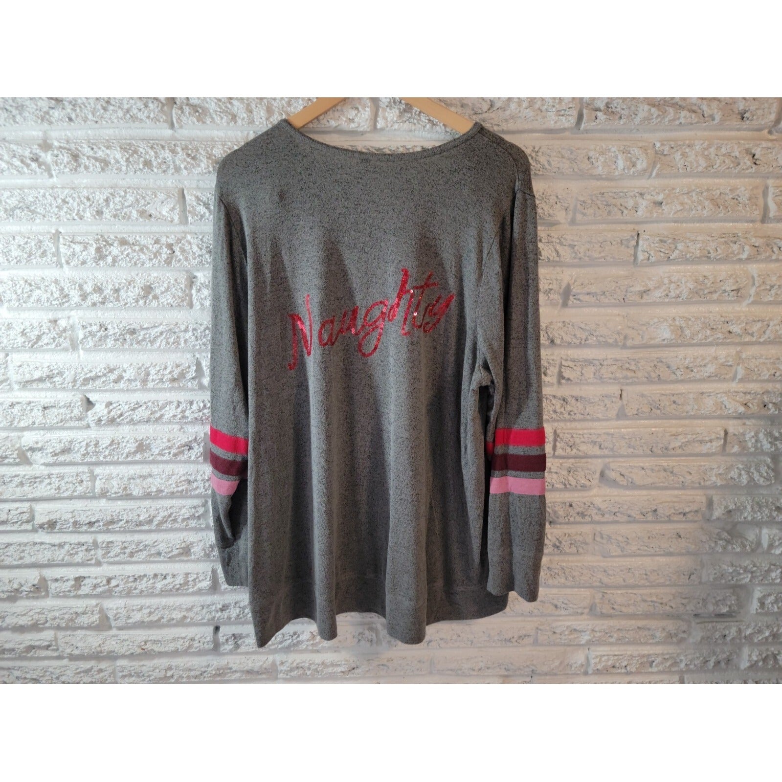 Get ready for the holiday season with this festive Christmas Cacique women's pajama top. The gray long-sleeved top is made with a comfortable blend of polyester, spandex, and viscose, while the fabric type is rayon. The pajama top features a fun and playful design with sequins and a naughty/nice rating, making it perfect for Christmas morning or any night during the holiday season.   The top is available in size 18/20 and is part of the plus size type. Whether you're looking for a comfortable and stylish top for yourself or a gift for a loved one, this Christmas Cacique pajama top is sure to impress.