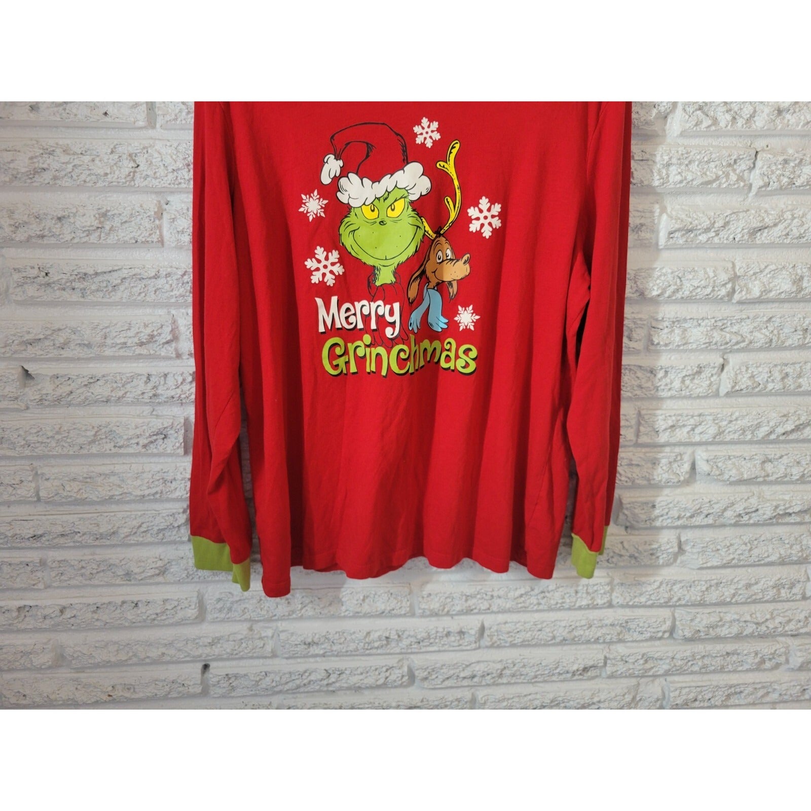 Christmas Dr Seuss Grinch Women Top XL 16 18 Long Sleeve Pajama Red Cotton Blend