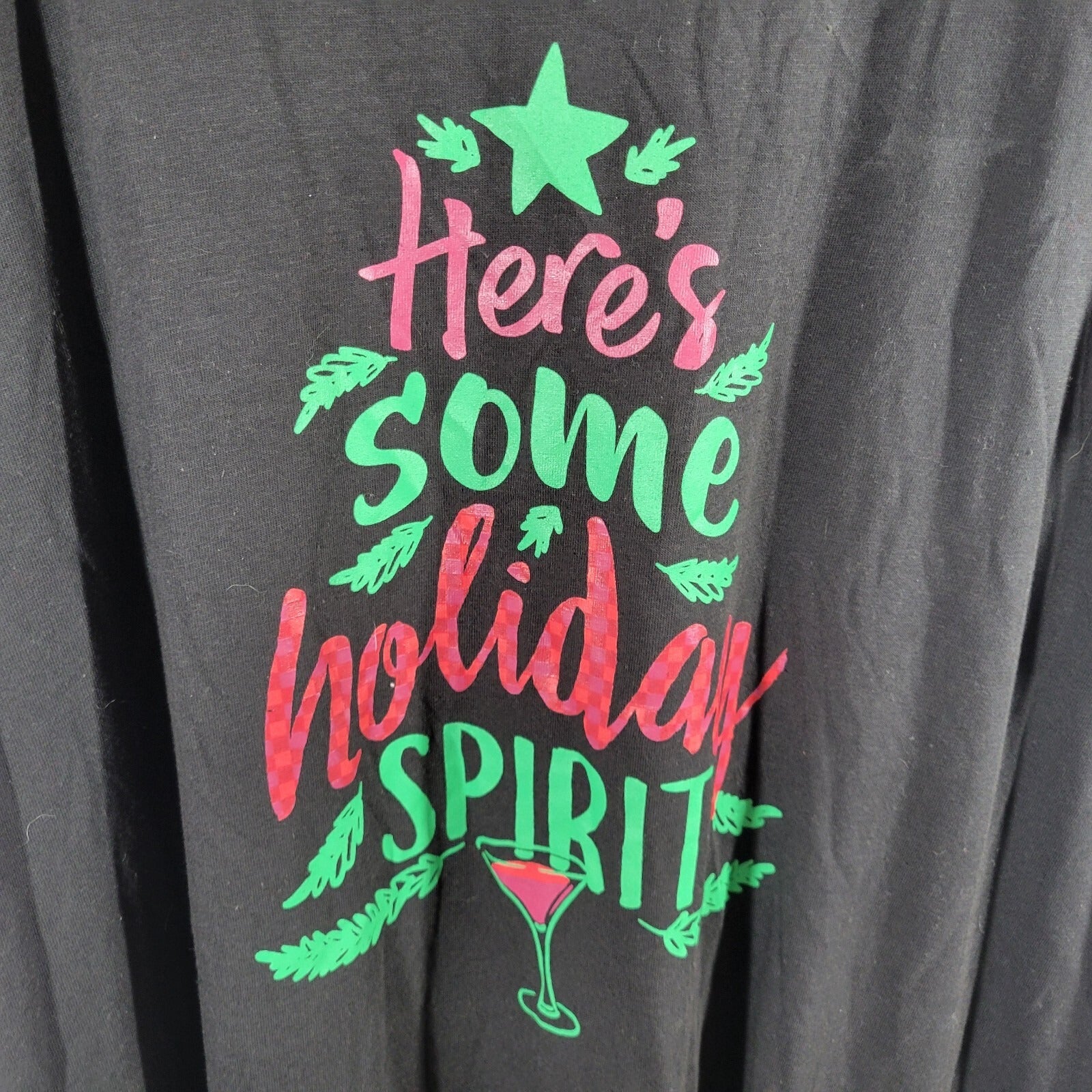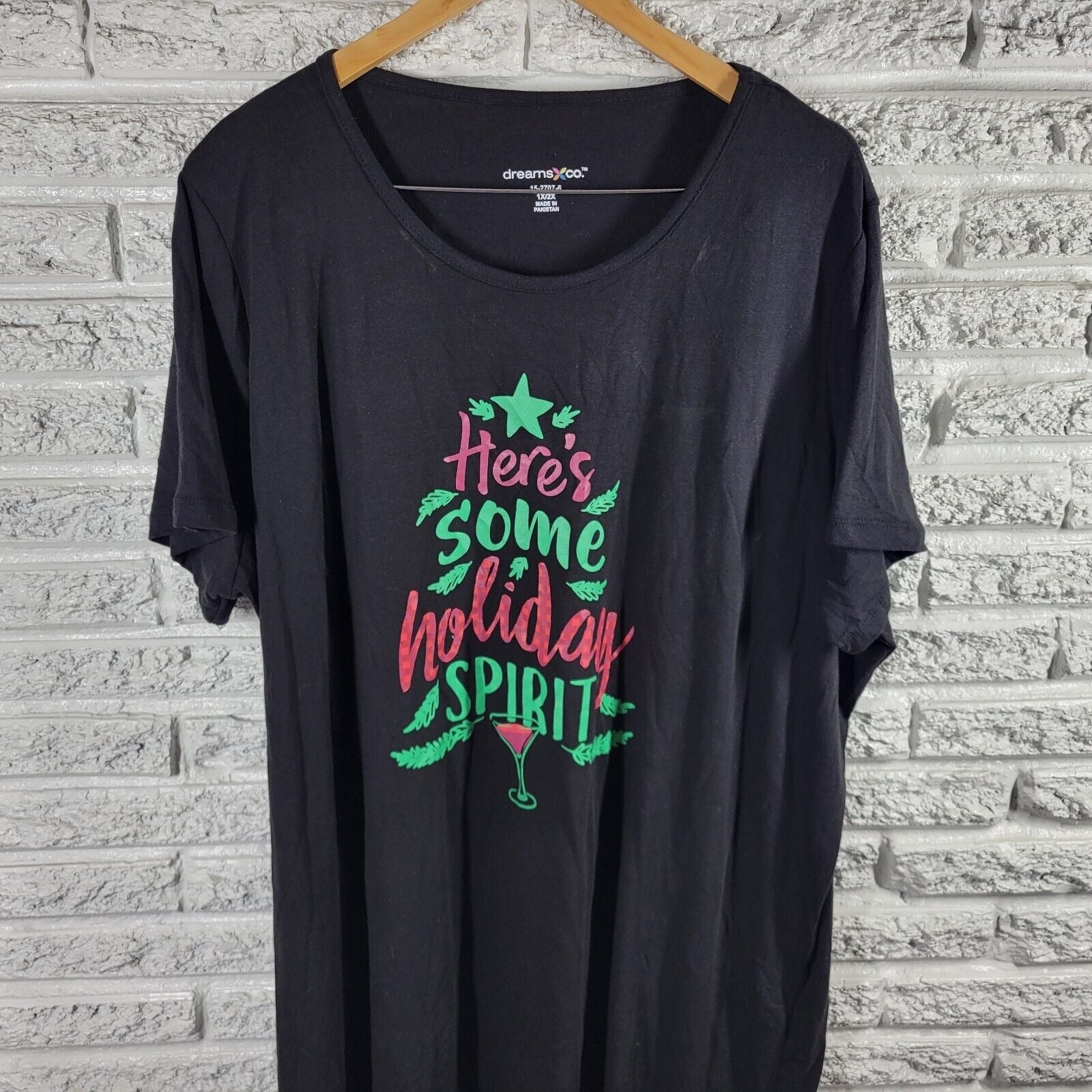 Christmas Dreams Co Women Nightgown 1X 2X Plus Holiday Spirit Short Sleeve Black