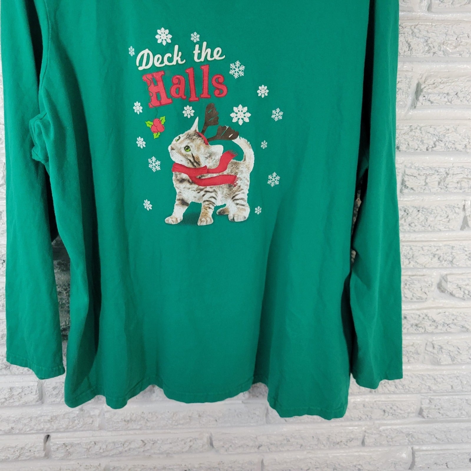 Christmas Holiday Editions Womens Top 3X Plus Tee Cat Reindeer Deck the Halls