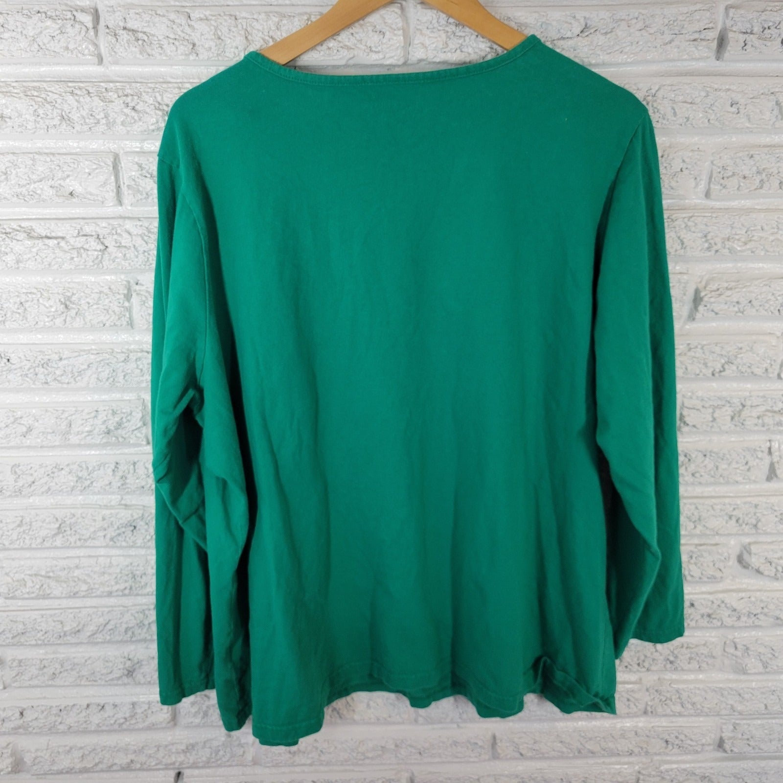 The Christmas Holiday Editions Women's Top 3X Plus Tee is a festive and comfortable addition to your wardrobe. Made from 100% cotton jersey fabric, this pullover tee features long casual sleeves, a round neckline, and playful glitter accents. The green tee with a Christmas theme is perfect for travel or casual occasions, and is machine washable for easy care. The stretchy material ensures a regular fit for year-round wear, making it a versatile and stylish choice for any season.