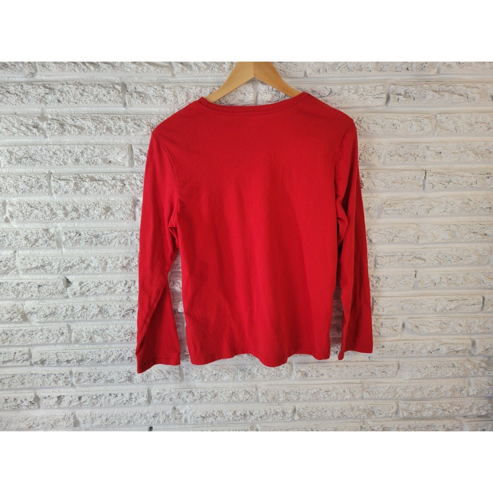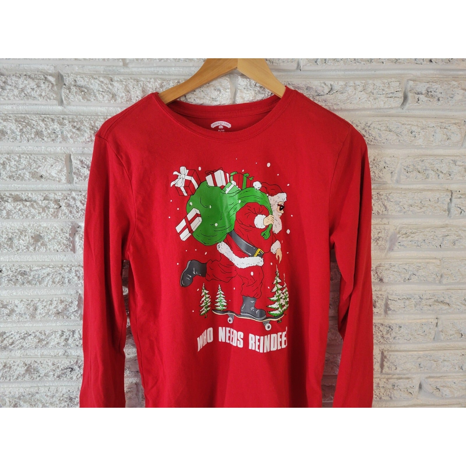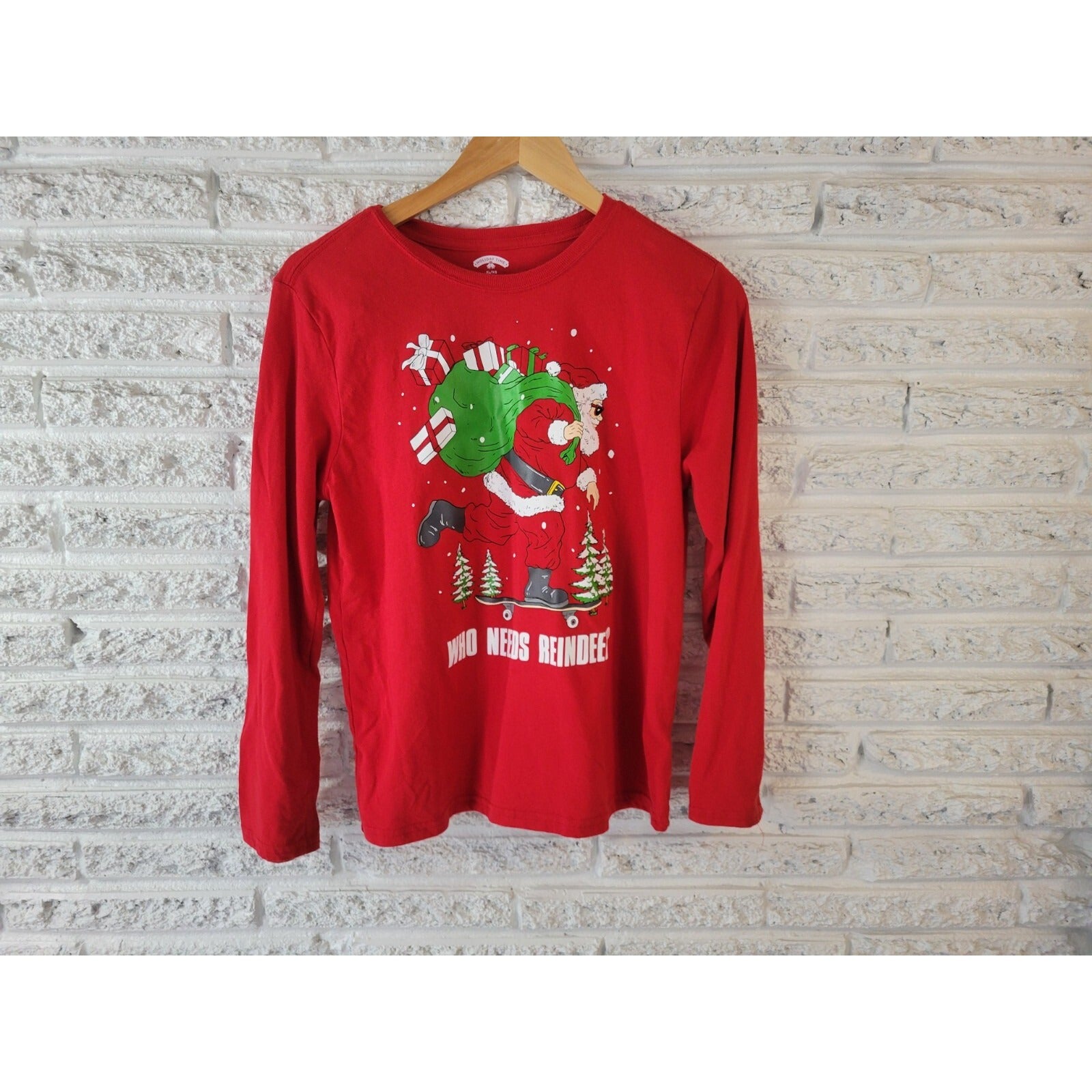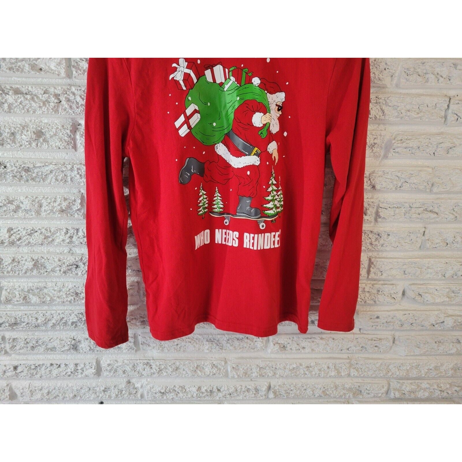 Christmas Holiday Time Womens Top Extra Large XL Tee Long Sleeve Red Santa Claus