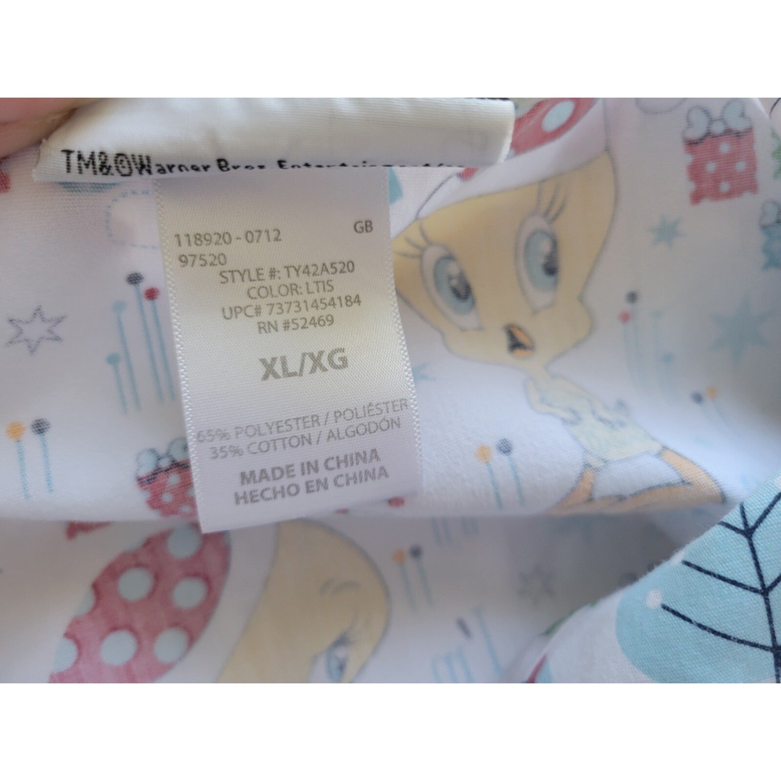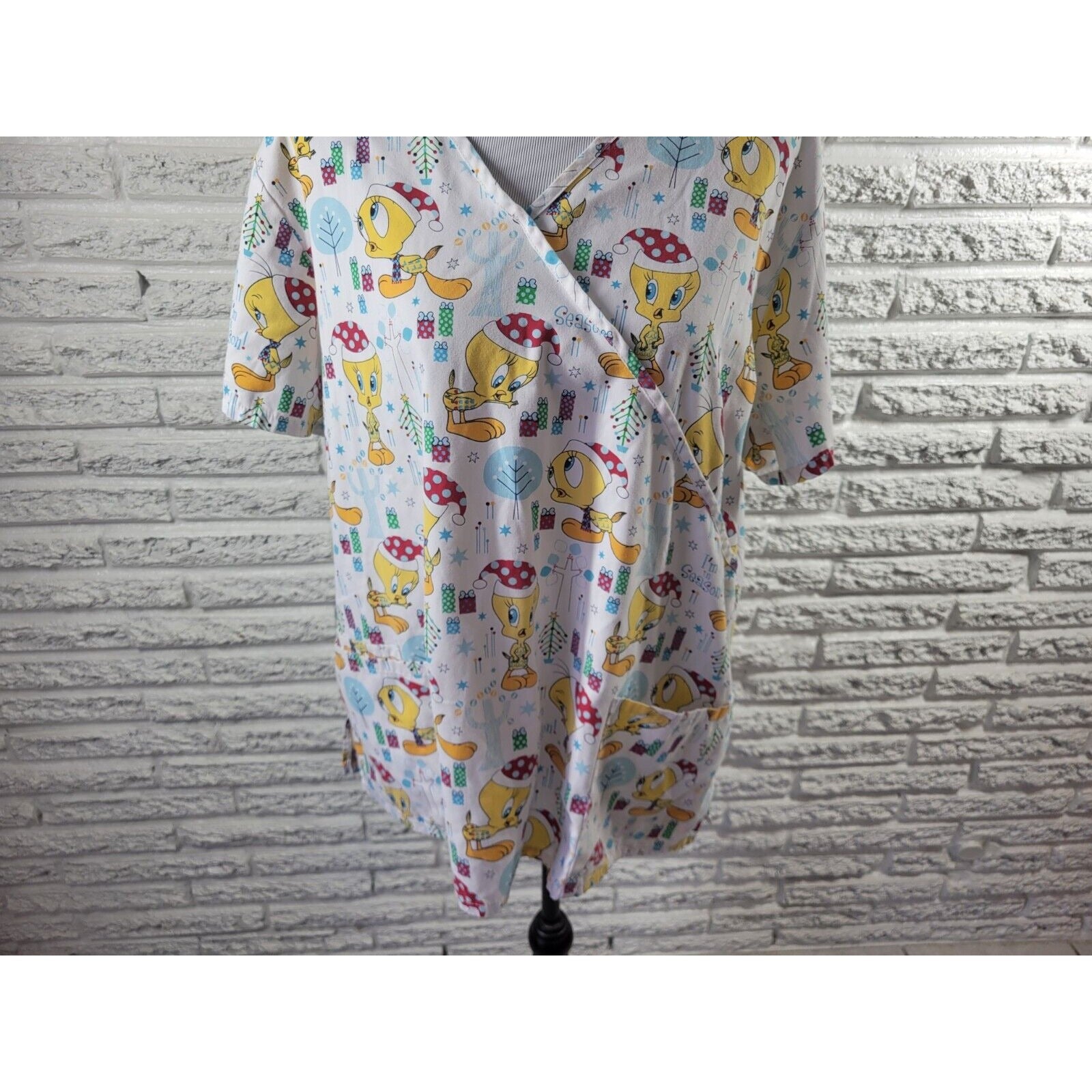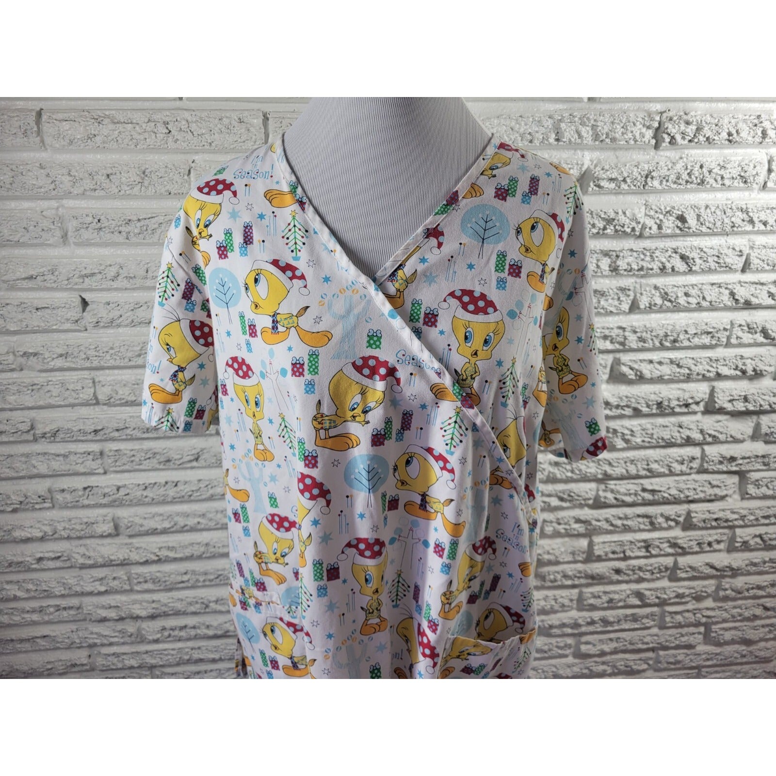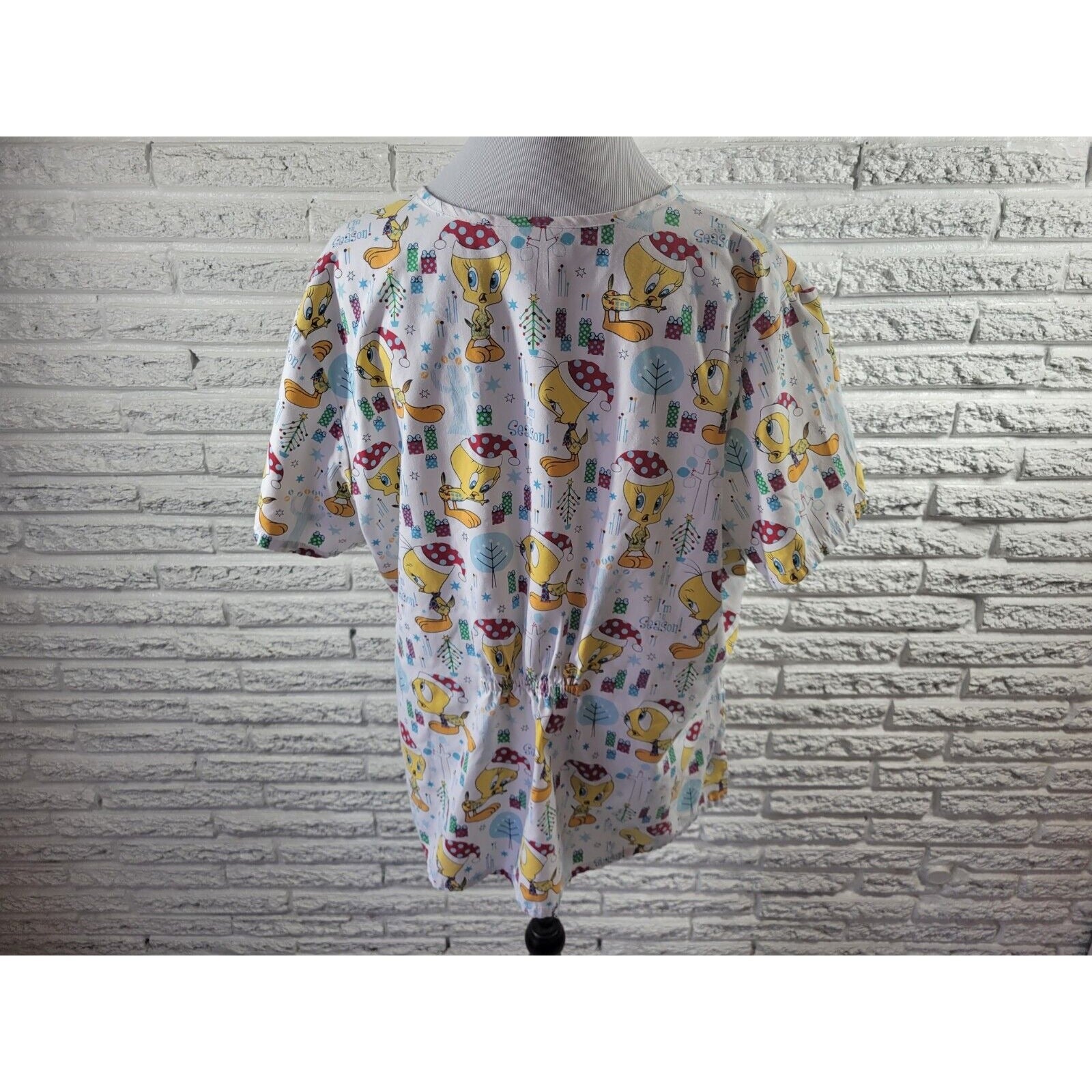 Christmas Looney Tunes Tweety Bird Unisex Scrub Top Extra Large XL Pockets