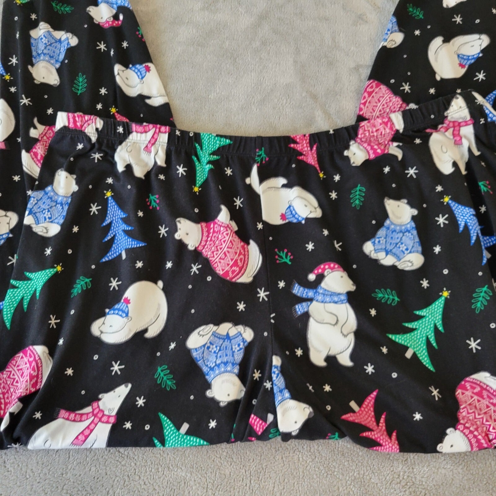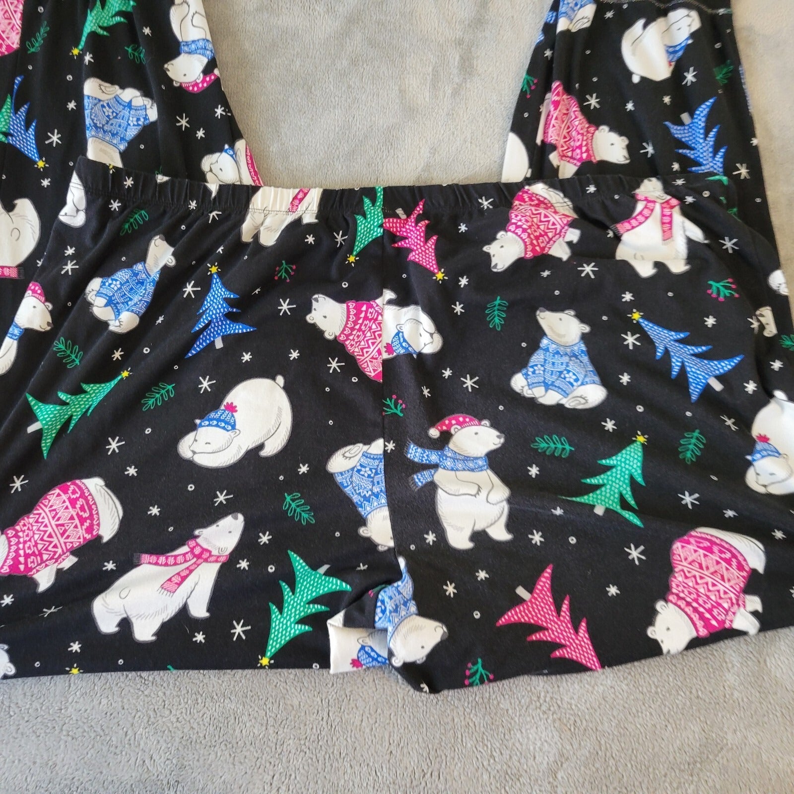 Christmas Secret Treasures Womens Pajama Pants 2X Polar Bears Lightweight Black