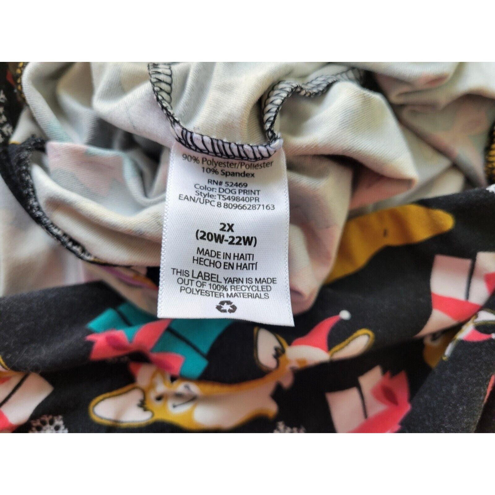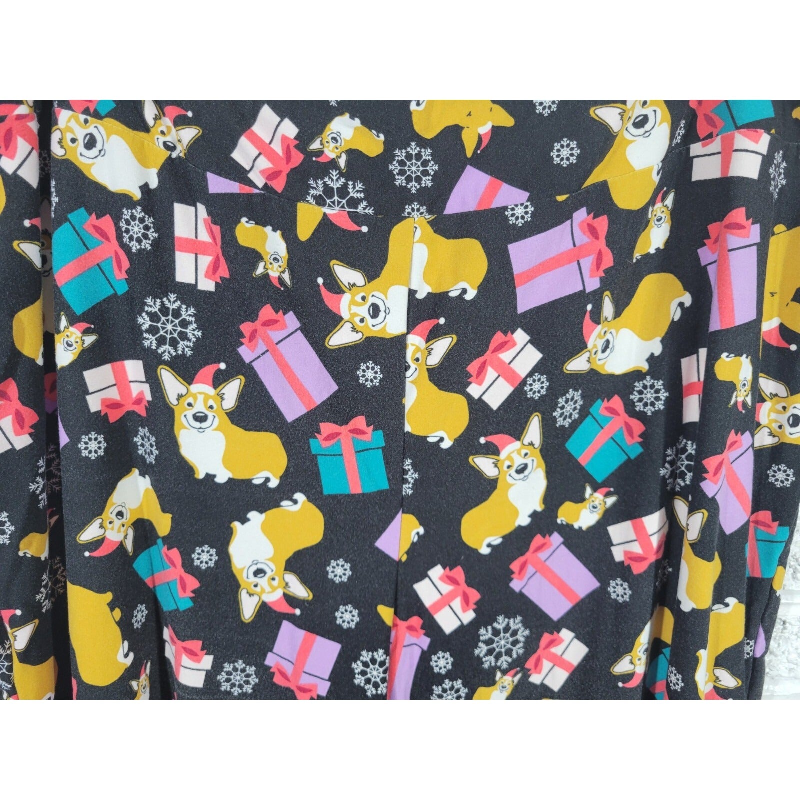 Christmas Terra Sky Womens Pants 2X Plus Pajama Corgi Dog Black Loungewear