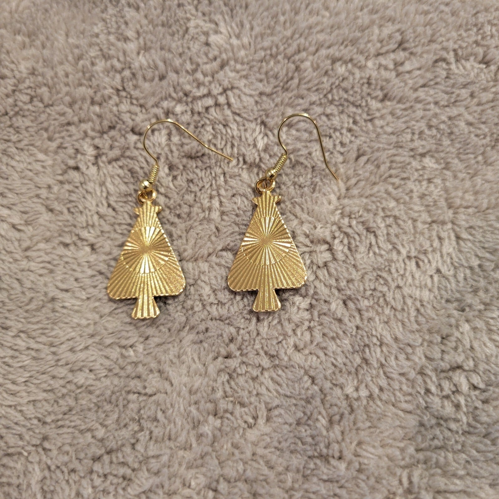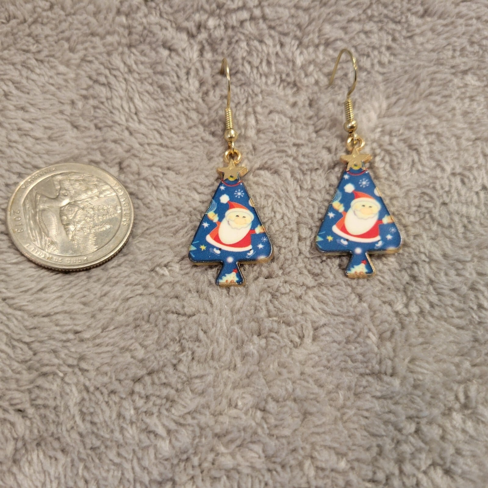 Christmas Trees #5 Womens Earrings One Pair Blue Santa Hanging Gold Tone Holiday