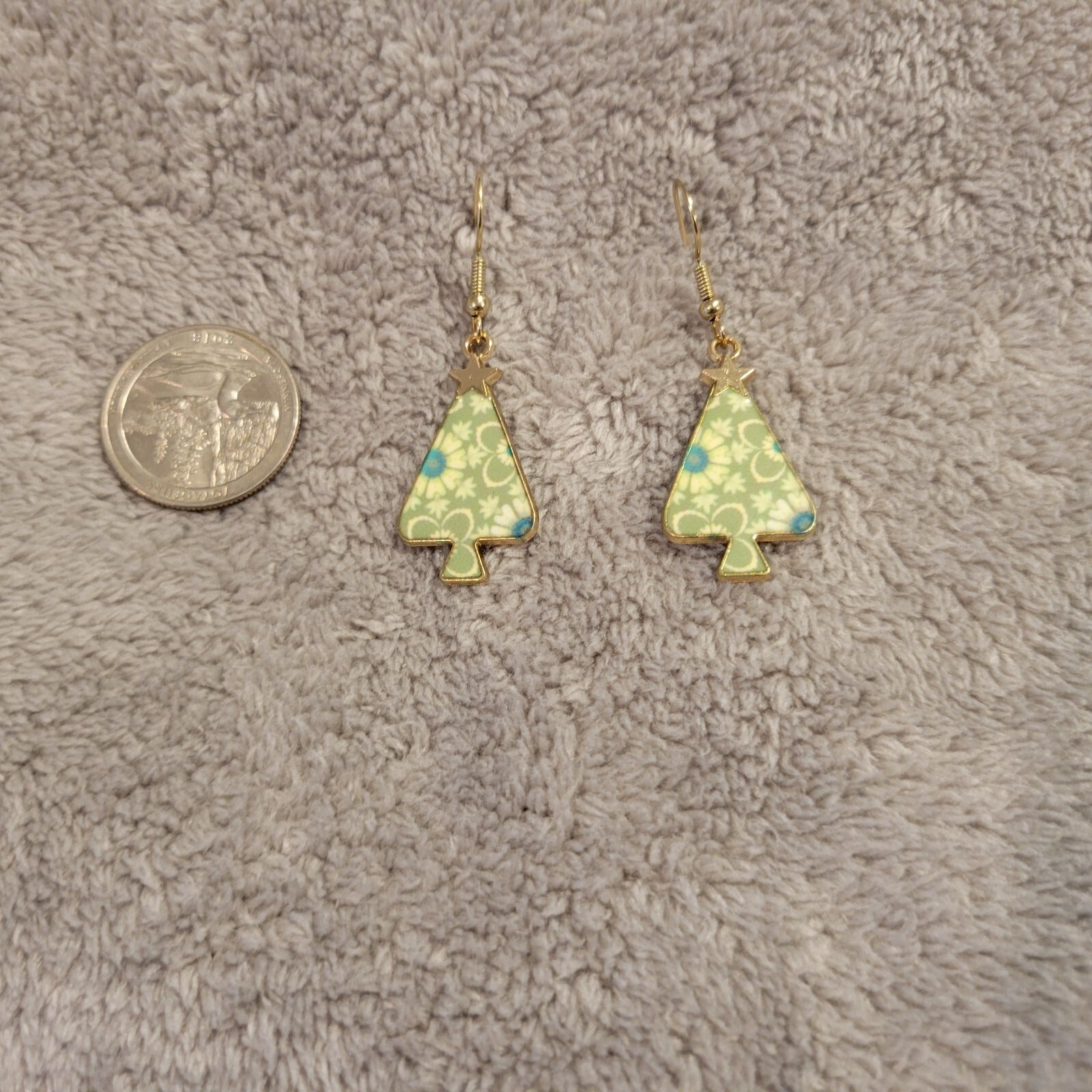 Christmas Trees #8 Womens Earrings One Pair Green Floral Hanging Holiday