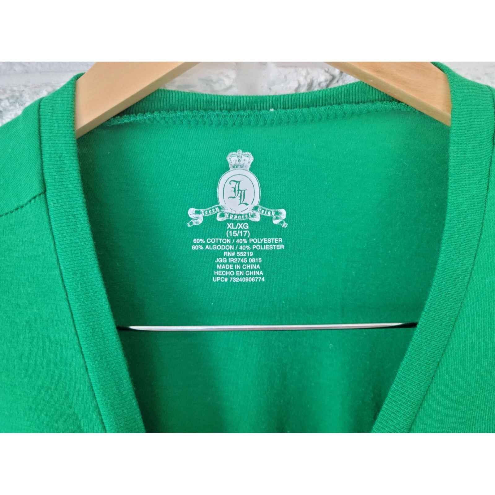 Get into the Christmas spirit with this festive Terry Leigh T-Shirt! Featuring a green cotton blend jersey fabric with a pullover crew neck and long sleeves, this shirt is perfect for any casual occasion. The shirt is machine washable and has a regular fit, making it comfortable and easy to wear. The shirt also features a bulldog elfie selfie design, adding a touch of fun to your Christmas wardrobe. With its stretch and all seasons features, this shirt can be worn in any season and is available in size XL. Add this basic style shirt to your collection and show off your holiday spirit!