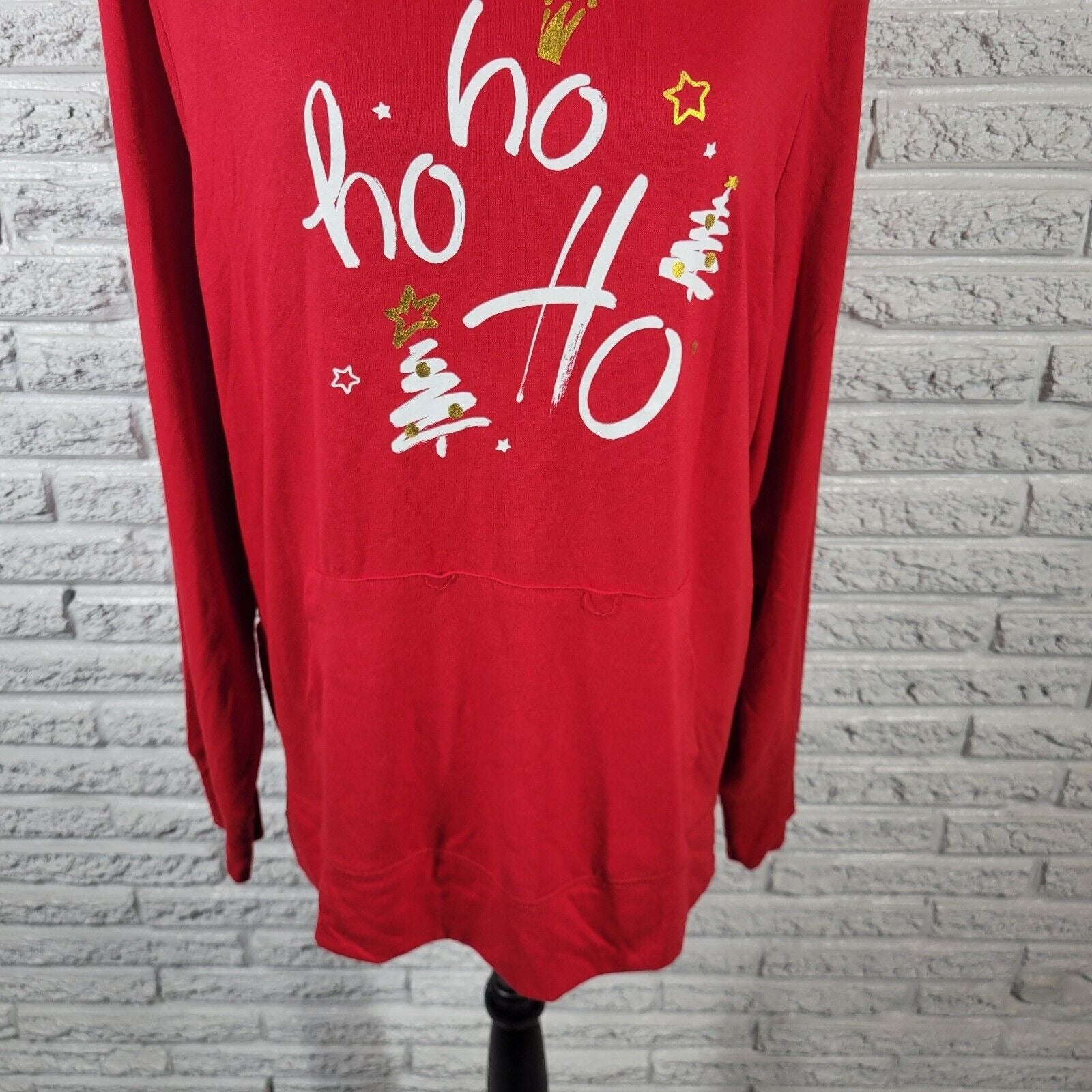 Christmas Women Top XXL 20 Plus Tee Long Sleeve Red Ho Ho Ho Holiday Lightweight