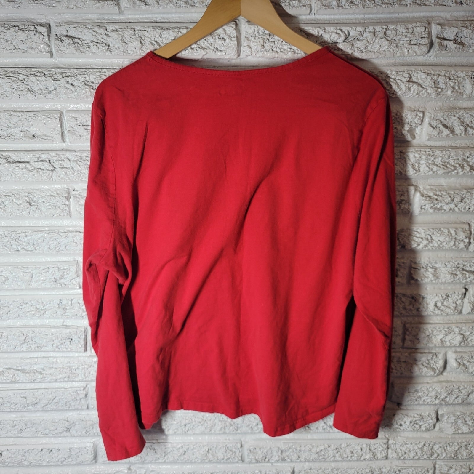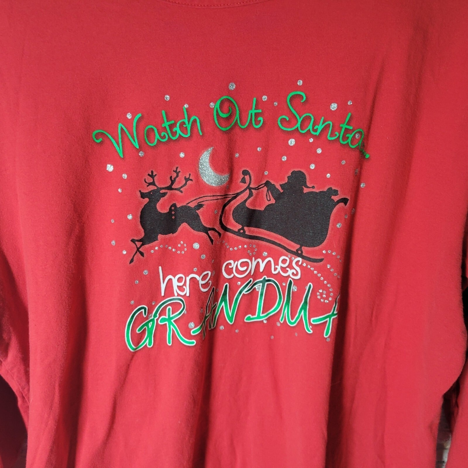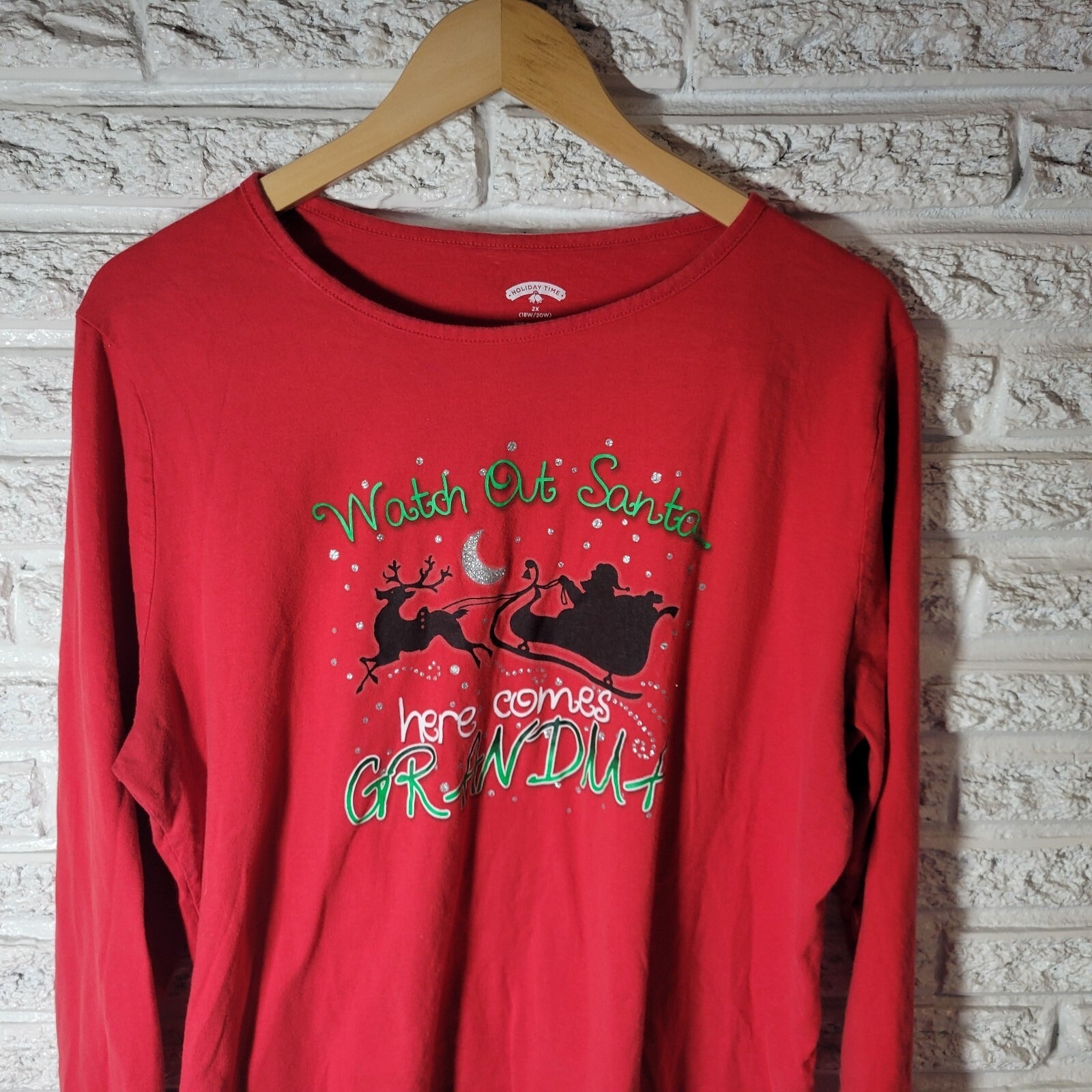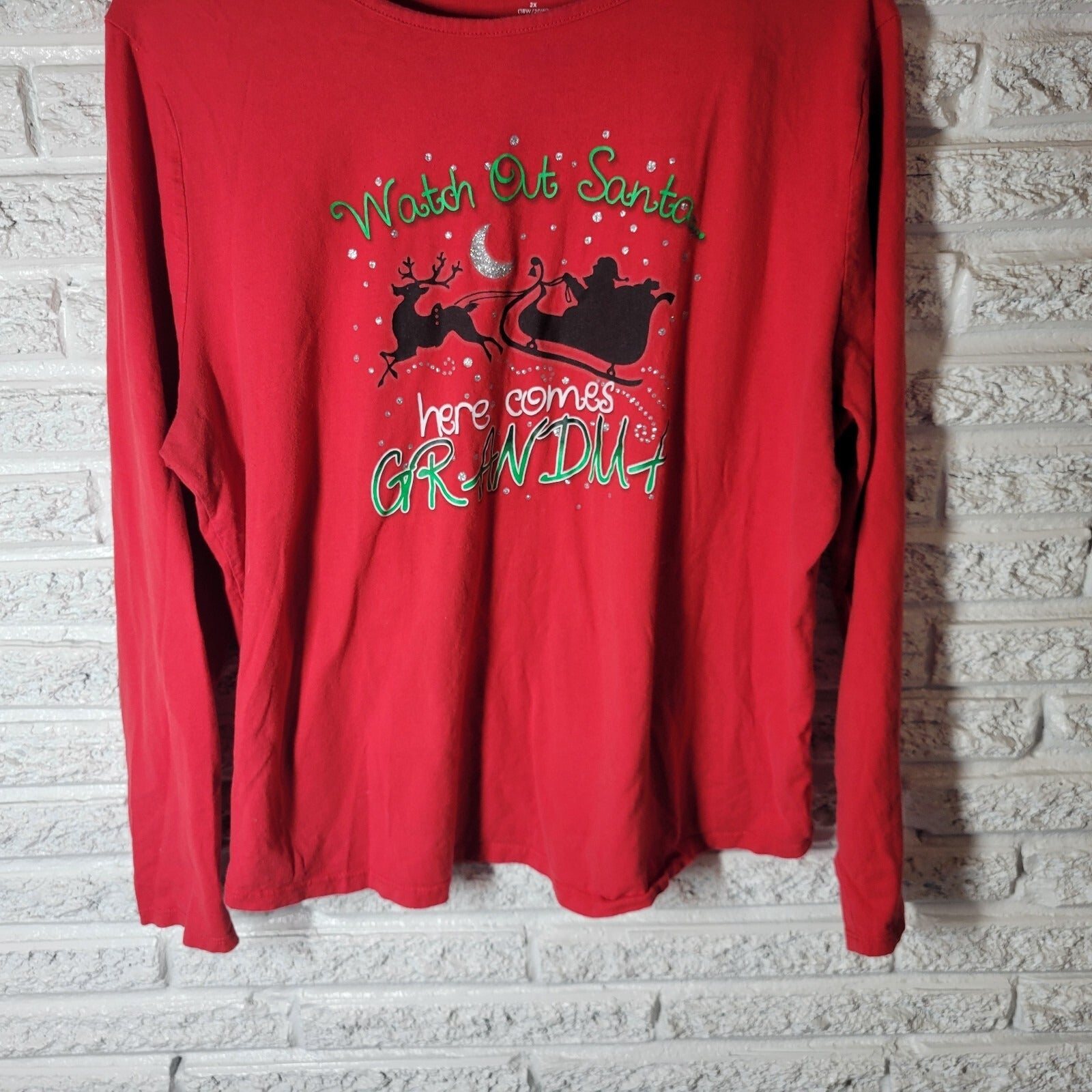 Christmas Womens Top 2X Plus Tee Long Sleeve Santa Here Comes Grandma Red Cotton