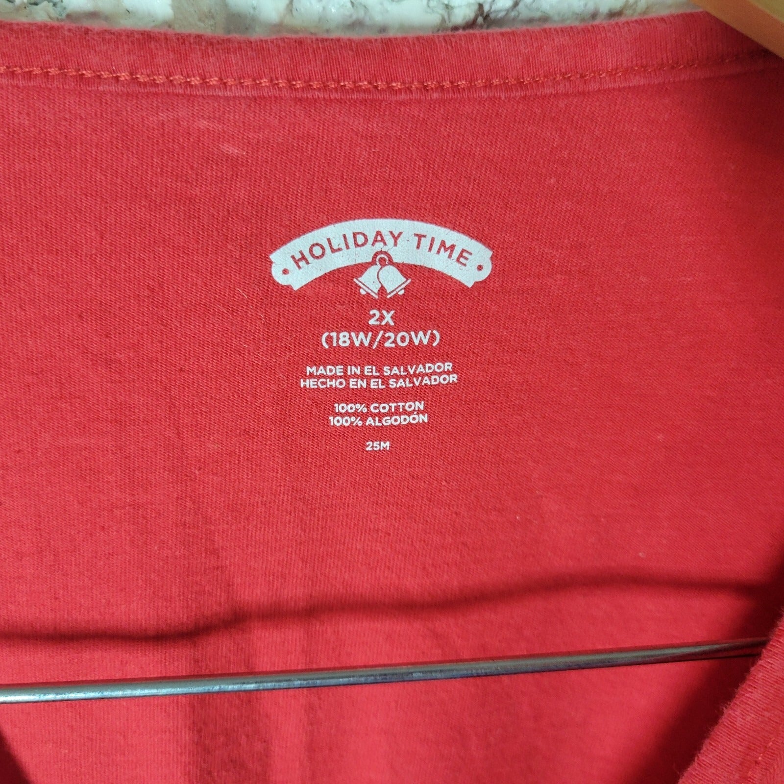 This Christmas Women's Top in 2X Plus size is a festive red long sleeve tee featuring Santa Claus with a personalized touch of "Grandma" here. Made from 100% cotton jersey fabric, it offers a comfortable and stretchy fit for all seasons. The pullover closure and crew neck neckline make it easy to wear for casual or travel occasions, while the basic style and Christmas theme add a touch of holiday cheer to your wardrobe. Ideal for winter, summer, fall, or spring, this machine washable top by HOLIDAY TIME is a perfect addition for any Christmas-loving woman.