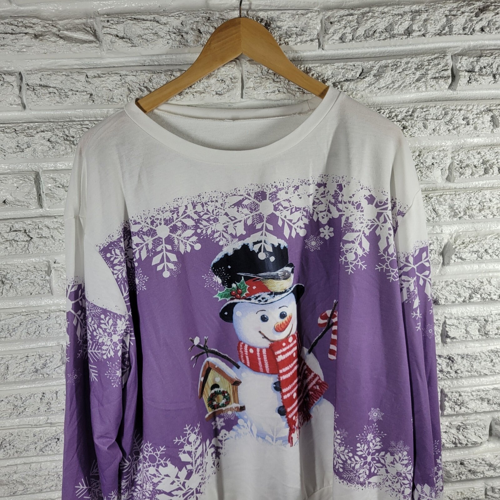 Christmas Womens Top 4XL Plus Tee Long Sleeve Snowman Purple Poly Blend