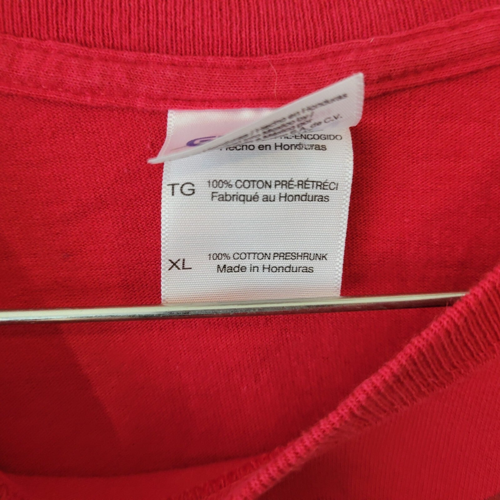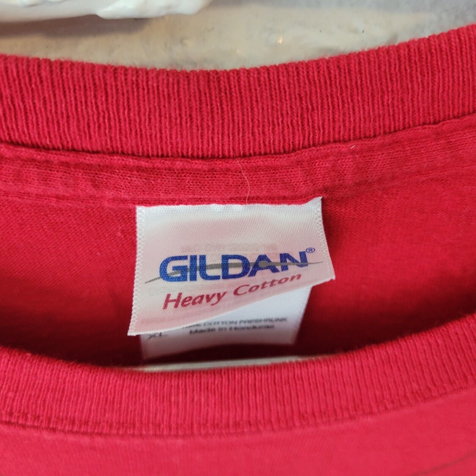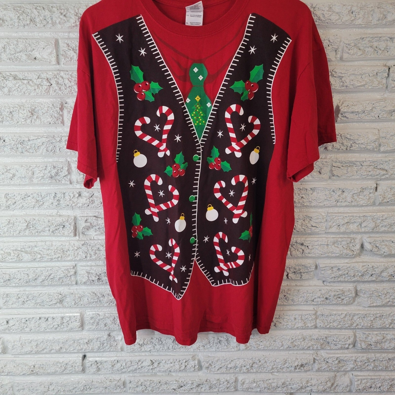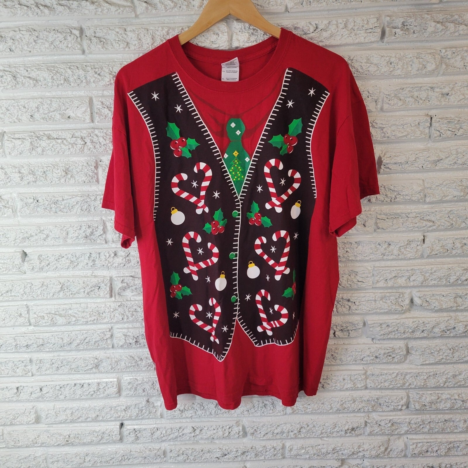 This Christmas Women's XL Tee is a festive and comfortable addition to your holiday wardrobe. Made from 100% cotton jersey fabric, this red candy cane top features a crew neck and pullover closure, perfect for casual or travel occasions. The casual sleeve type and regular fit ensure a cozy feel, while the Christmas theme adds a touch of holiday cheer. Washable and suitable for all seasons, this basic style T-shirt from the Gildan brand is a versatile and stylish choice for the festive season.